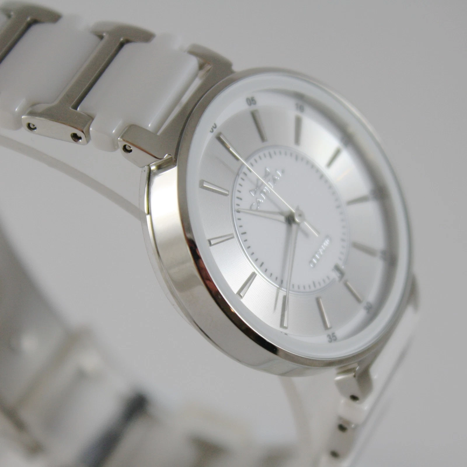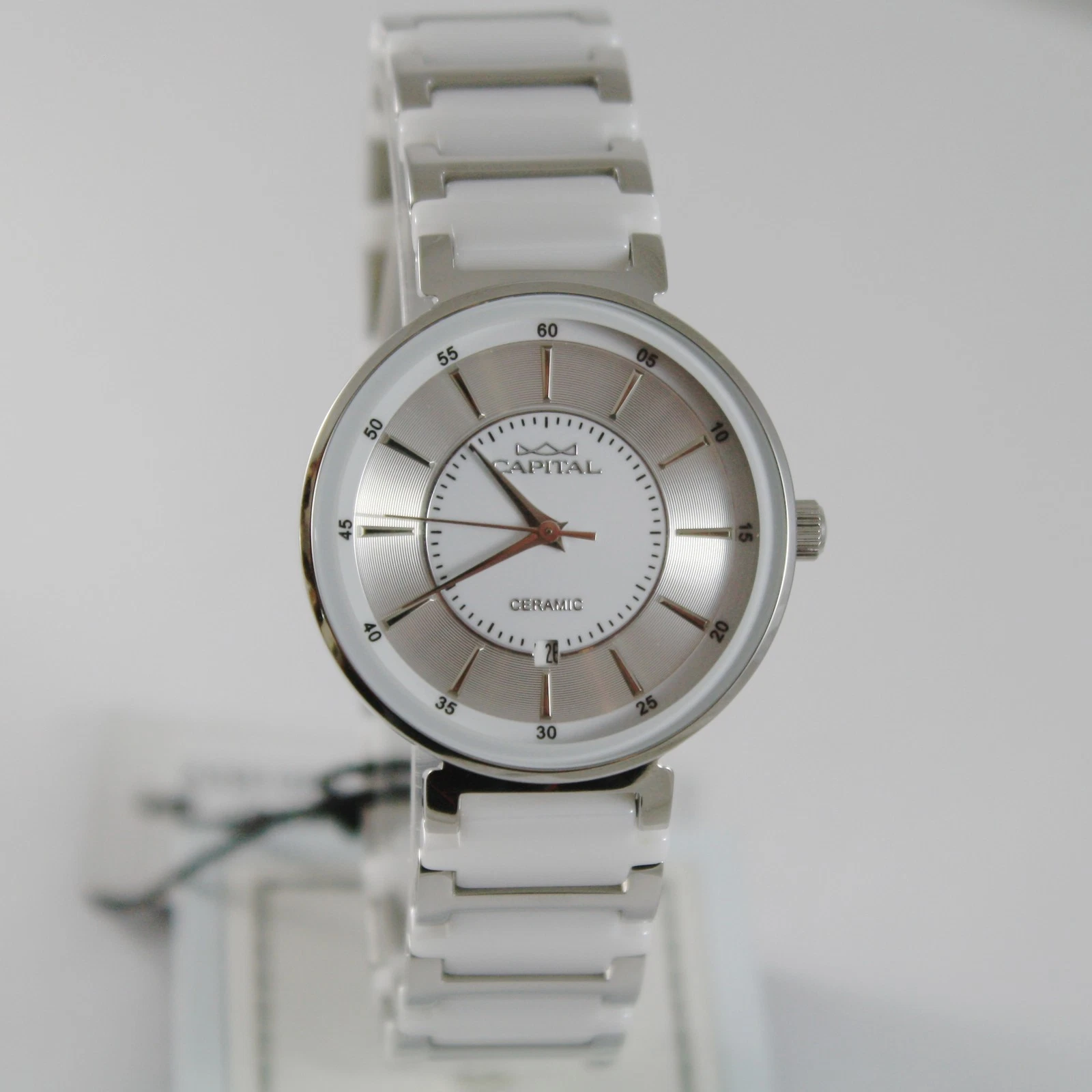 CAPITAL WATCH QUARTZ MOVEMENT 32 MM CASE WITH DATE, VINTAGE, WHITE CERAMIC