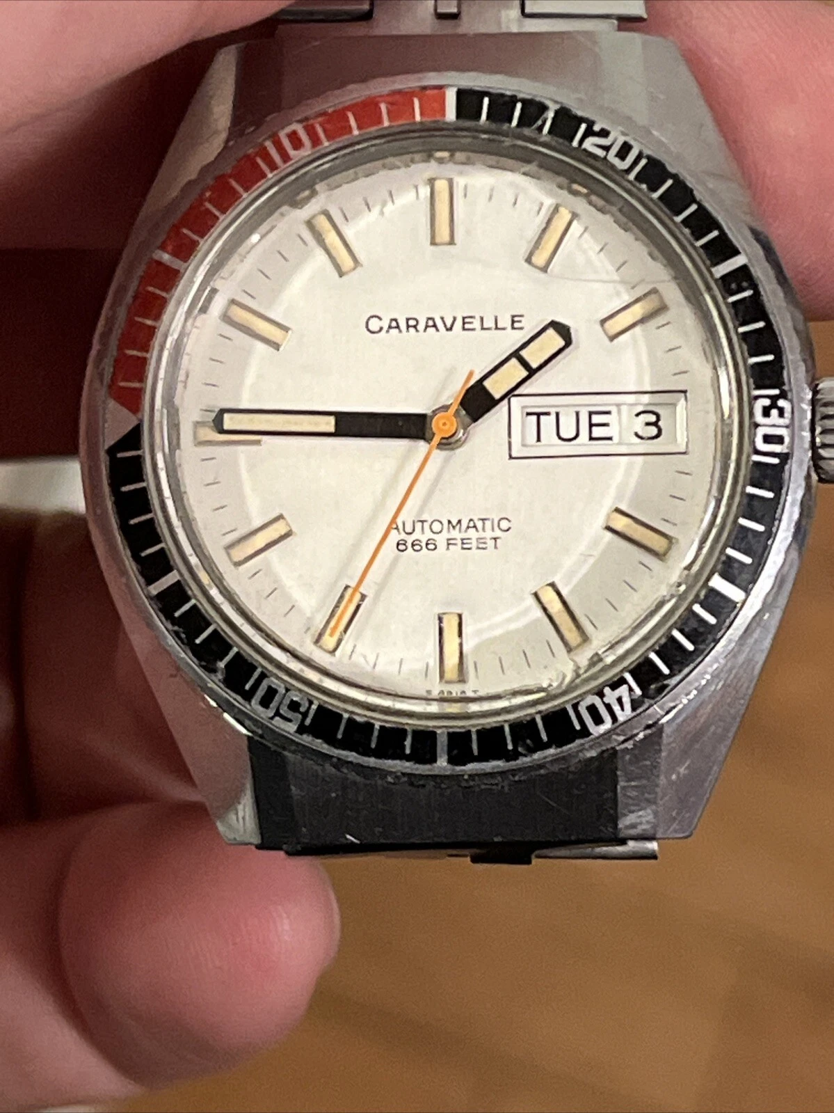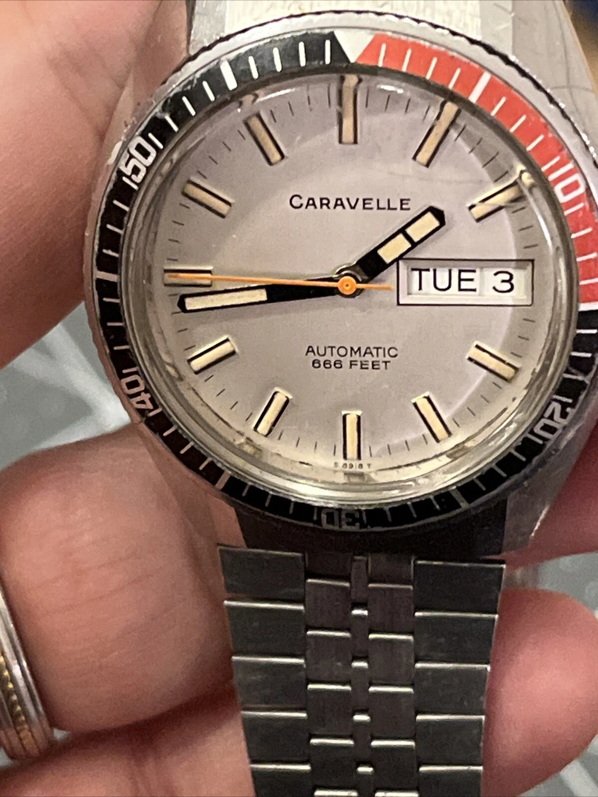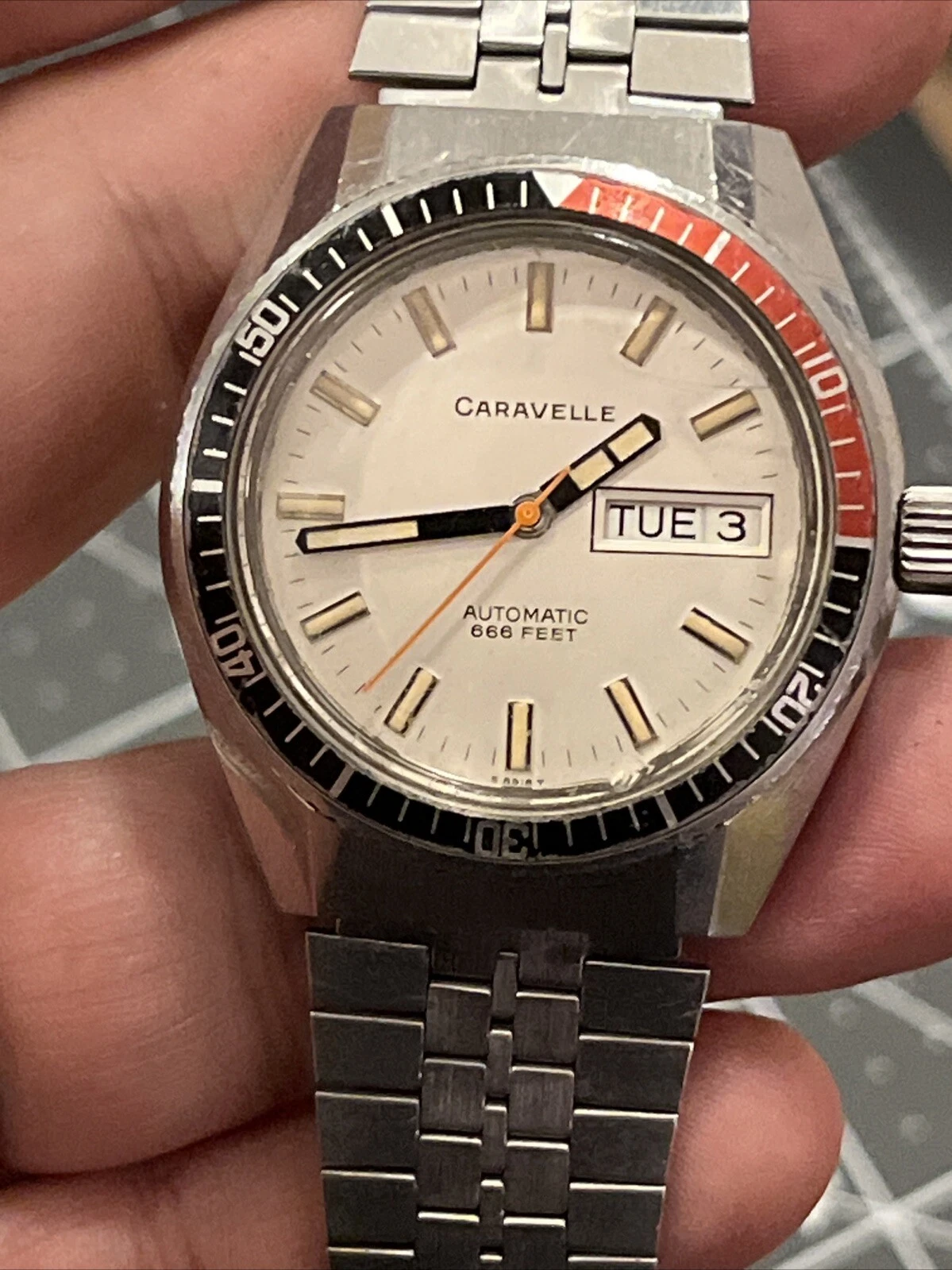Vintage Caravelle Bulova Eta Automatic 666 Feet Devil Diver Running Mens Watch