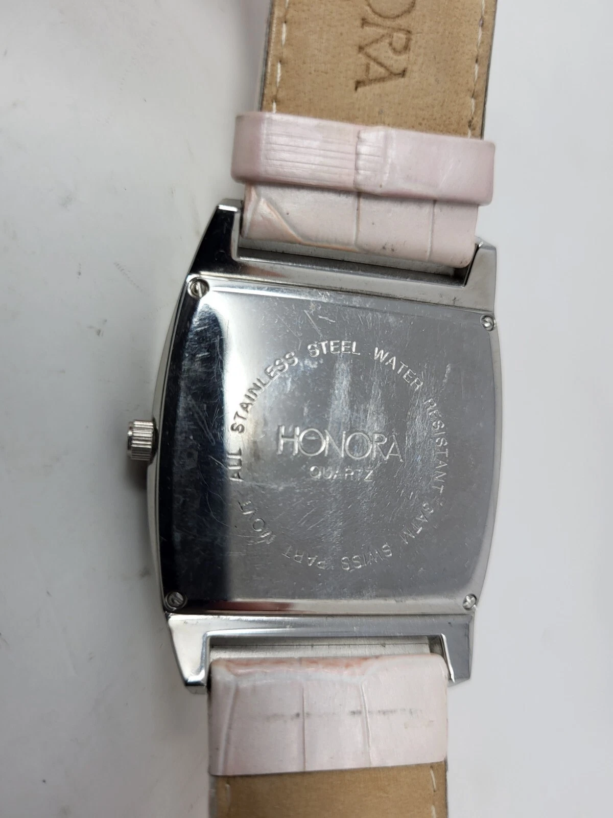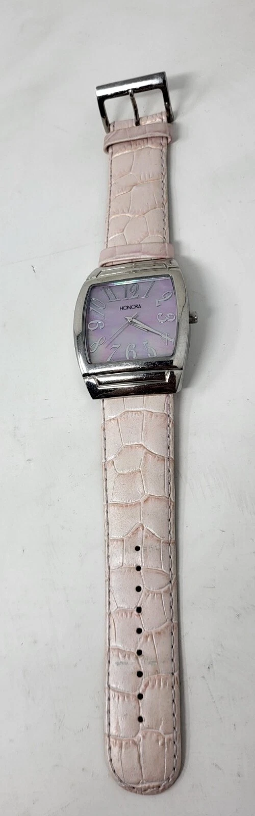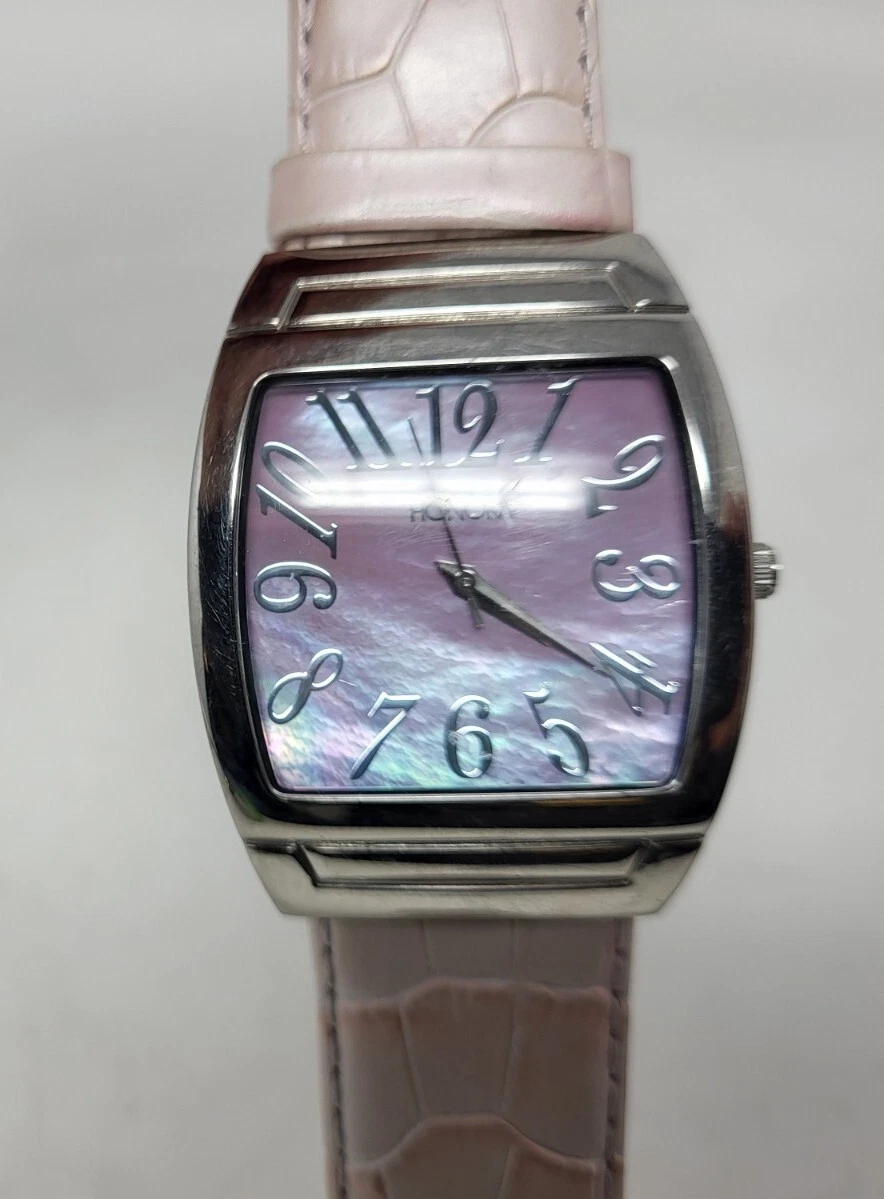 Honora Pink Face Mother of Pearl Watch Silver Tone Pink Leather Band