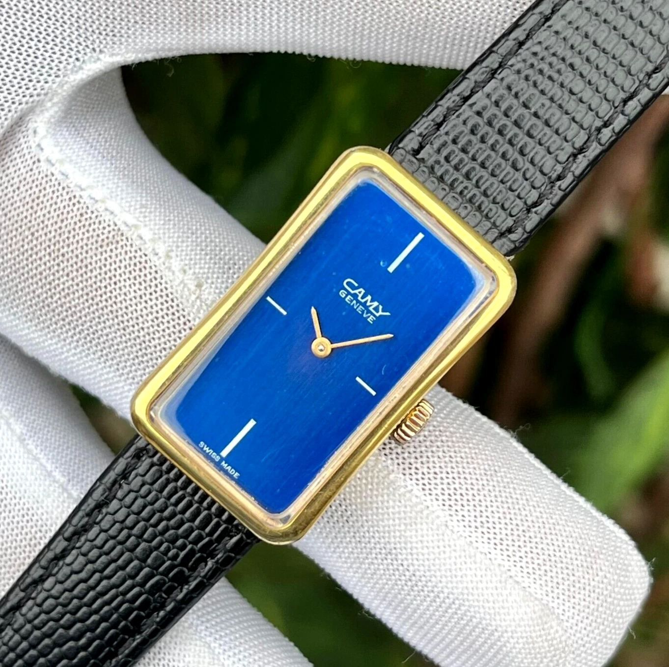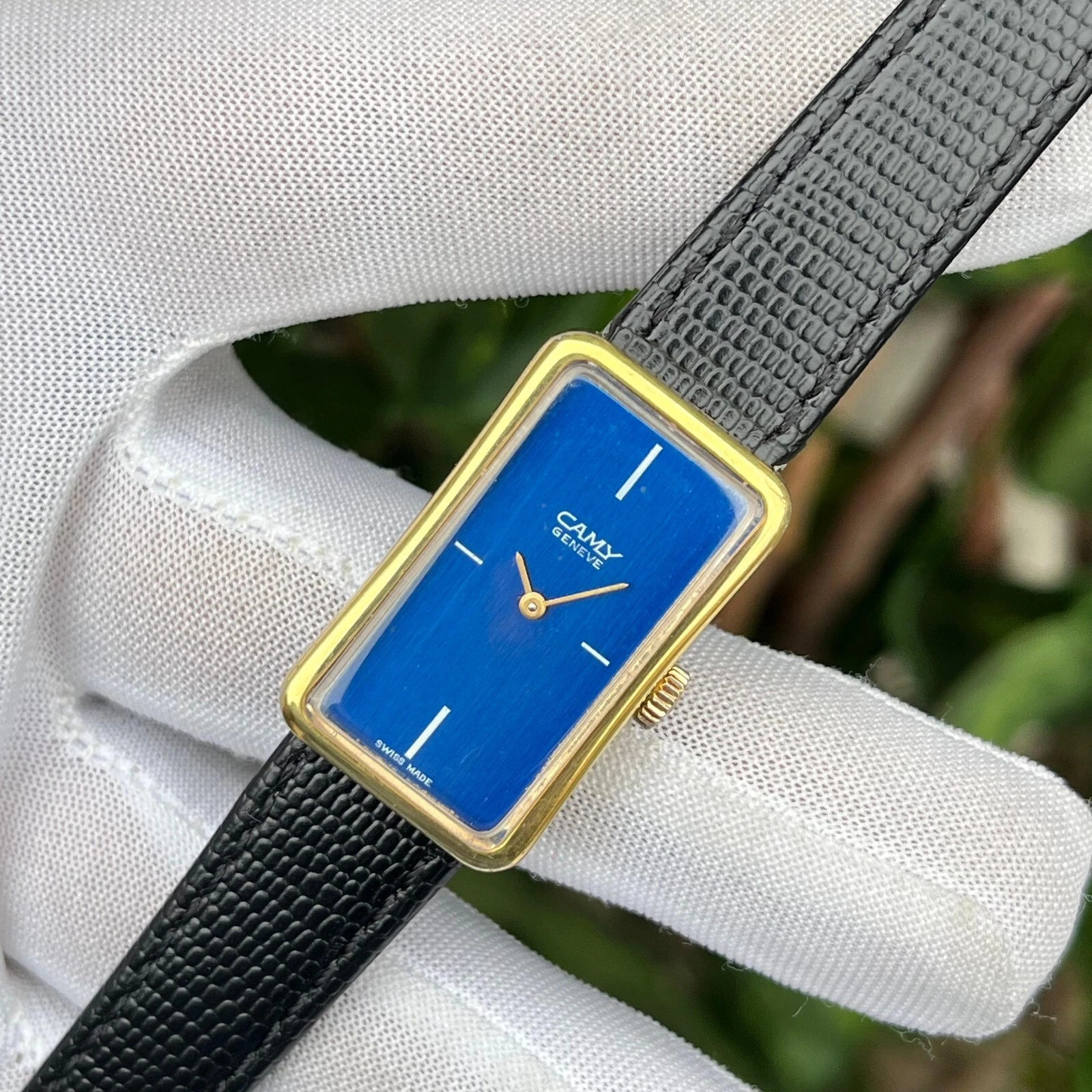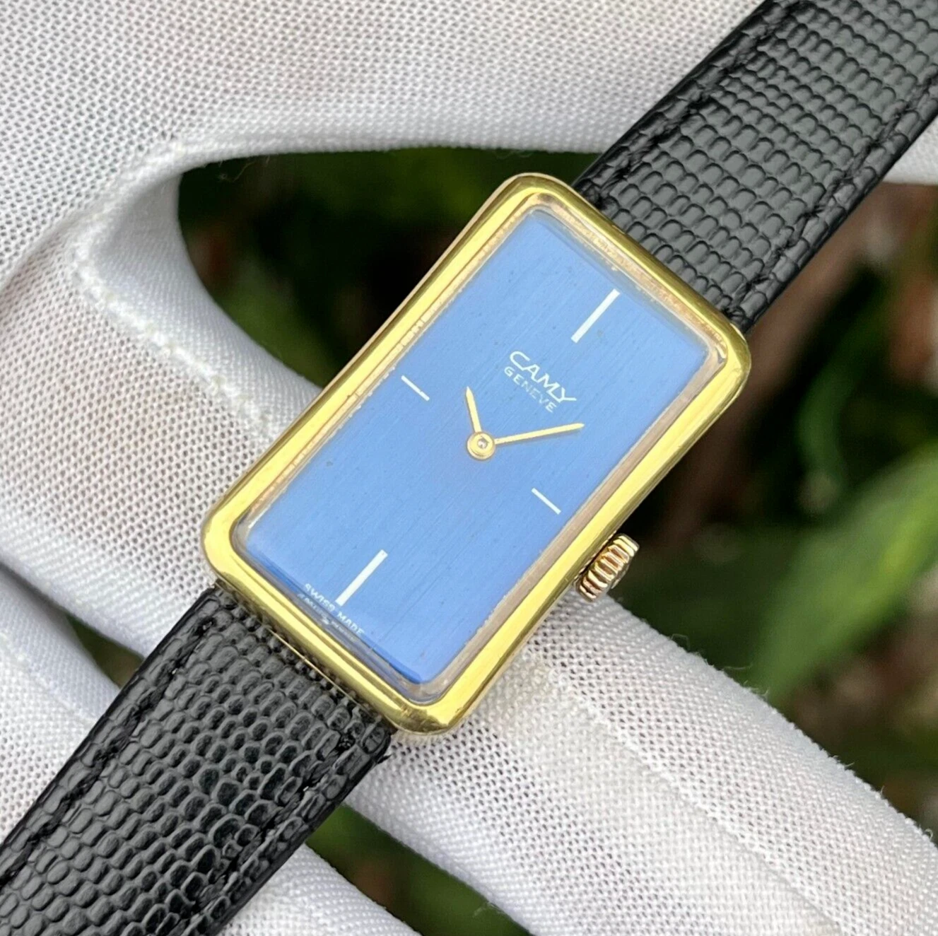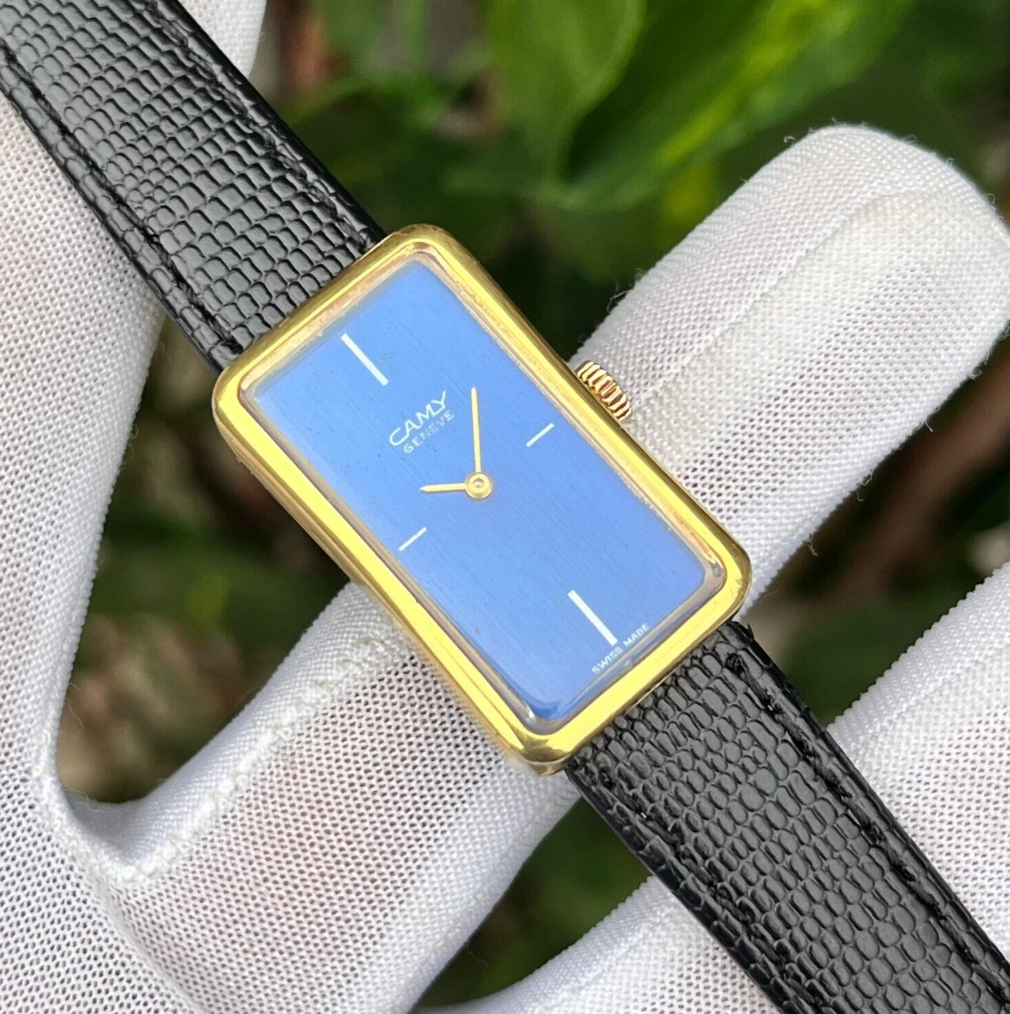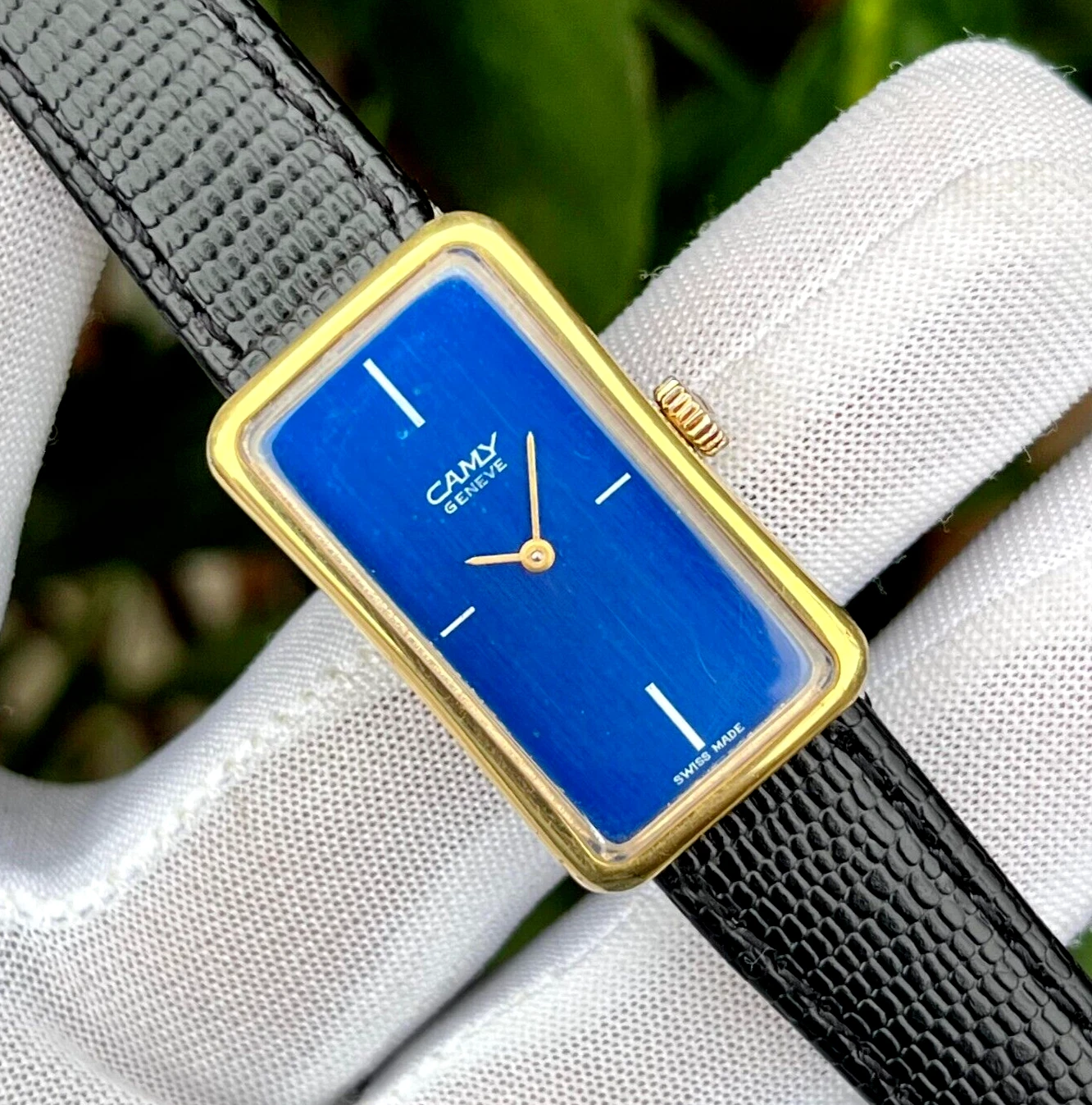 Rare!!! Vintage Camy Geneve Blue Rectangle Manual Swiss Unisex Quartz Watch 1157