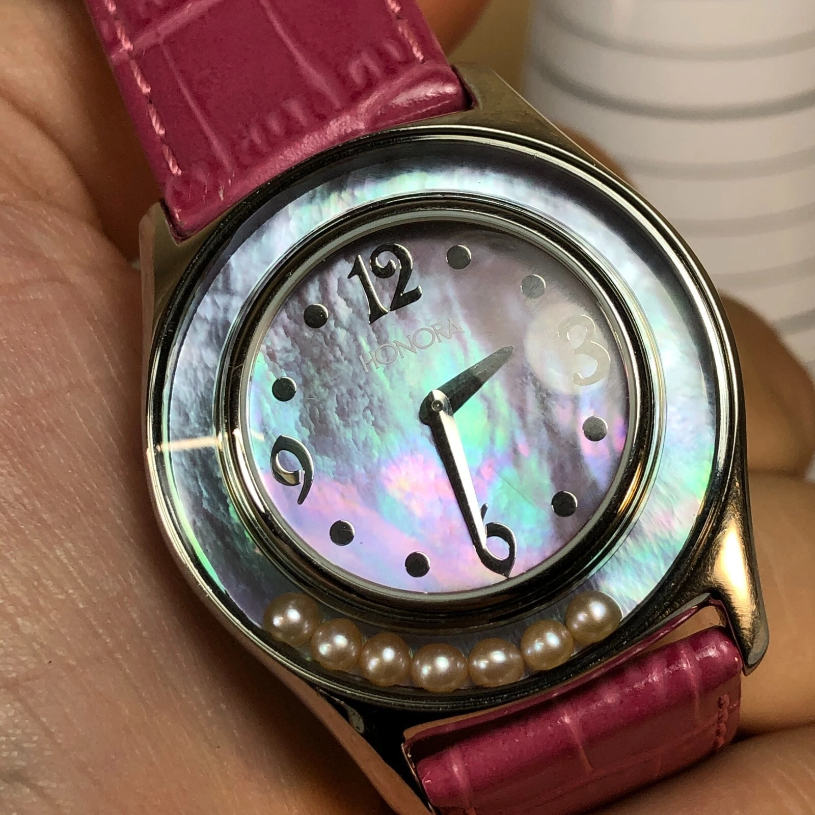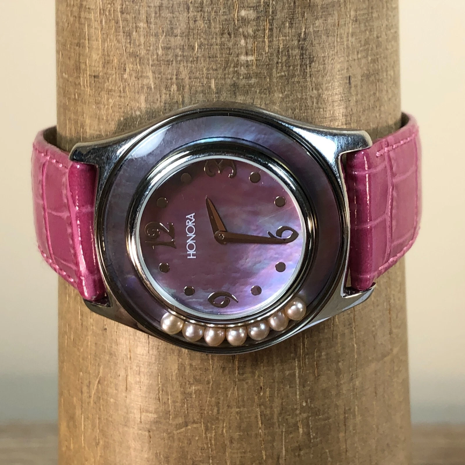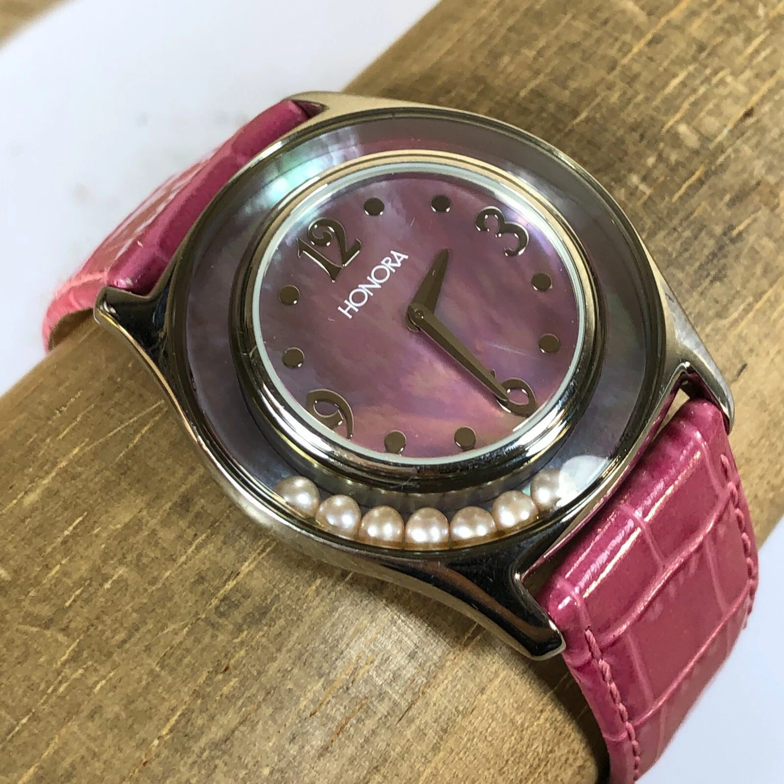 Honora Women Mother of Pearl Dial Floating Pearl Leather 36mm Quartz Watch7 1/2"