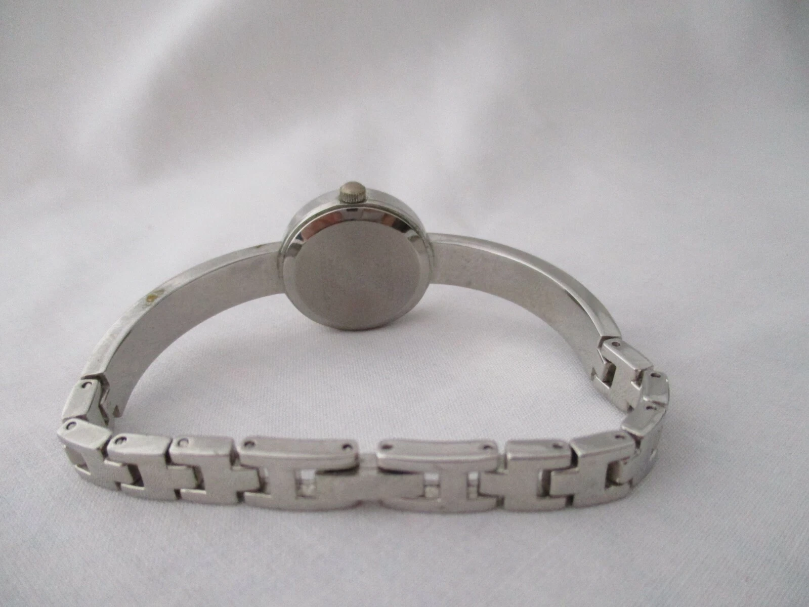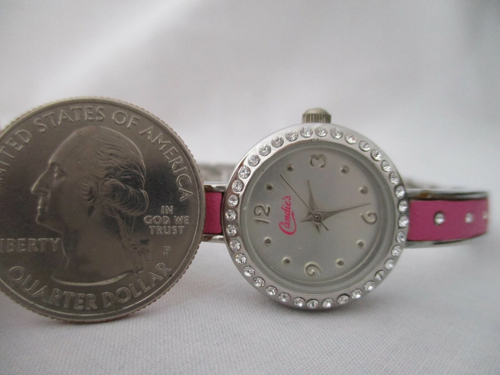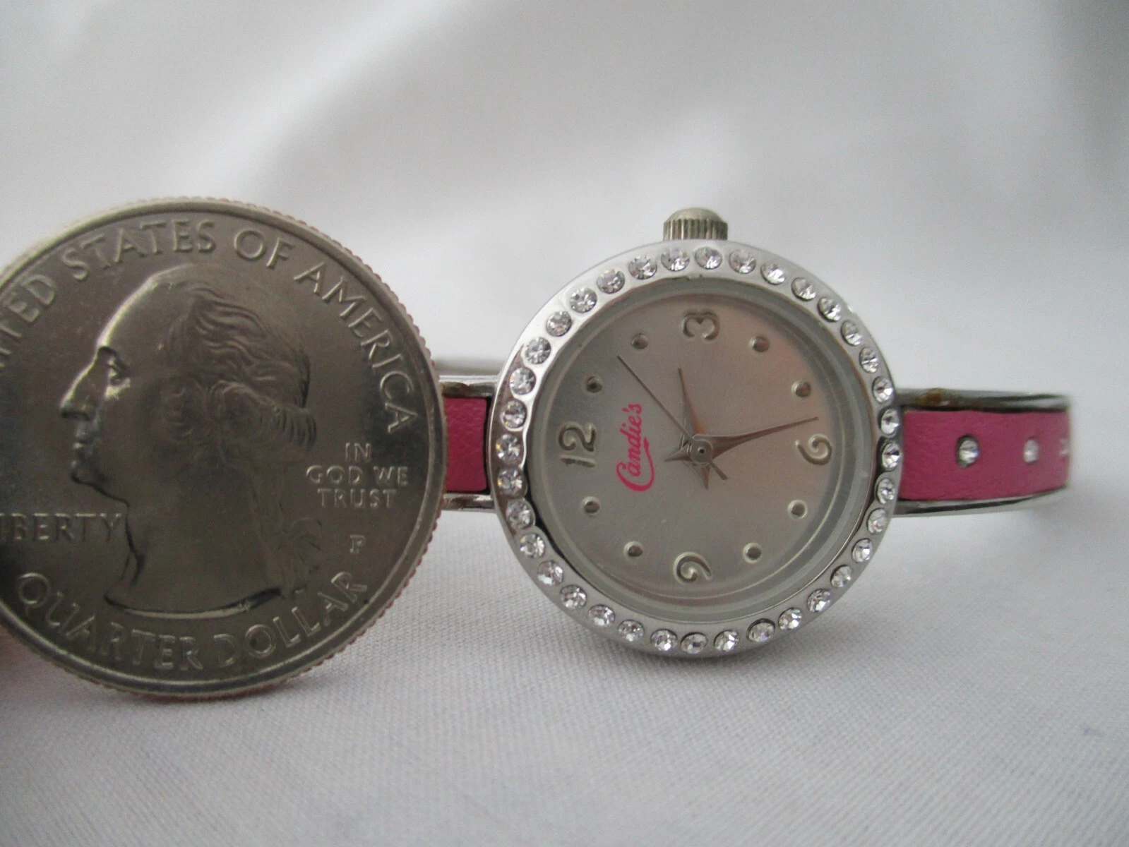 Candies Wristwatch Silver Tone & Pink Band Rhinestones Round Face