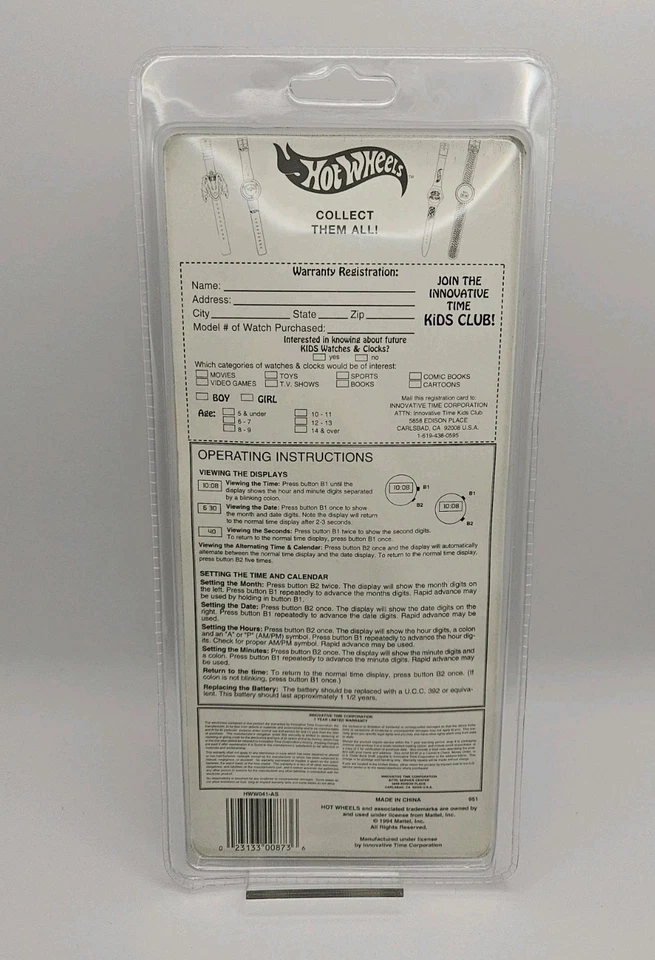 Hot Wheels: Race Hard Finish 1st - Bad to the Bone Watch - 1994 - BNIP