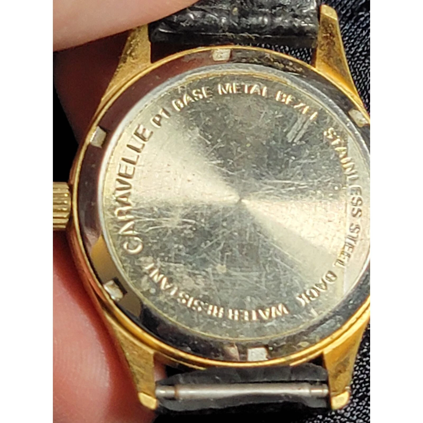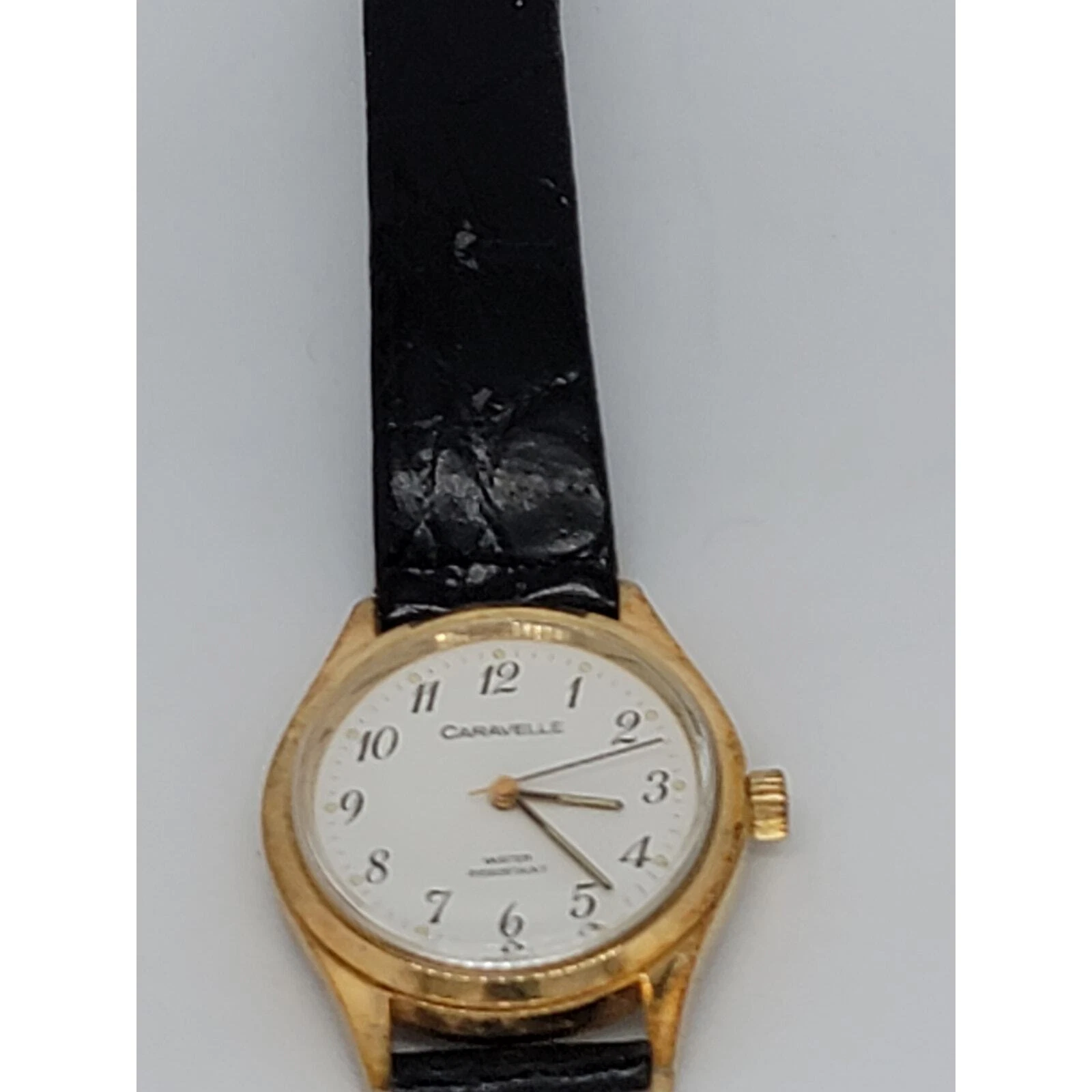 Classic Caravelle Gold-Tone Vintage Watch – Black Leather Strap, Water Resistant