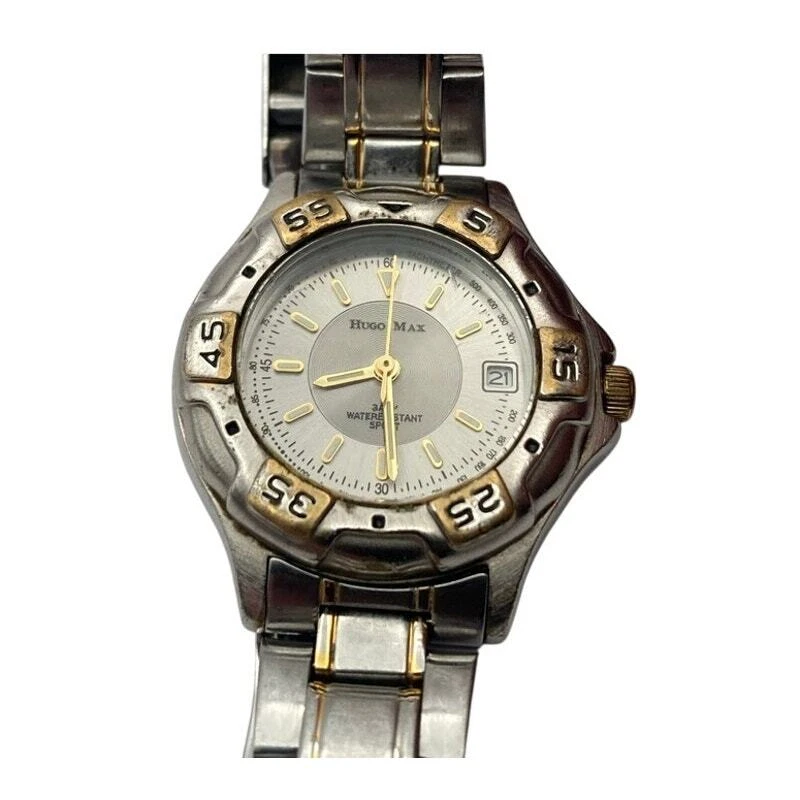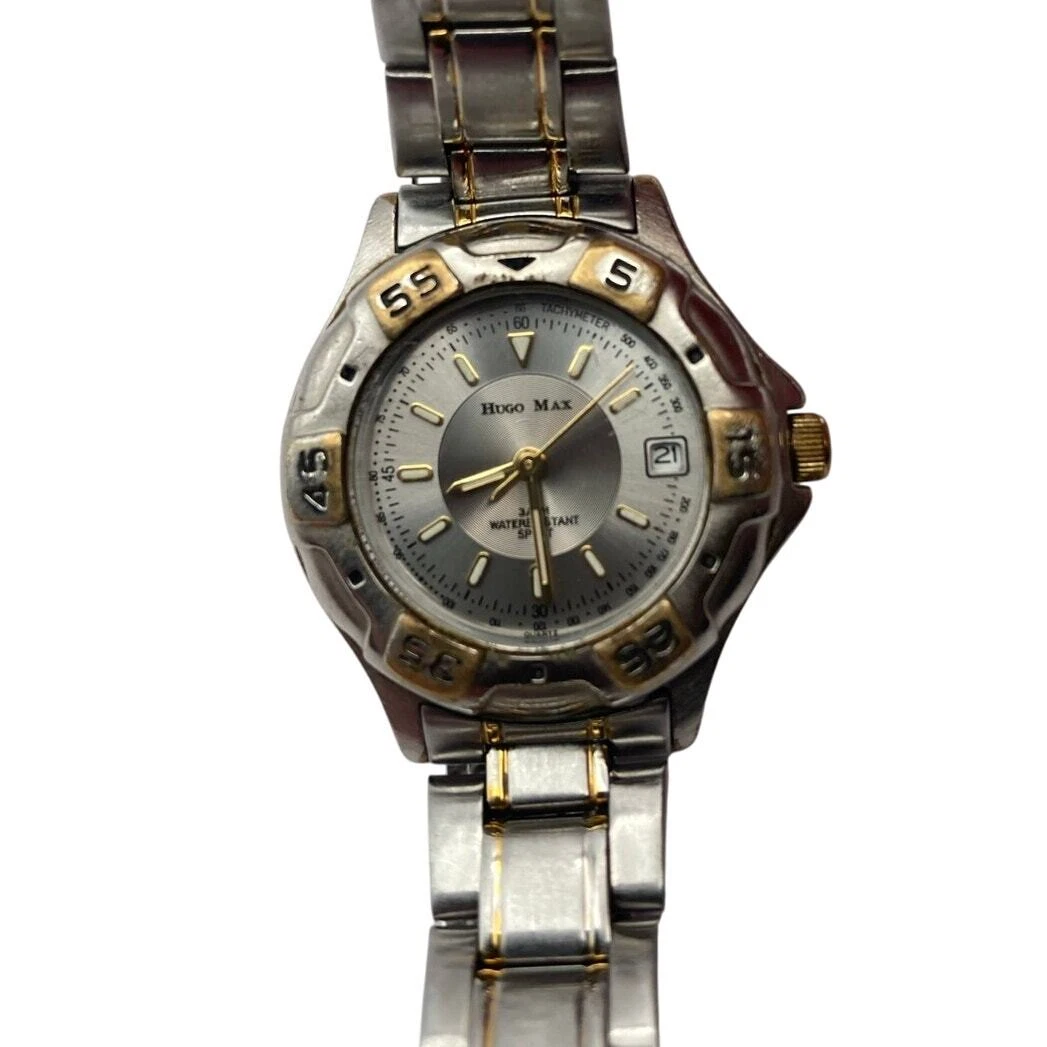 Vintage Hugo Max Sport Watch 18kt Gold Plated Tachymeter 3ATM - New Battery