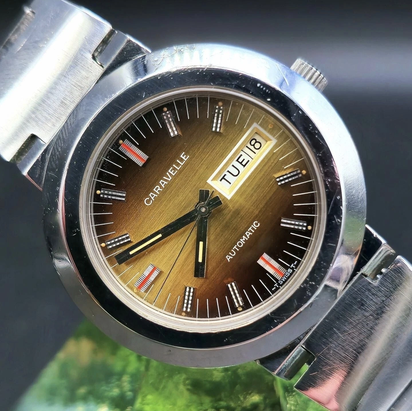 Vintage CARAVELLE 1970's Jumbo Automatic Day/Date Men's Watch W/ Superb Dial !!