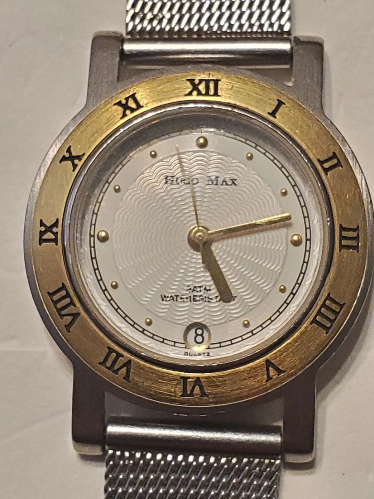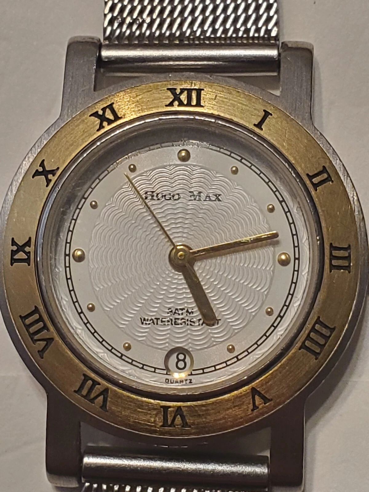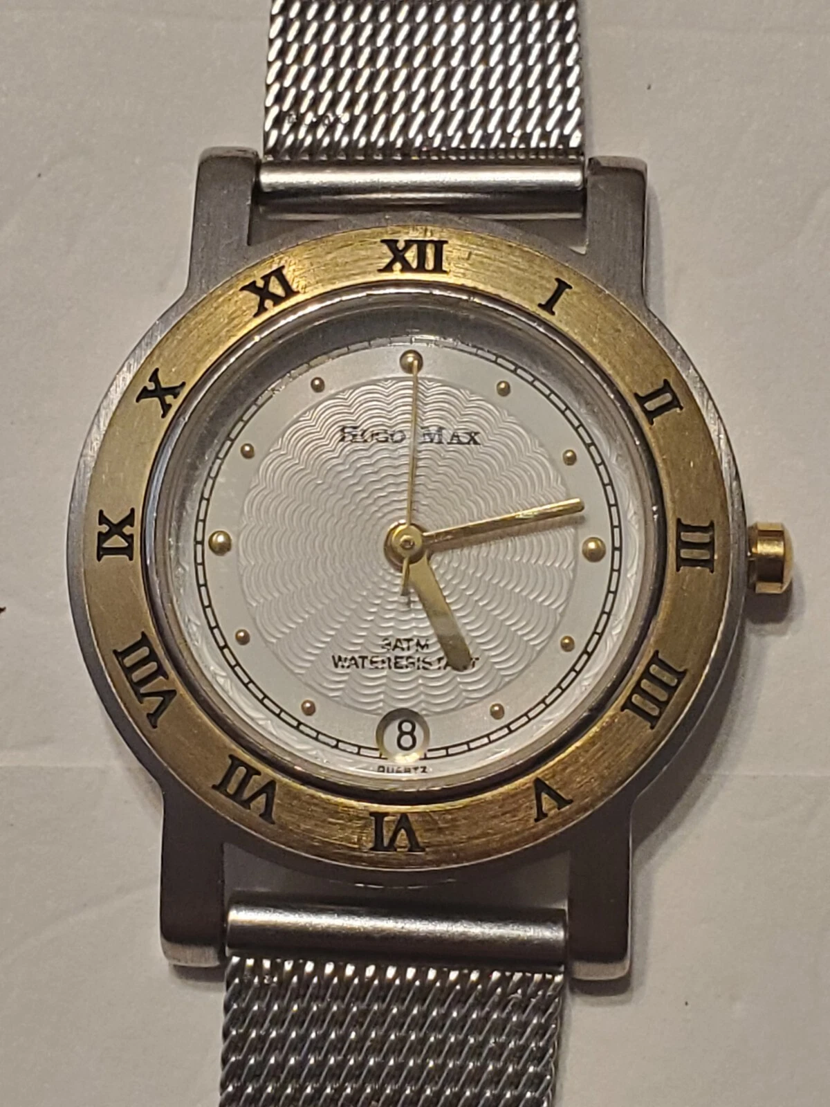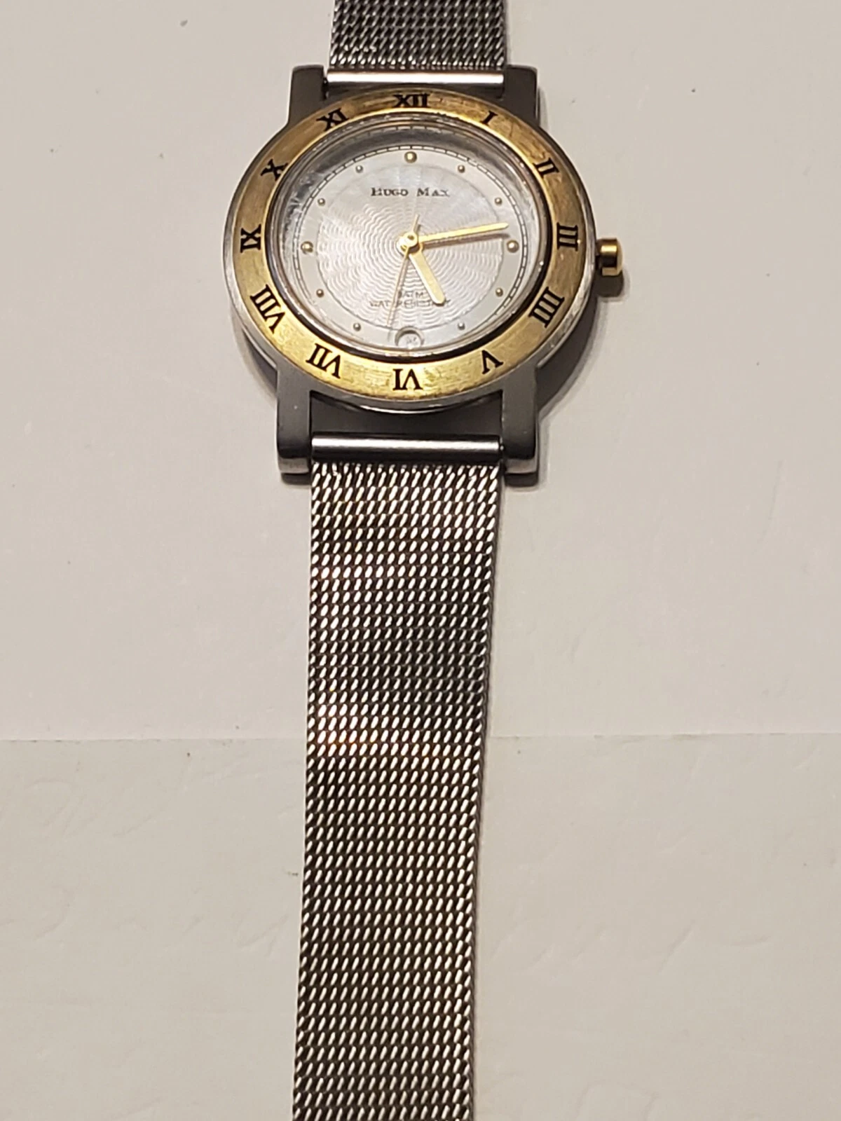 Vintage Authentic Hugo Max Euro Design 18 K GOLD Plated Mens Watch