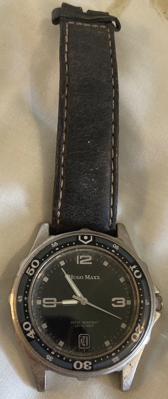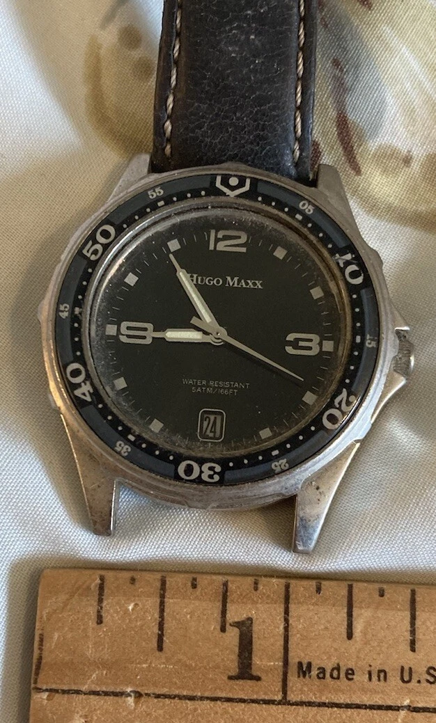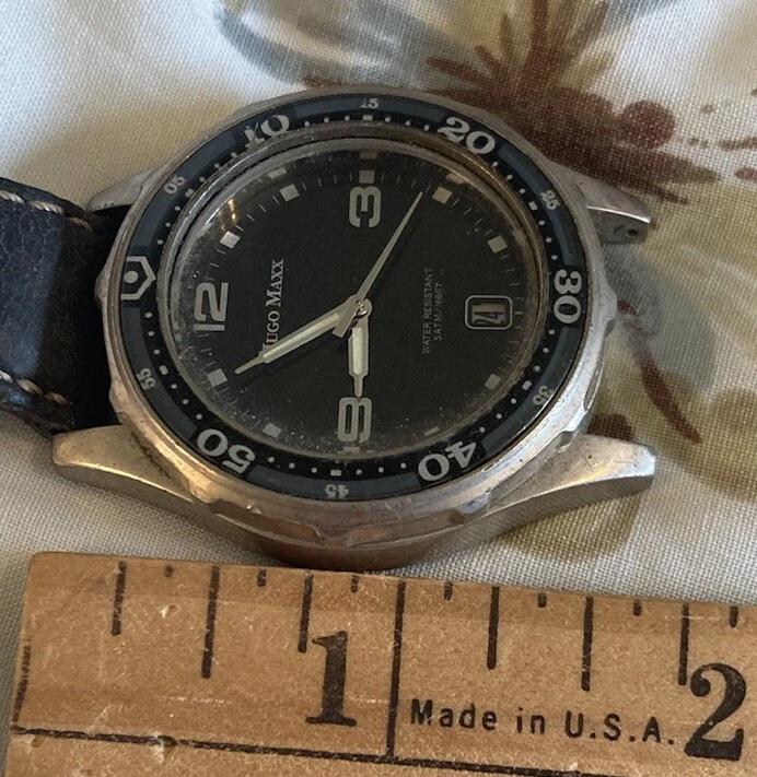 VTG Hugo Maxx Watch Stainless Date PARTS/REPAIR ONLY Japan Movement - AS IS