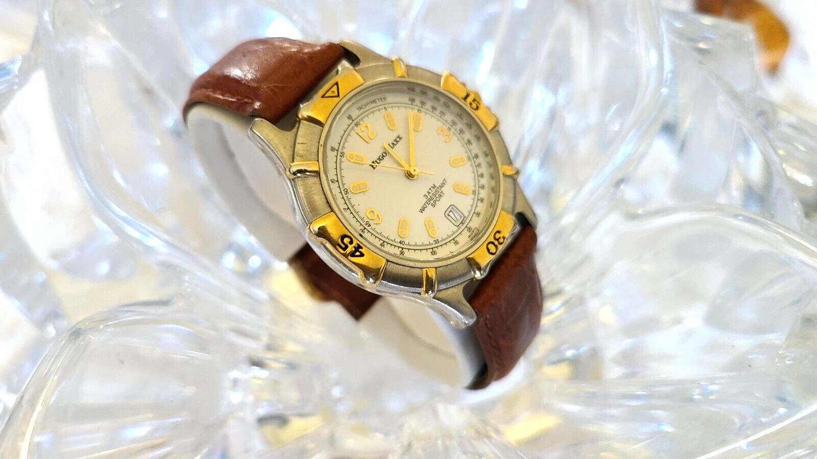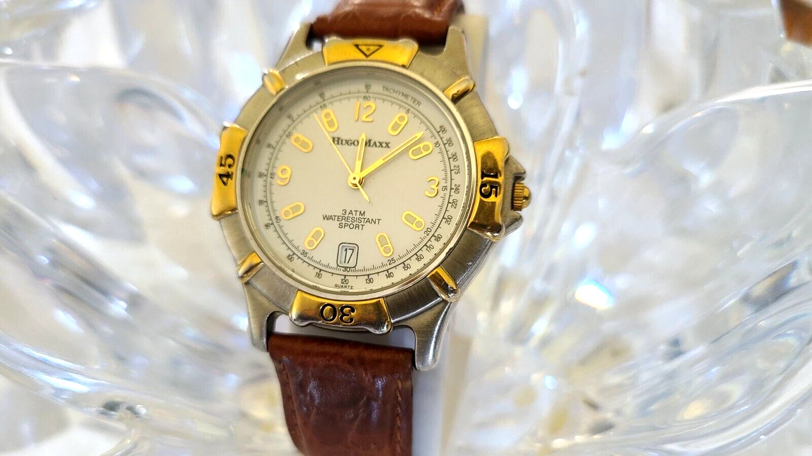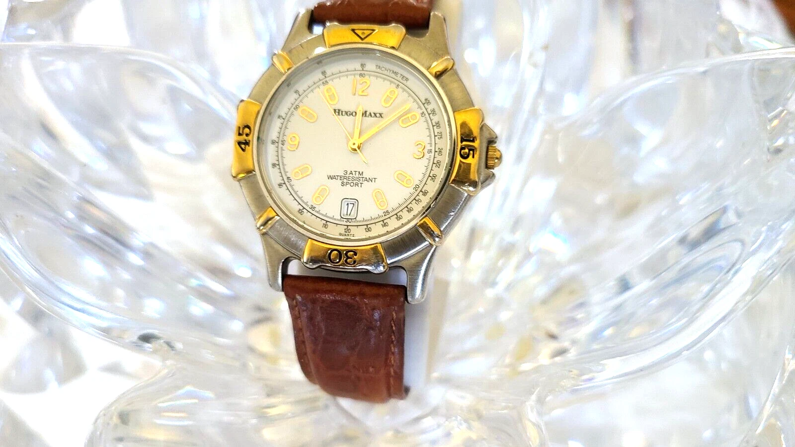 Vintage Hug Maxx 18K GP Men's Leather Band Watch. ( K51)