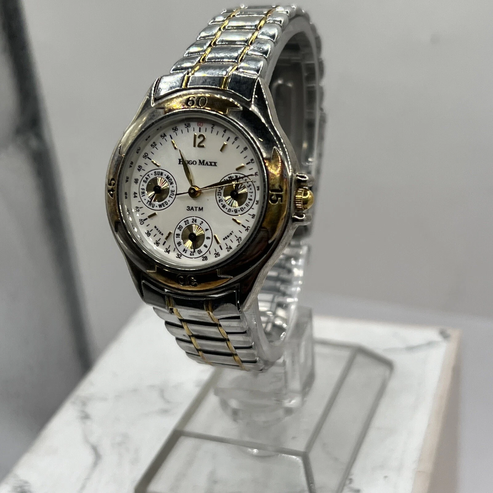 HUGO MAXX 18K GOLD UNISEX Chronograph 3 Dials WATER & SHOCK RESISTANT New Batter