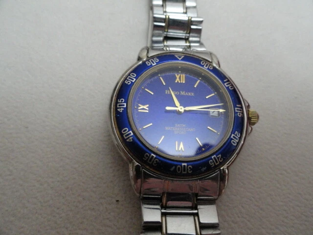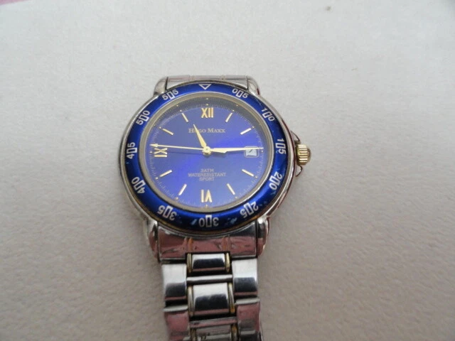 HUGO MAXX MEN'S BLUE FACE WATER & SHOCK W/ DATE 18K GOLD PLATE MAIL TODAY
