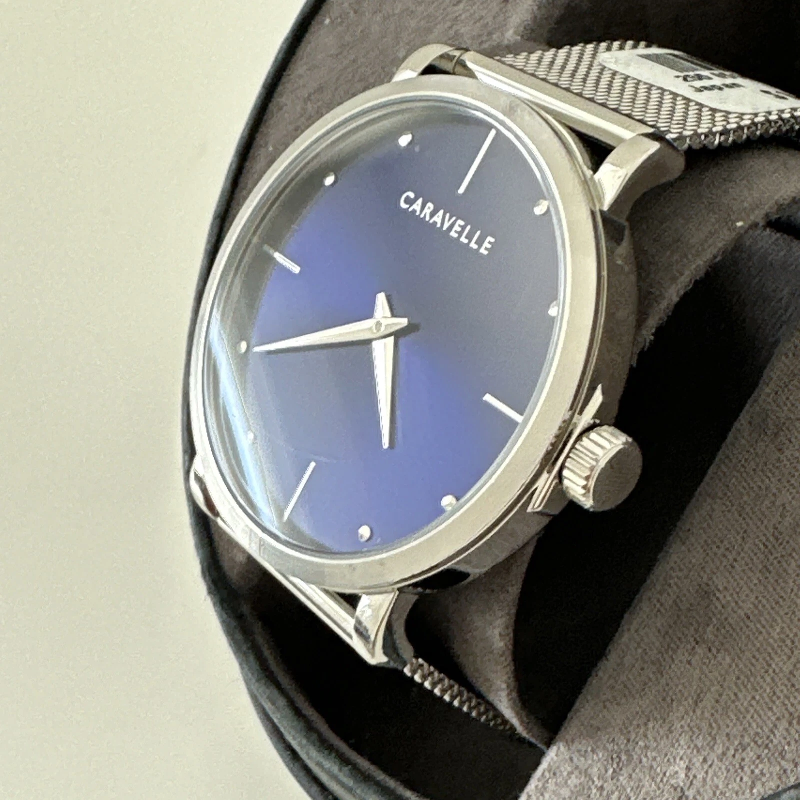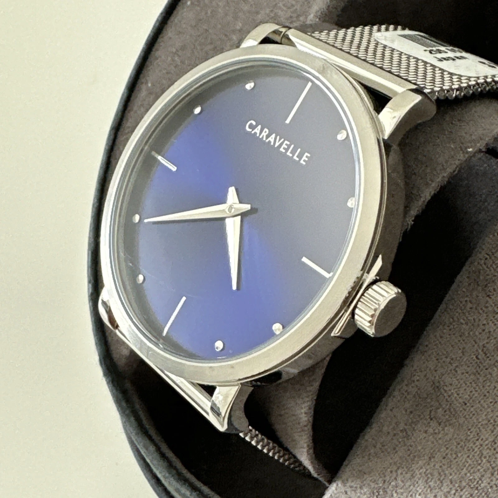 Caravelle Men's Blue Dial Quartz Mesh Bracelet 42mm Watch 43A149