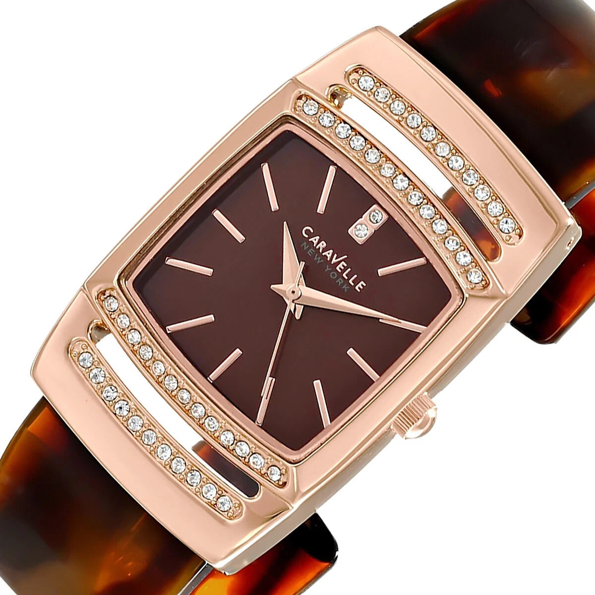 CARAVELLE NY by BULOVA Womens Rose Gold Watch, Crystals, Maroon Dial Bangle Band