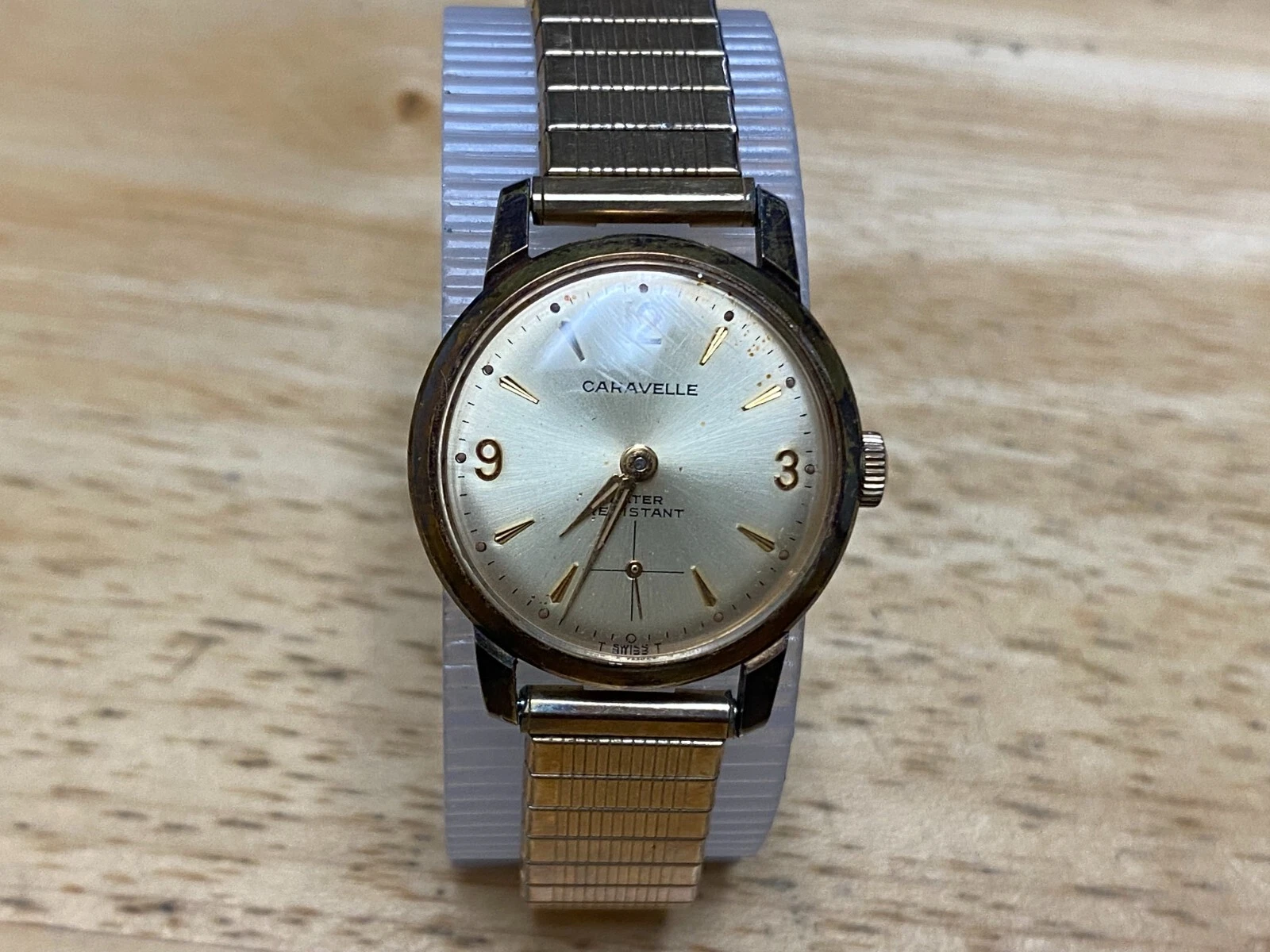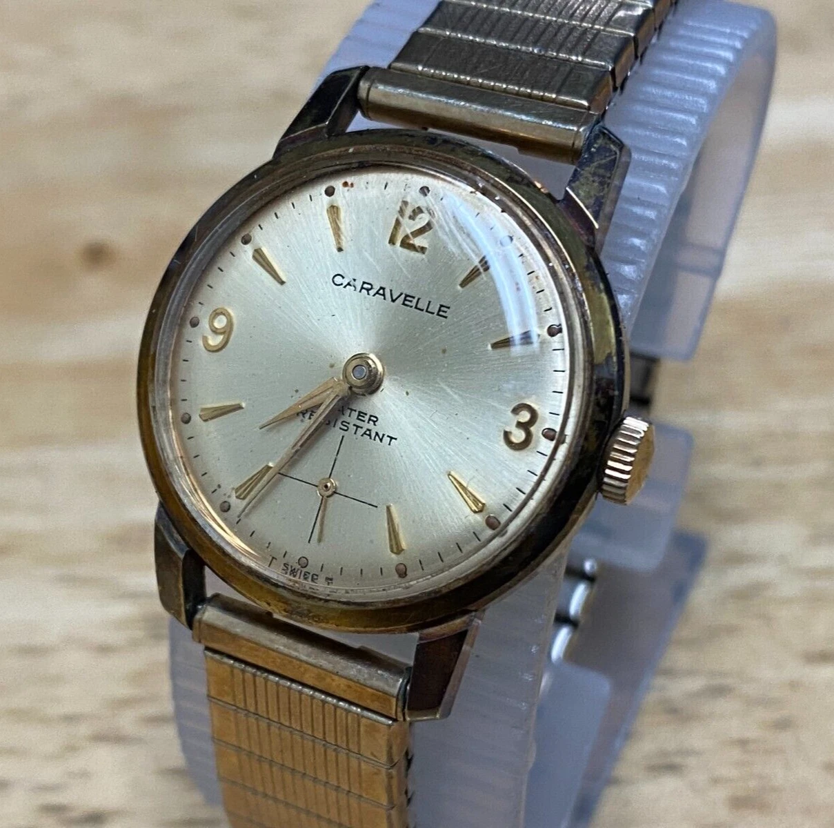 Vintage Caravelle Lady Gold Tone Small Second Stretch Hand-Wind Mechanical Watch