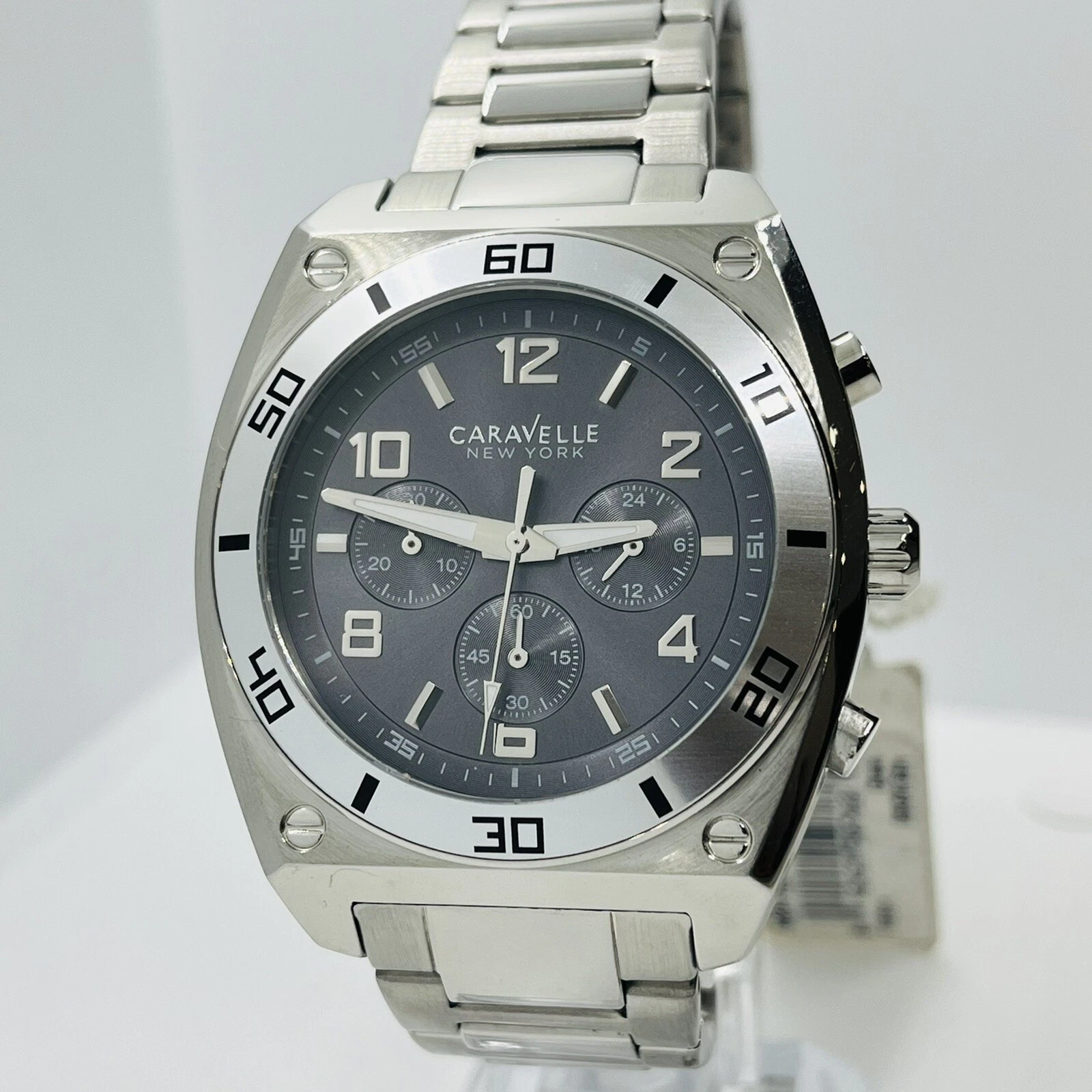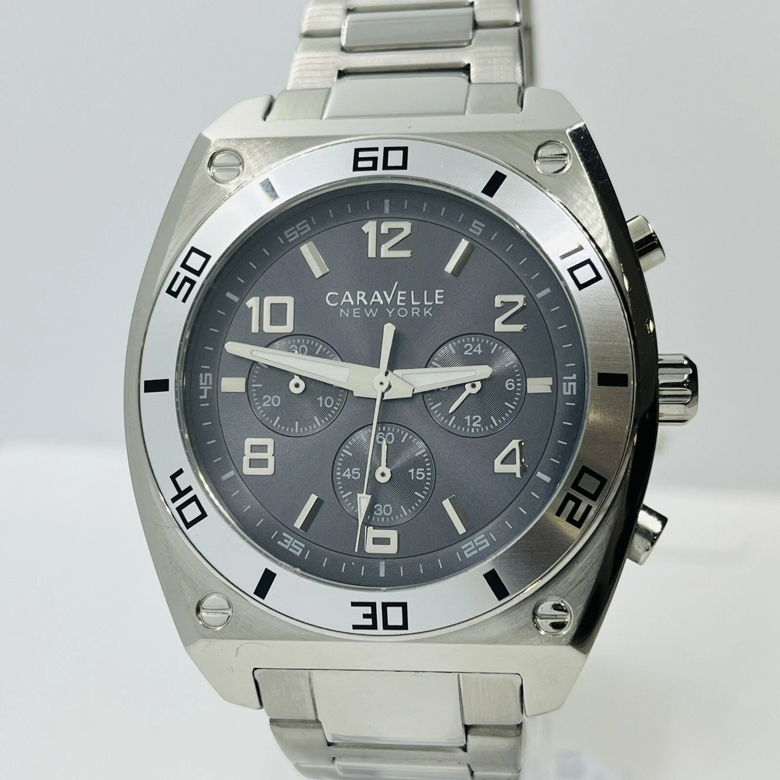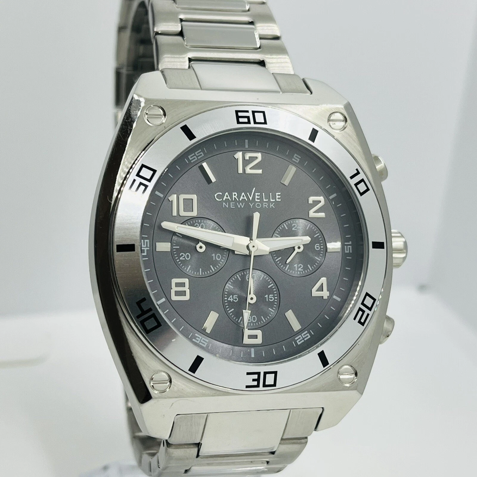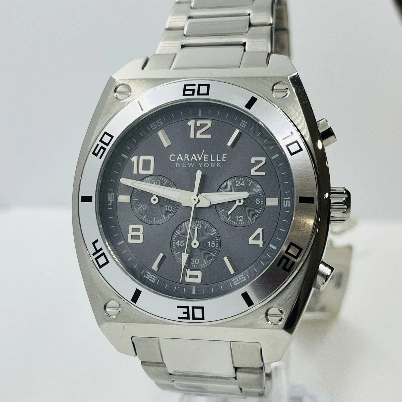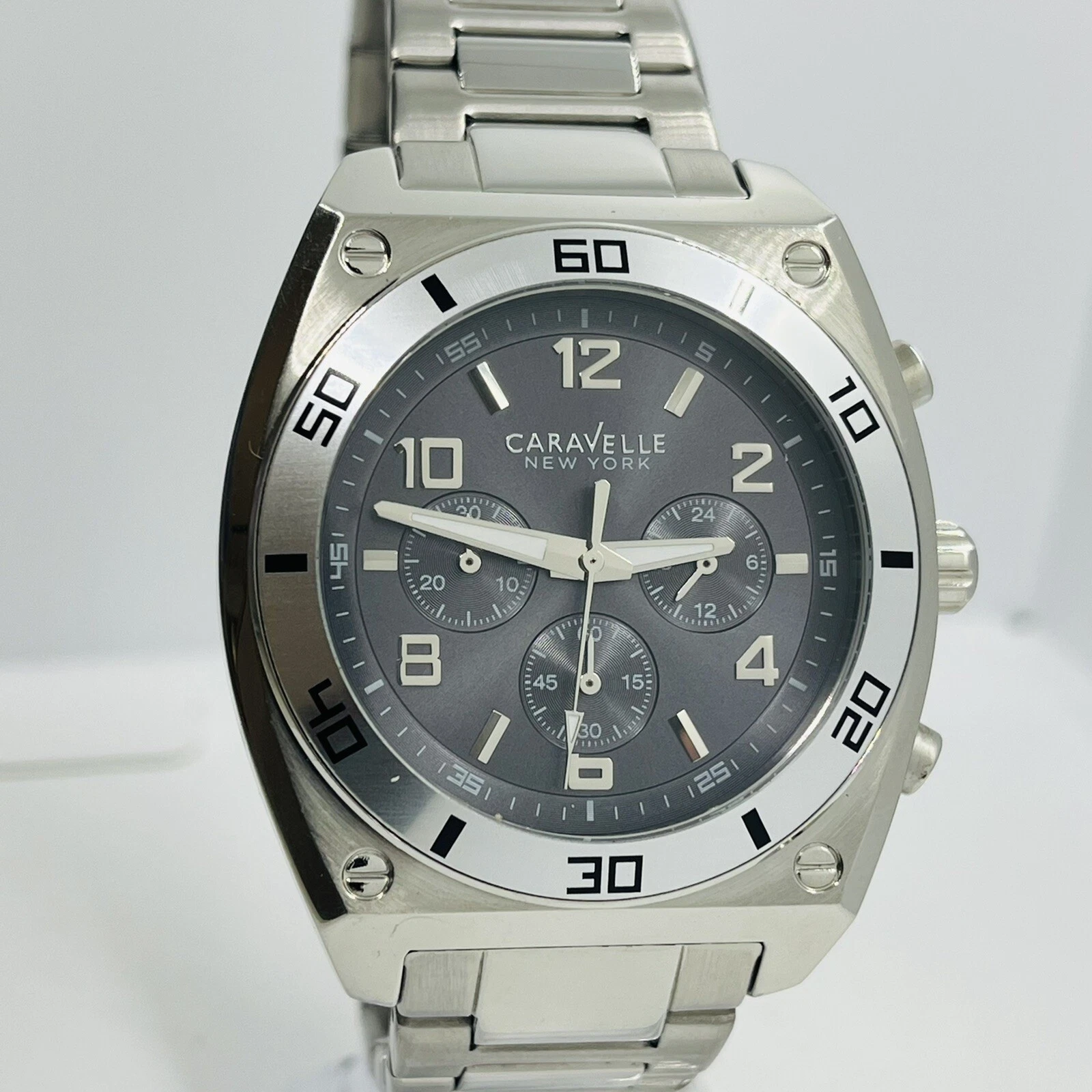 Caravelle by Bulova Men's New York Chronograph St Steel Gray Dial Watch 43A120
