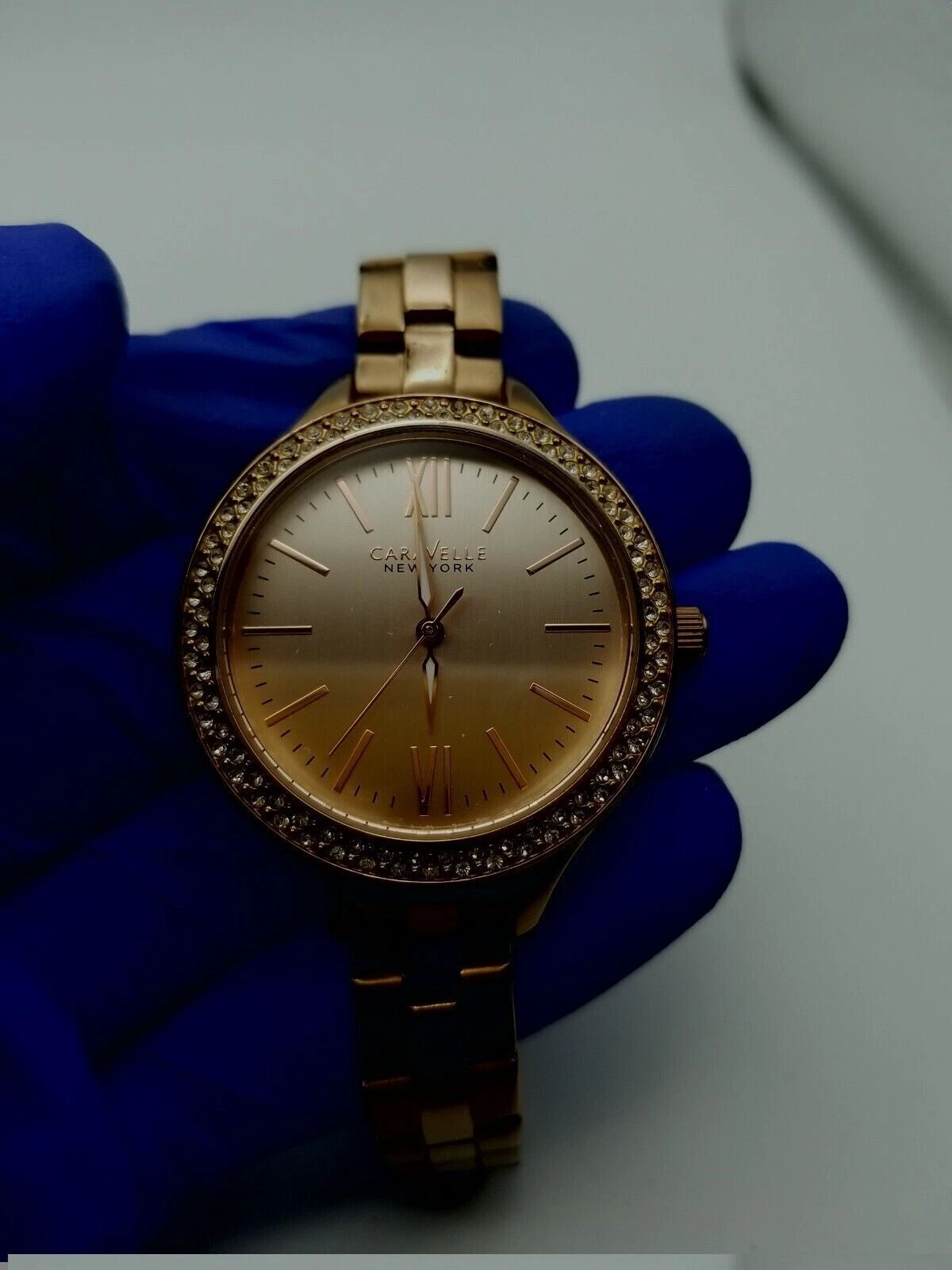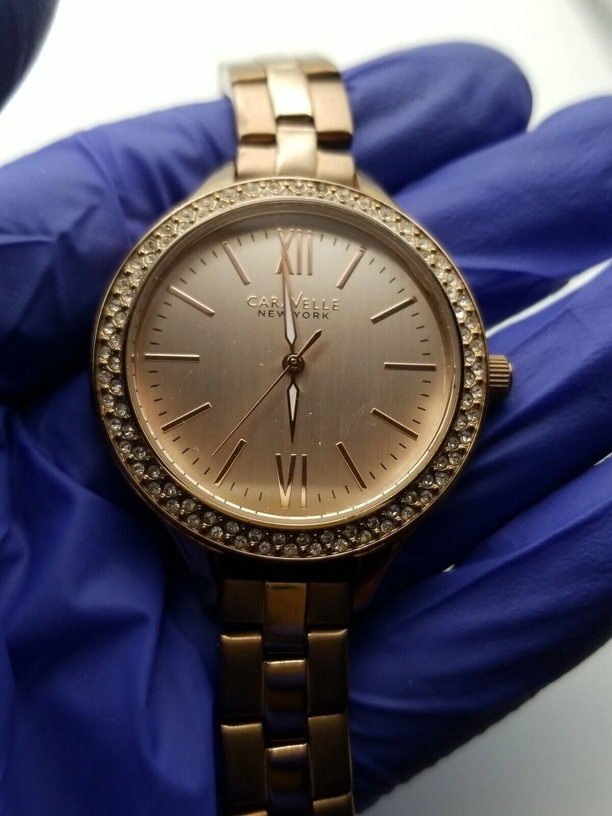 CARAVELLE "Rose Gold" Women's Gemmed 3-ATM Quartz Dress Watch Need Battery