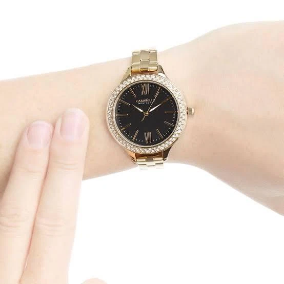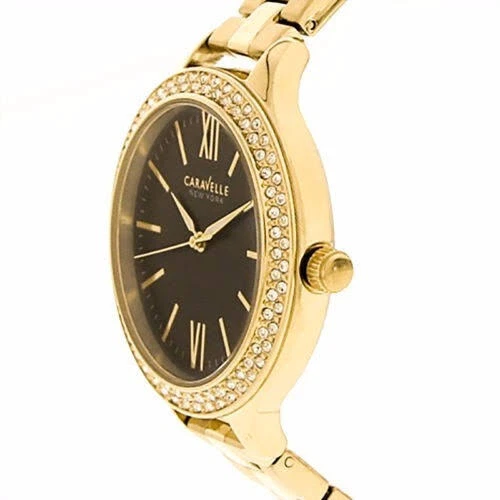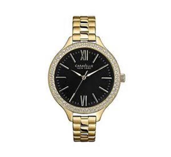 Women's 44L126 Analog Caravelle New York Water Resistant Black Dial Yellow Watch