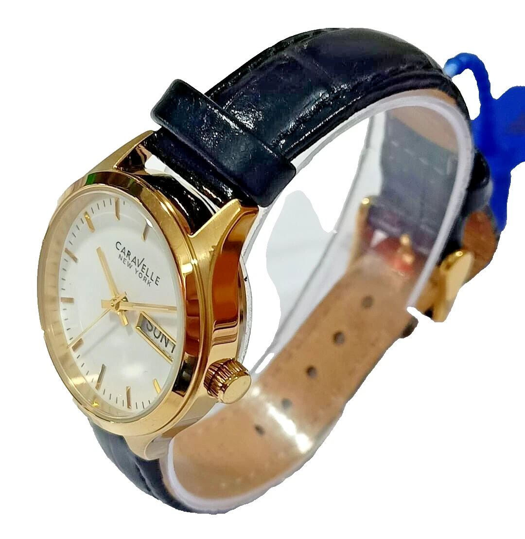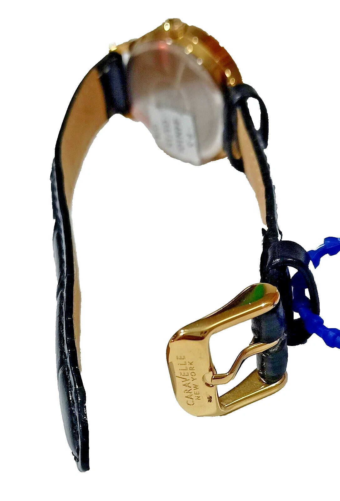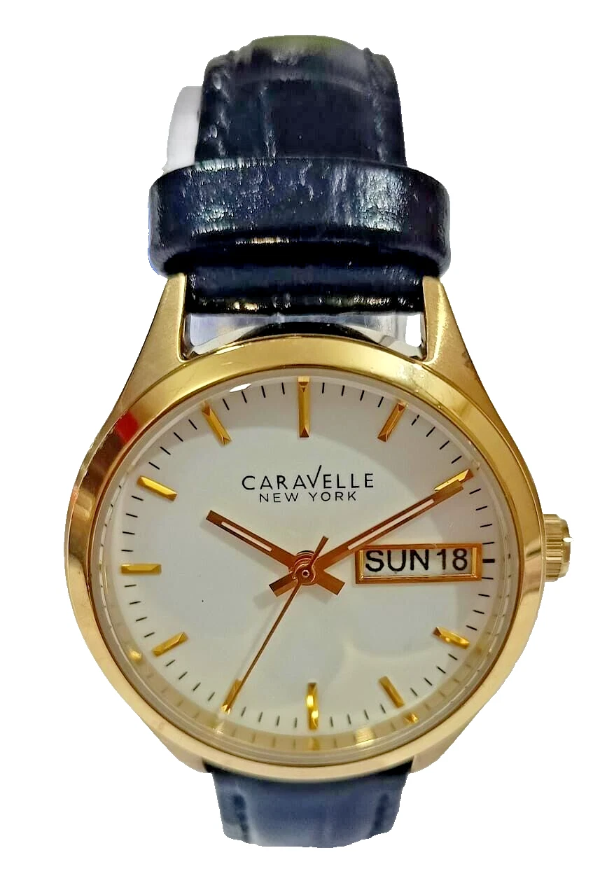 44N106 CARAVELLE NEW YORK MEN'S GOLD LEATHER JAPANESE QUARTZ FASHION WATCH MV-8