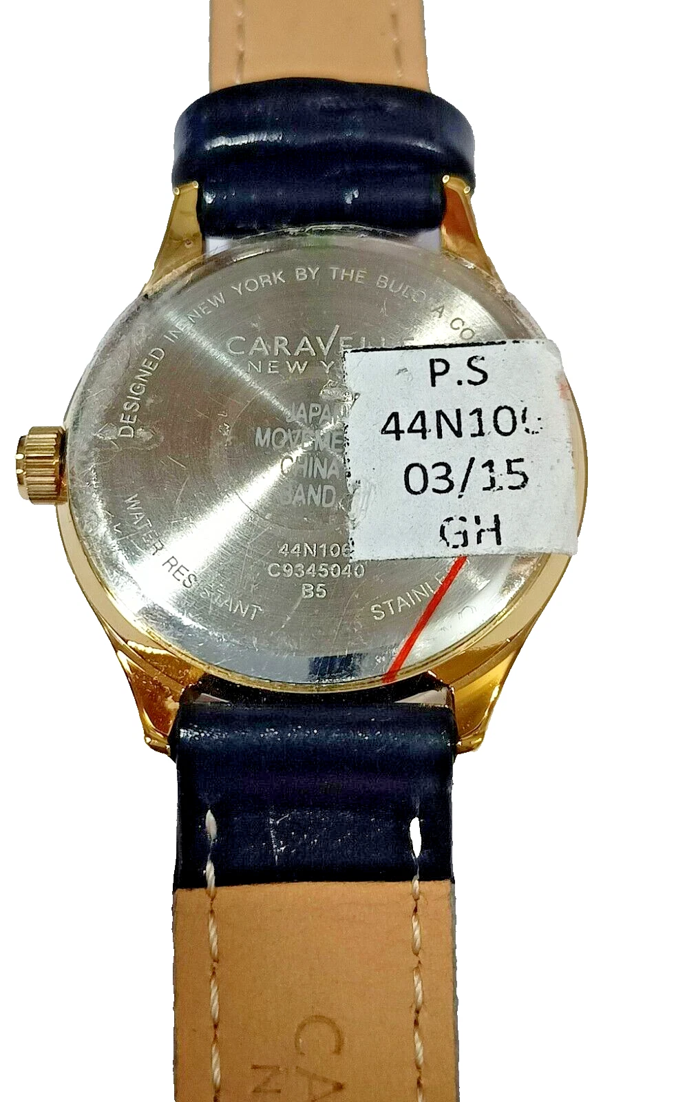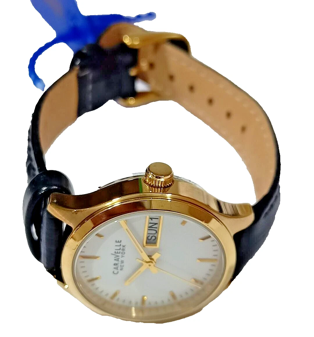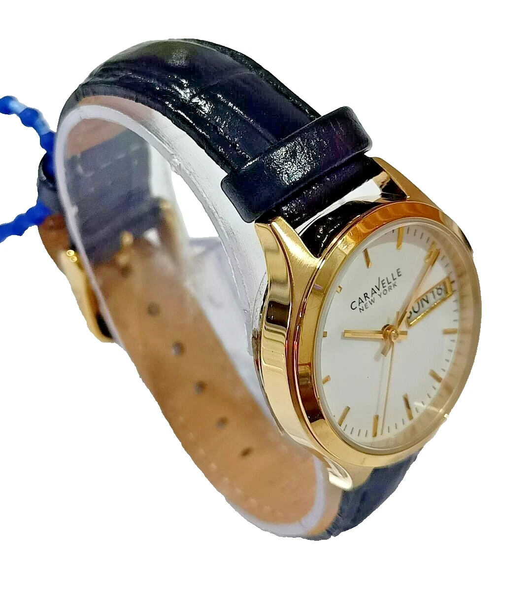 44N106 CARAVELLE NEW YORK MEN'S GOLD LEATHER JAPANESE QUARTZ FASHION WATCH MV-8