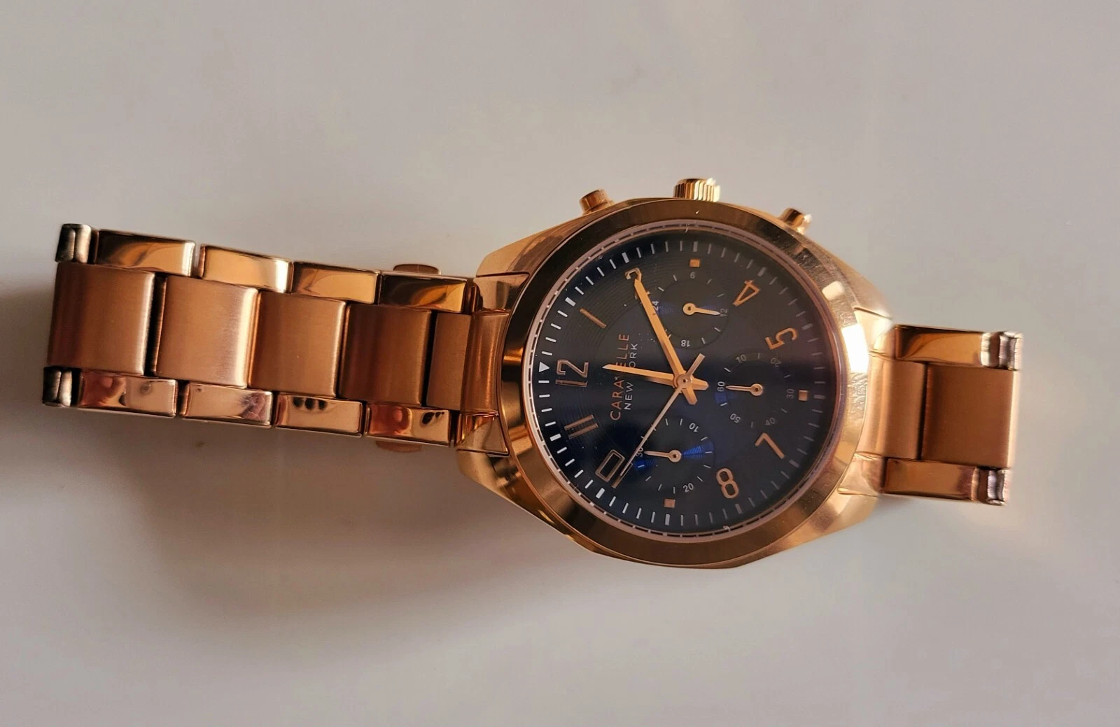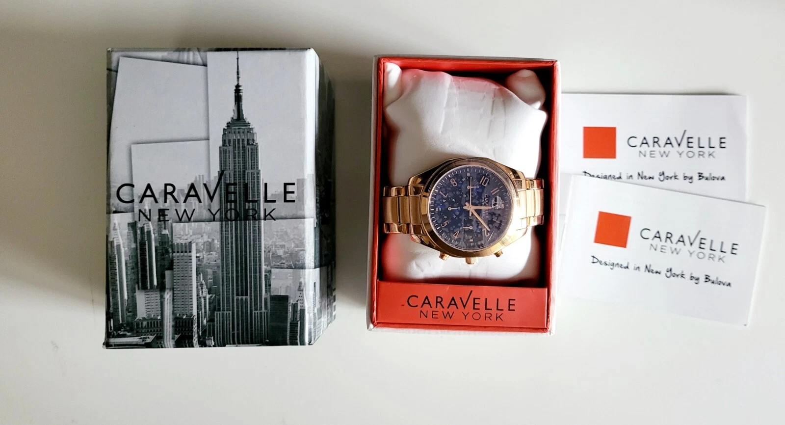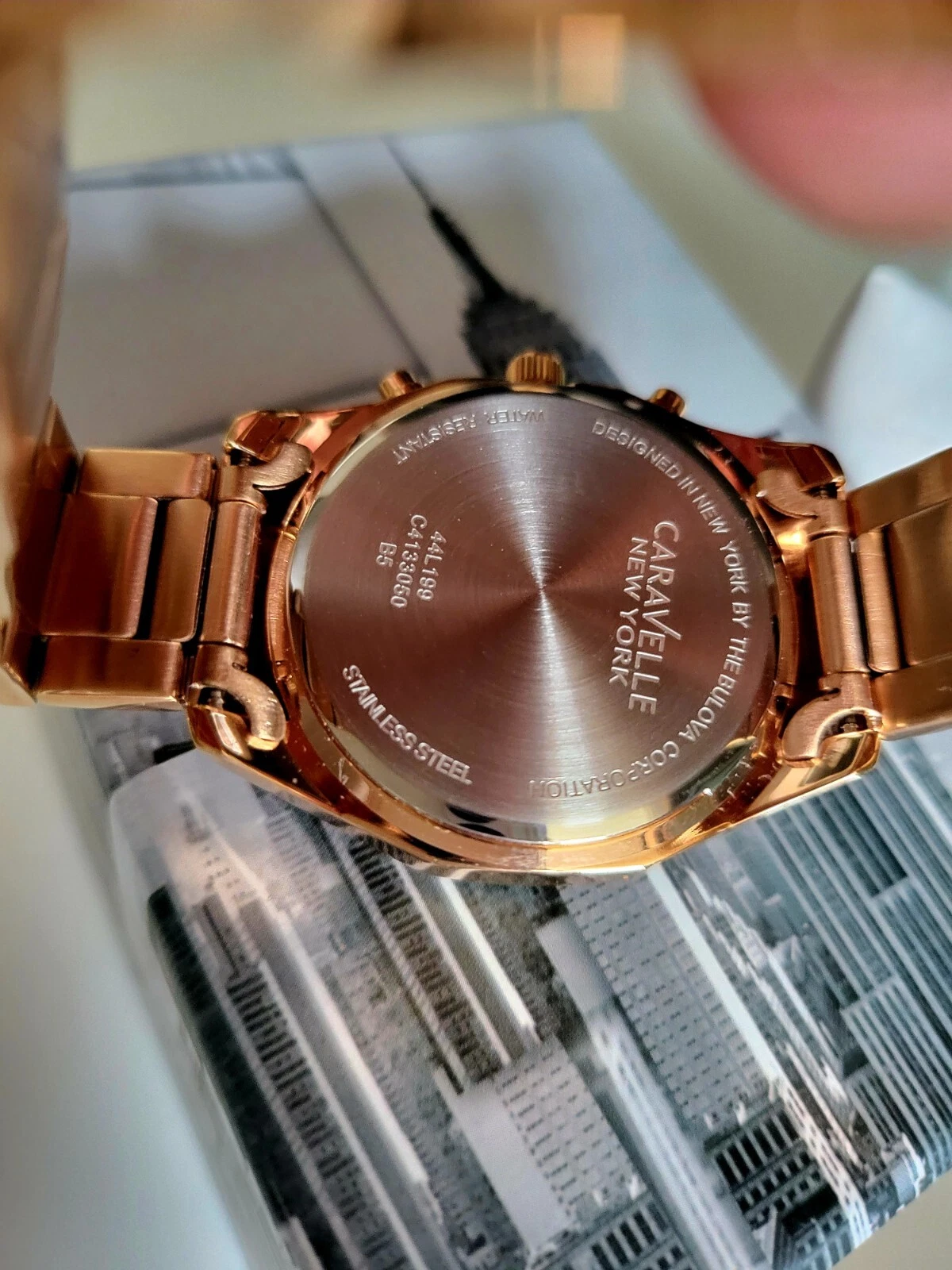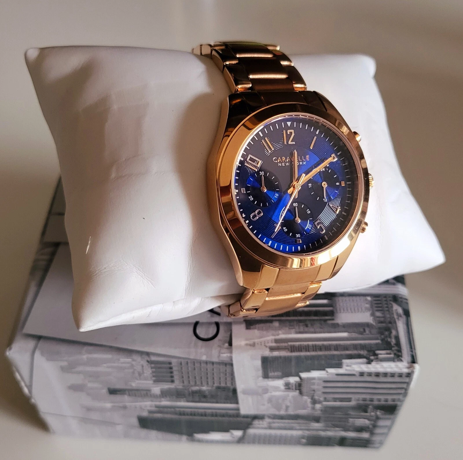 100% Genuine Caravelle New York Melissa Chronograph Rose Gold Ladies Watch Blue
