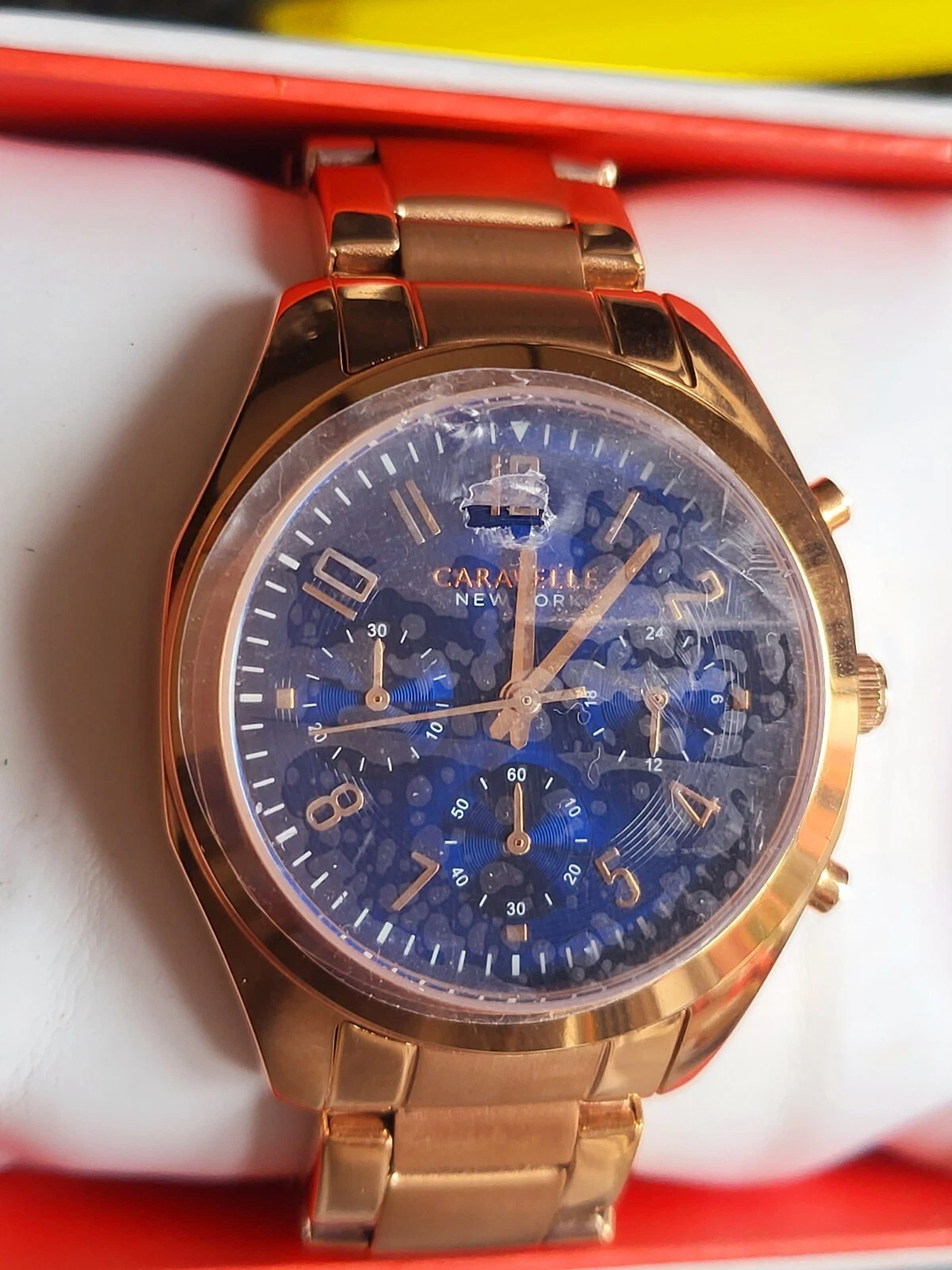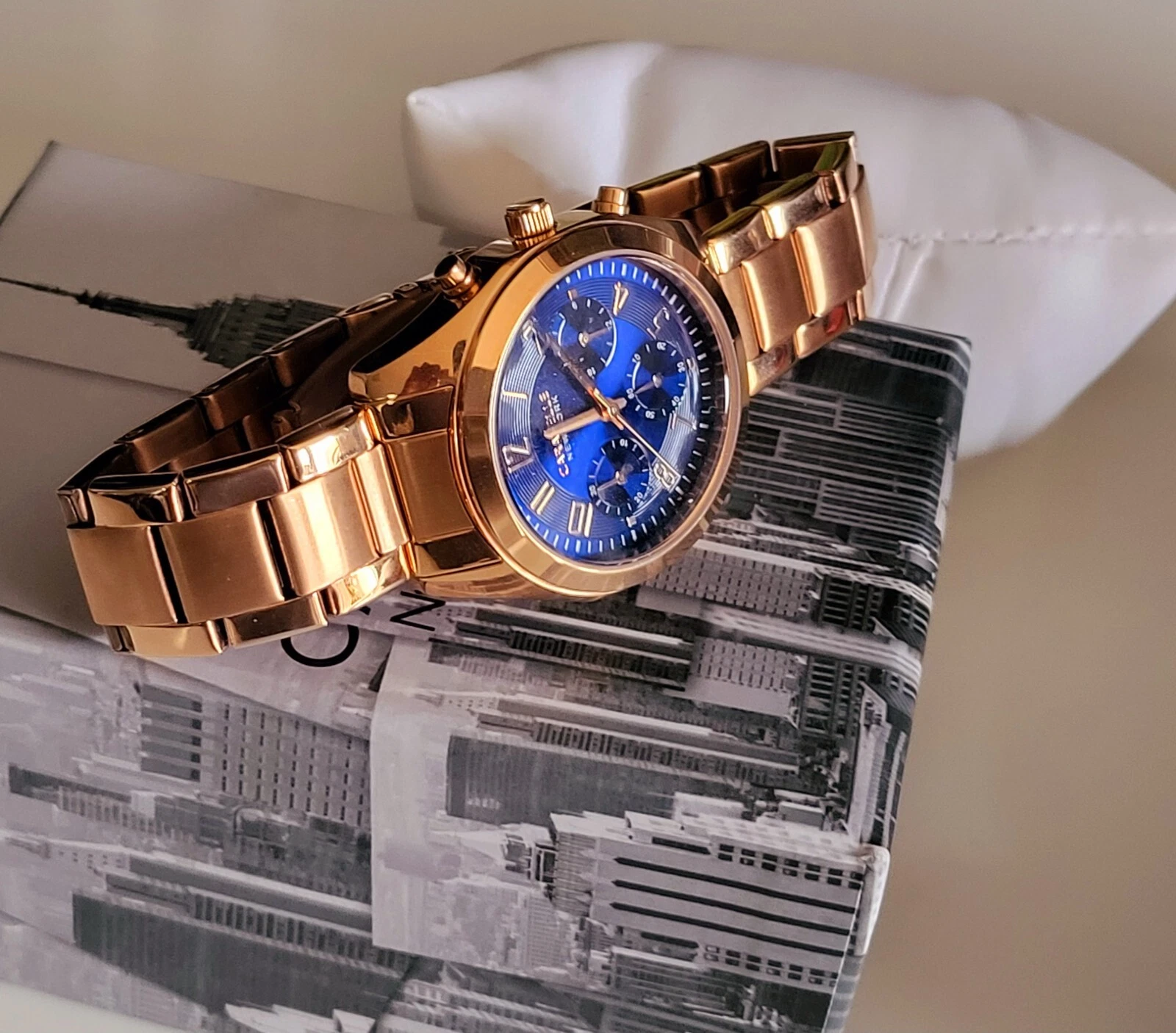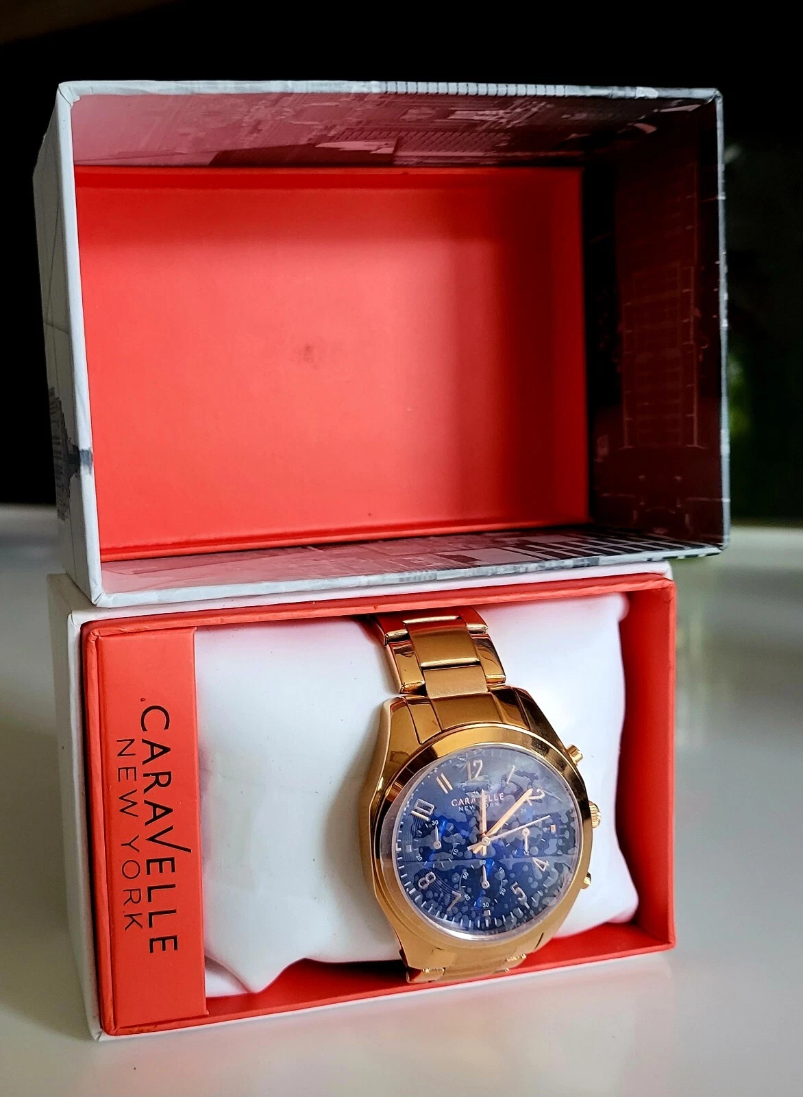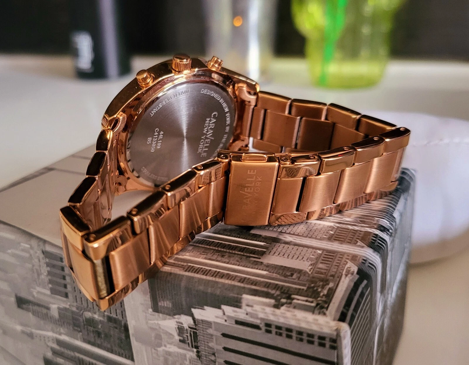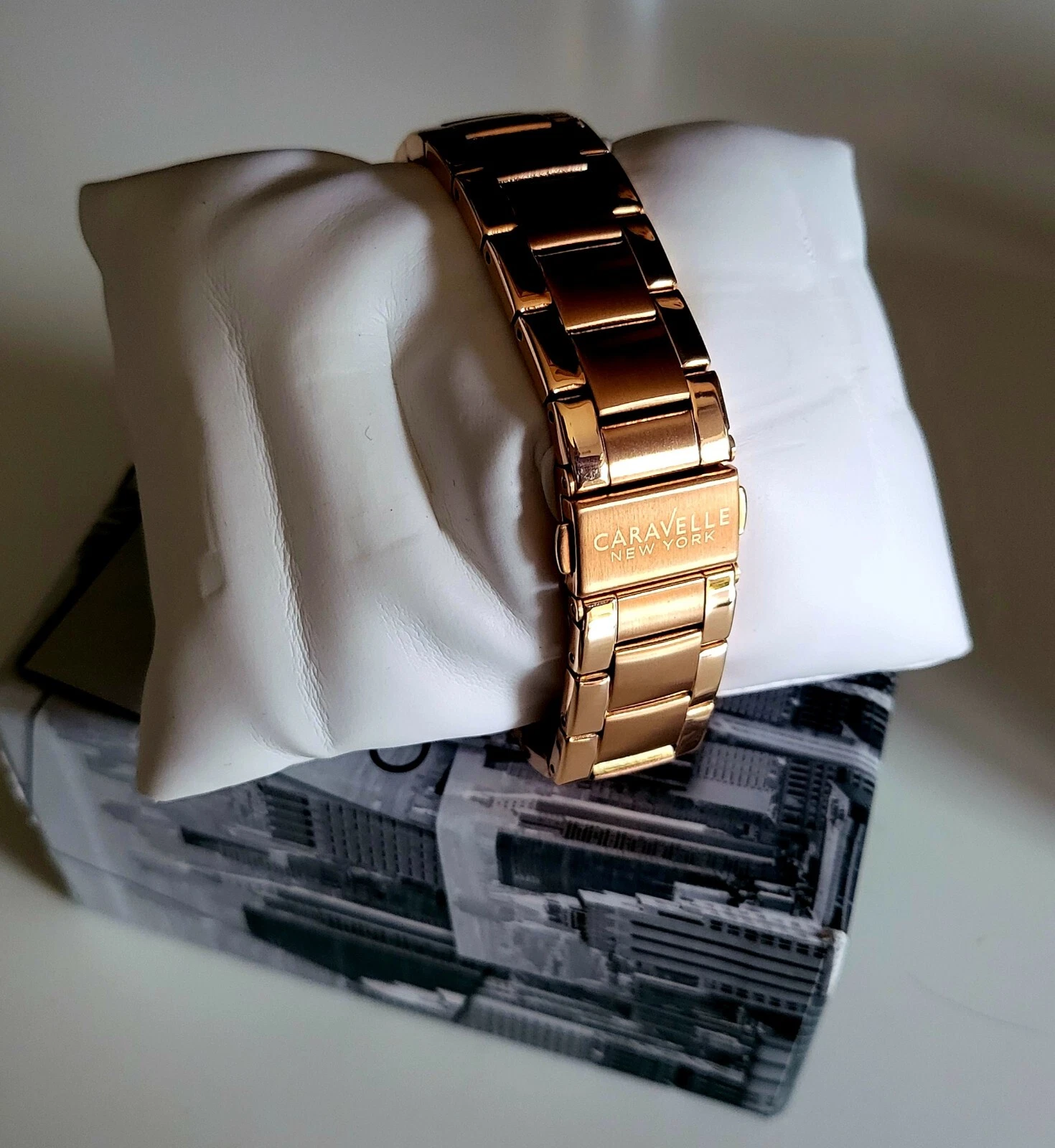 100% Genuine Caravelle New York Melissa Chronograph Rose Gold Ladies Watch Blue