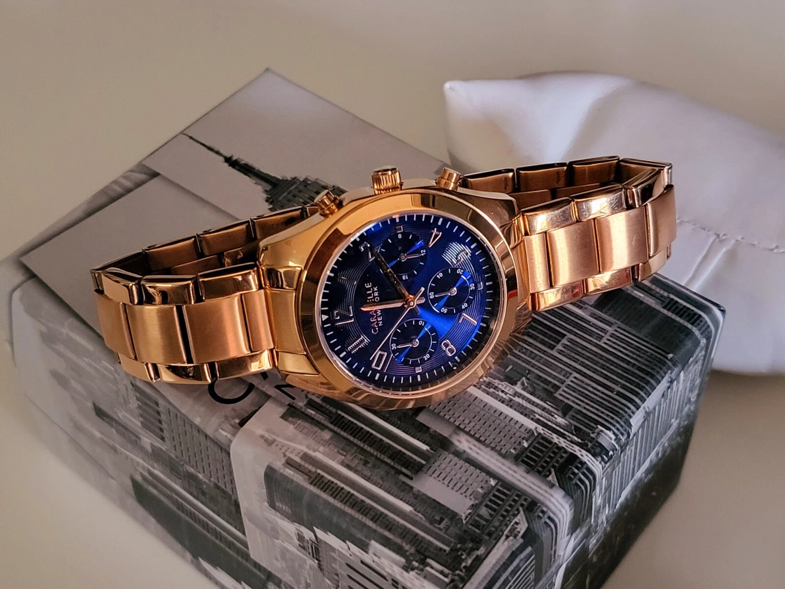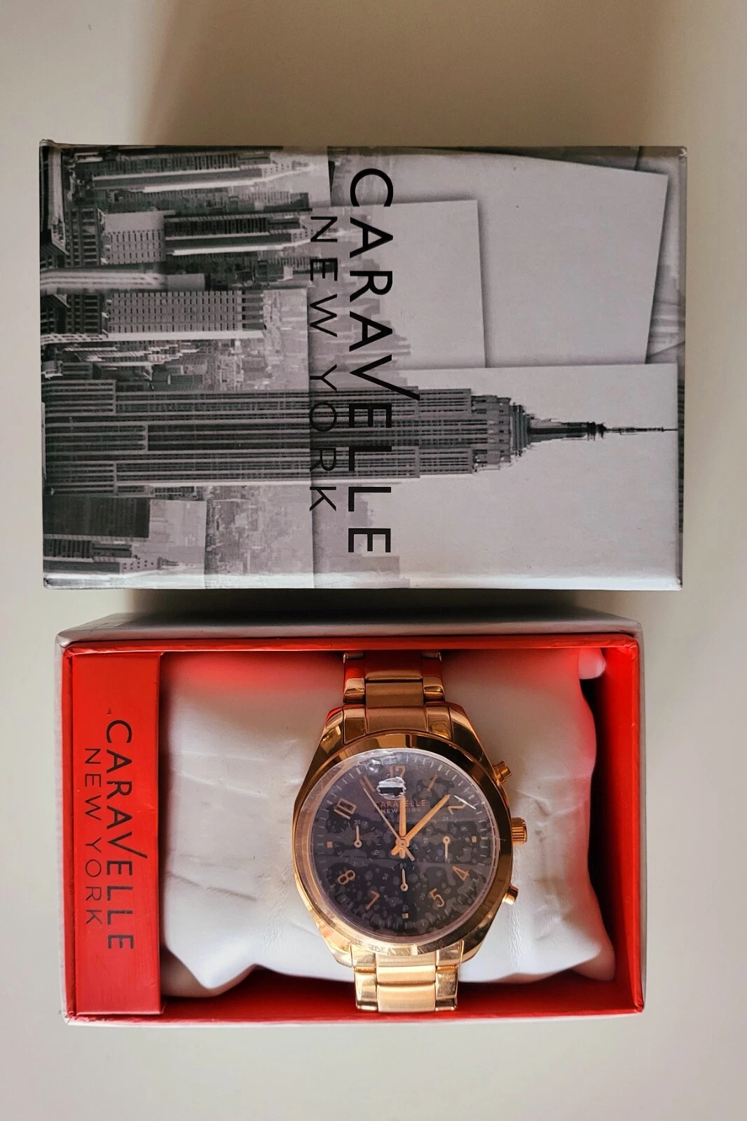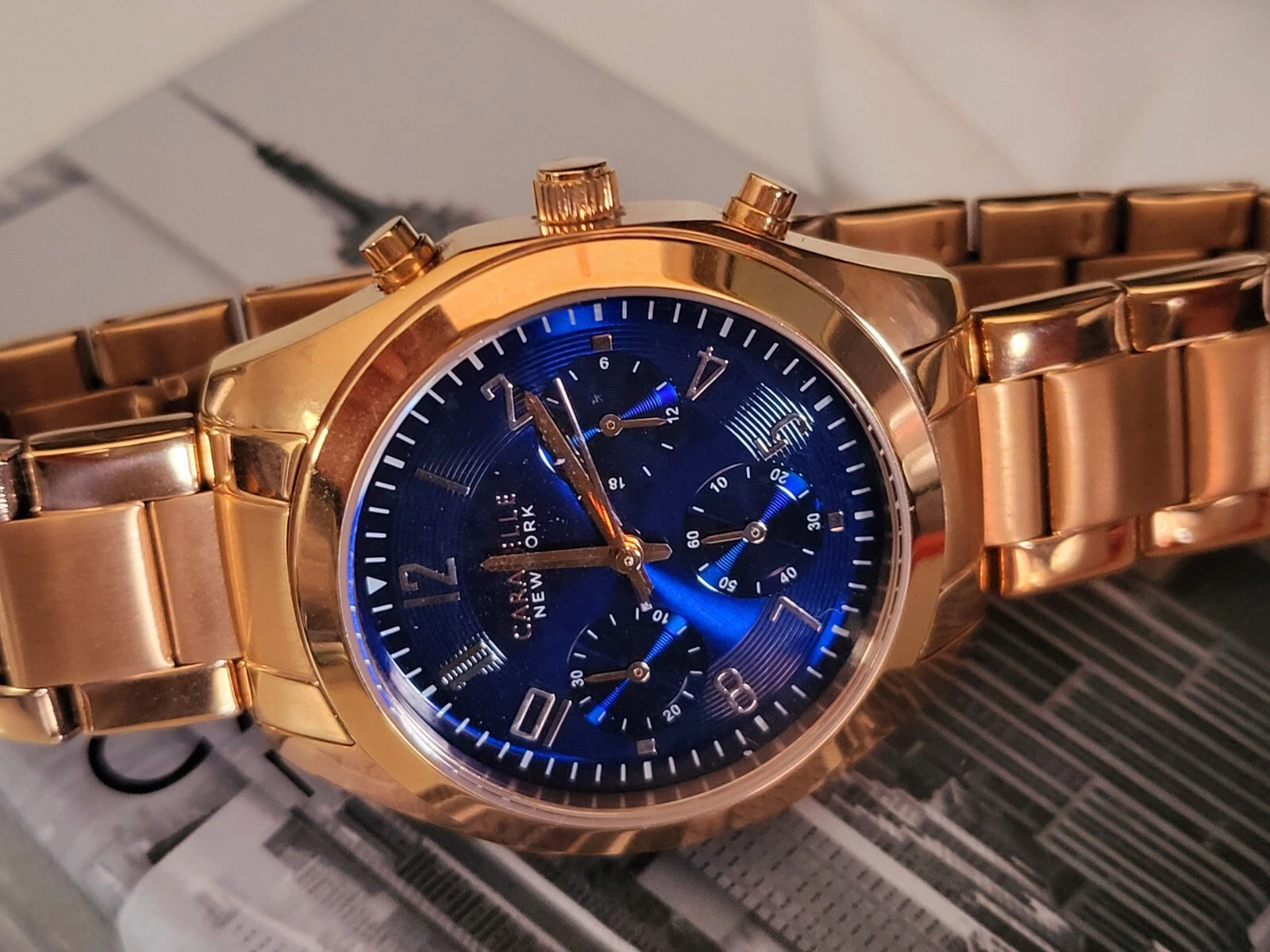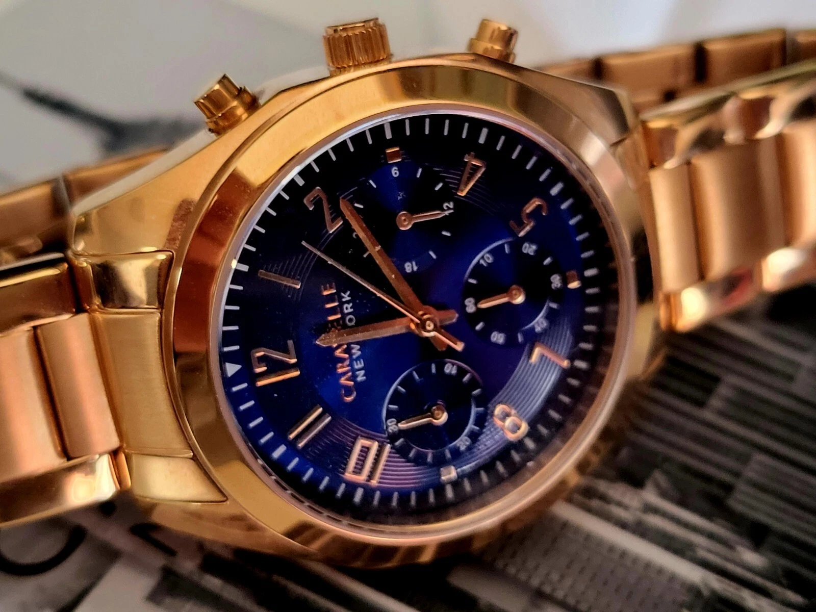 100% Genuine Caravelle New York Melissa Chronograph Rose Gold Ladies Watch Blue
