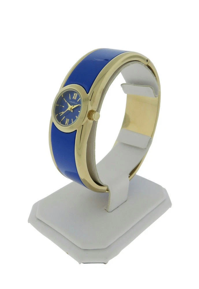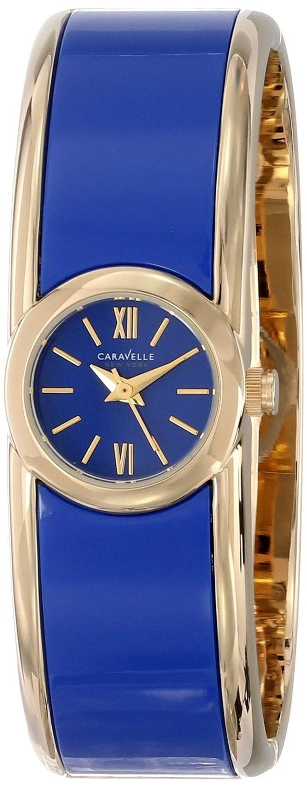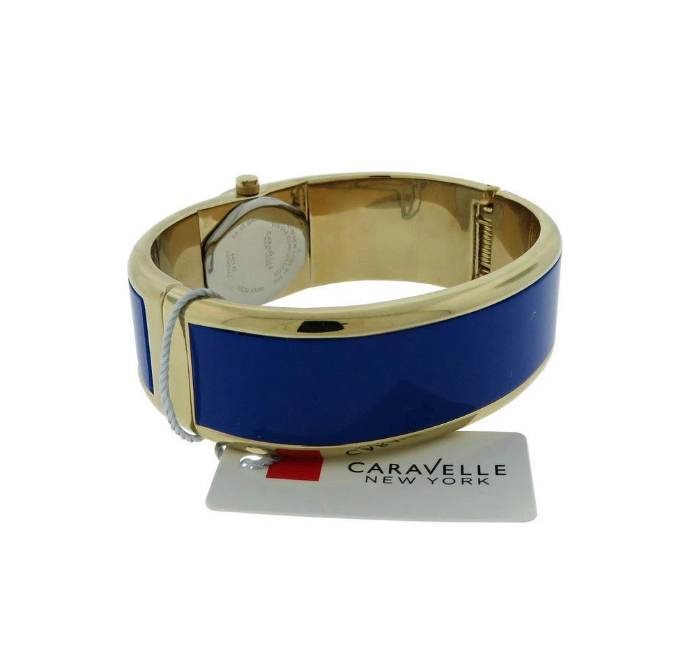 NEW BULOVA CARAVELLE 44L145 LADIES DRESS WATCH BLUE DIAL GOLD TONE BANGLE ANALOG