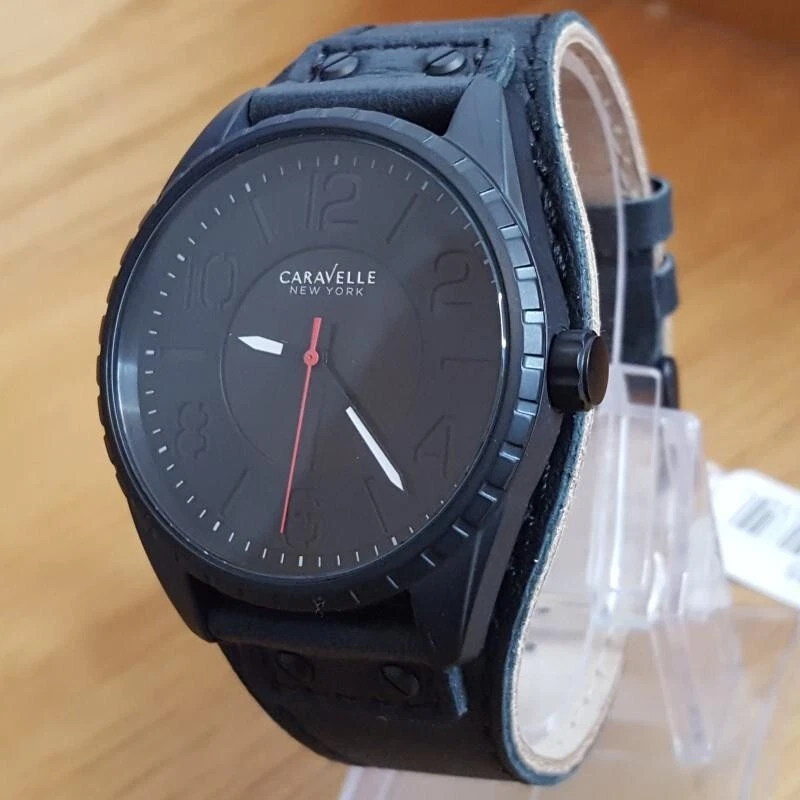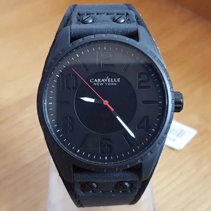Mens Bulova Caravelle Wide Cuff Black Stealth Military Watch 45B125 BNIB
