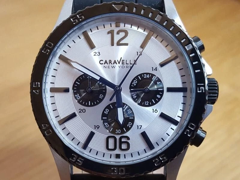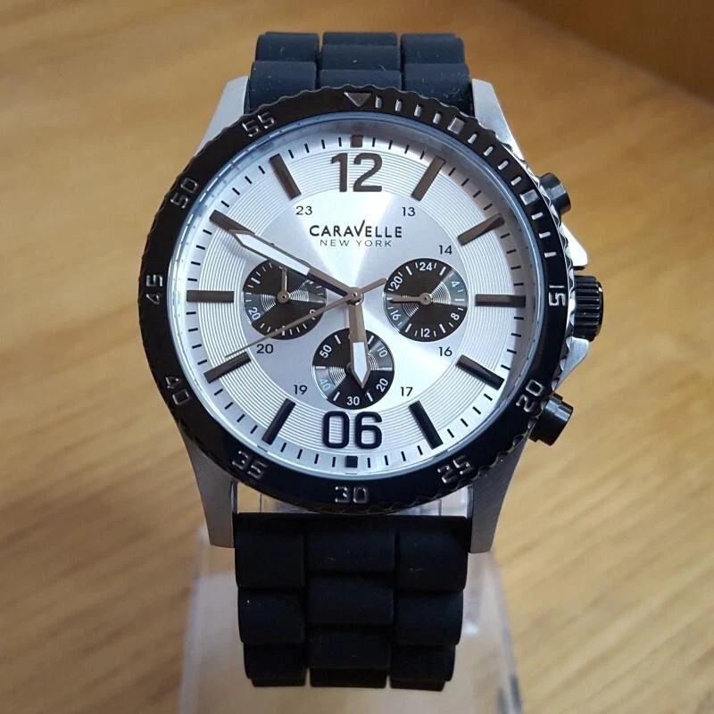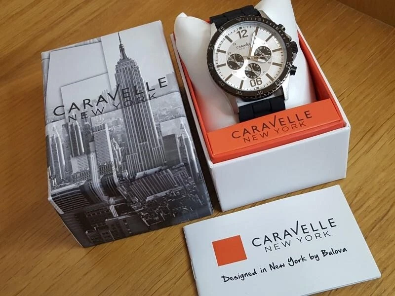 Mens Bulova Caravelle New York Logan Black Silicone Chrono Watch New In Box