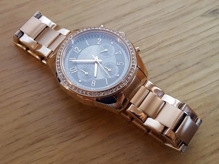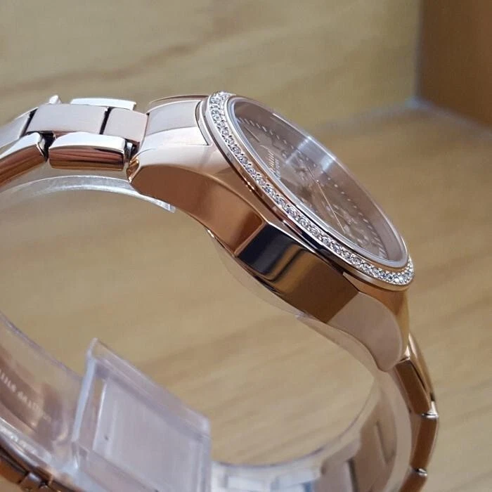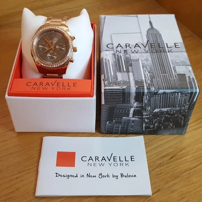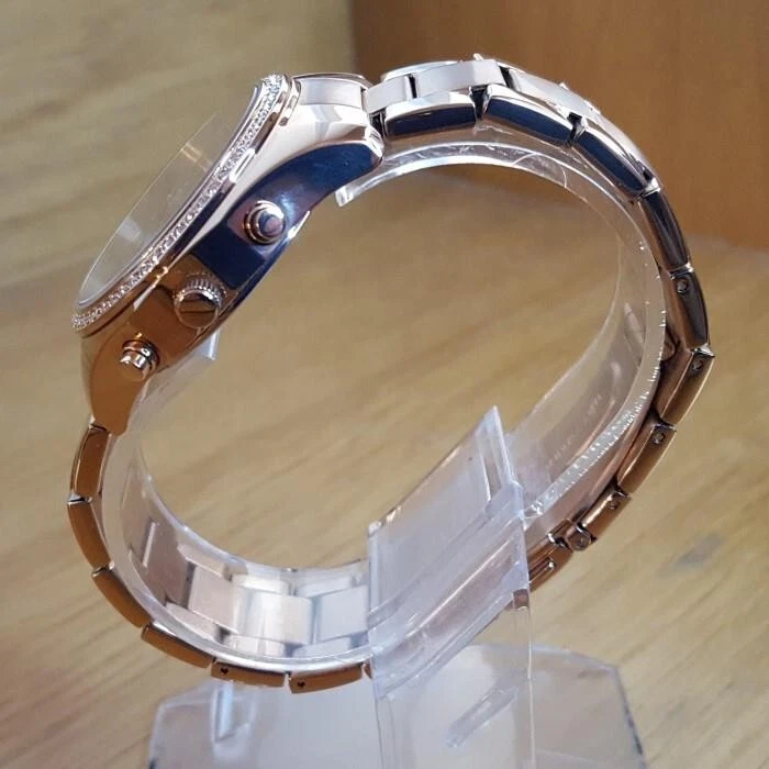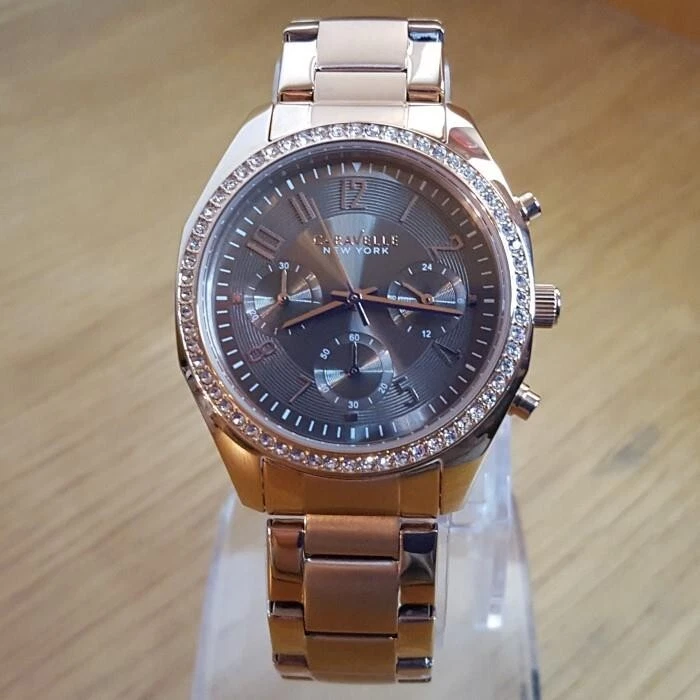 Mens Ladies Rose-Gold Bulova Caravelle 44L195 Melissa Bronze Chrono Glitz Watch