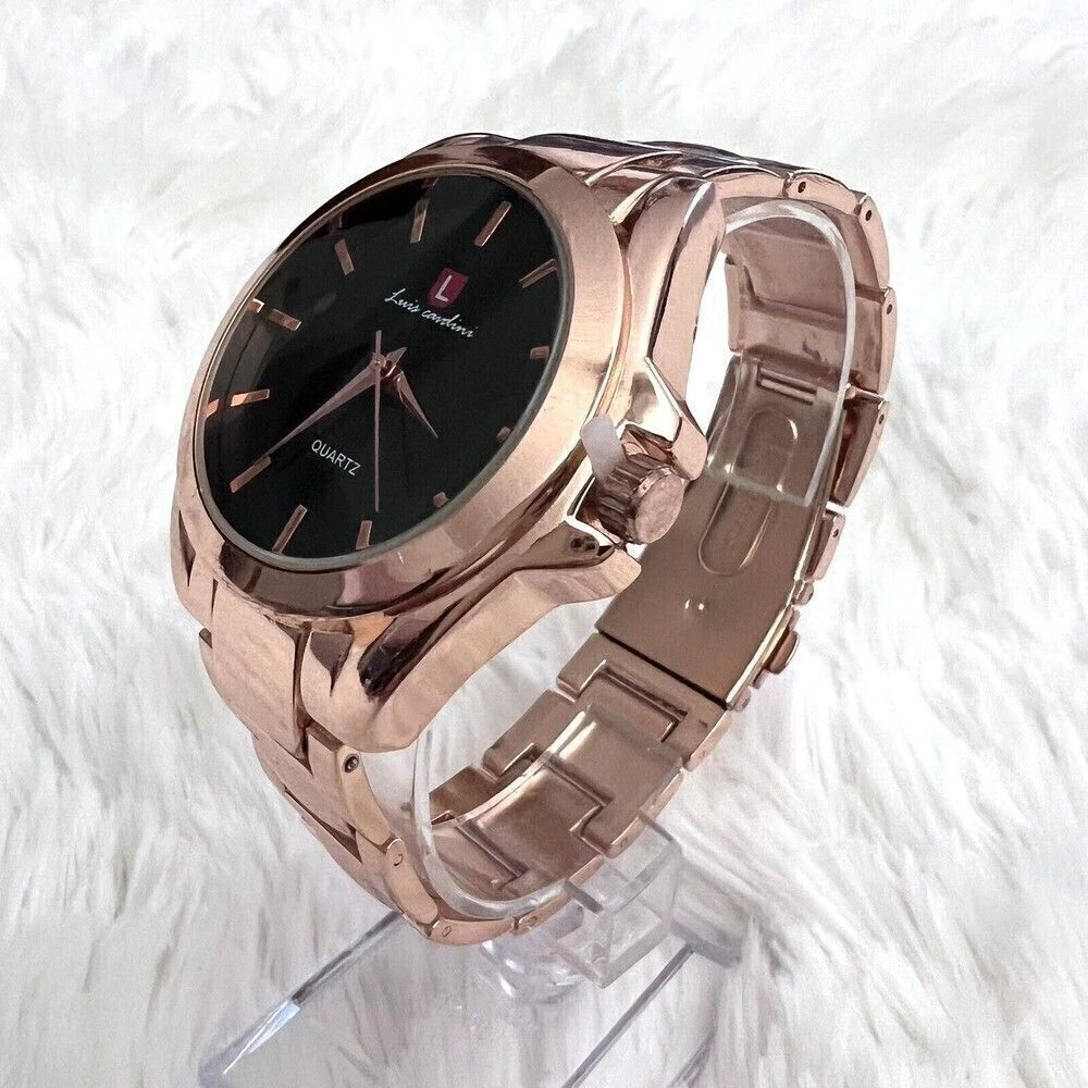 Luis Cardini Rose Gold Quartz Women's Watch Elegant Timepiece Black Dial
