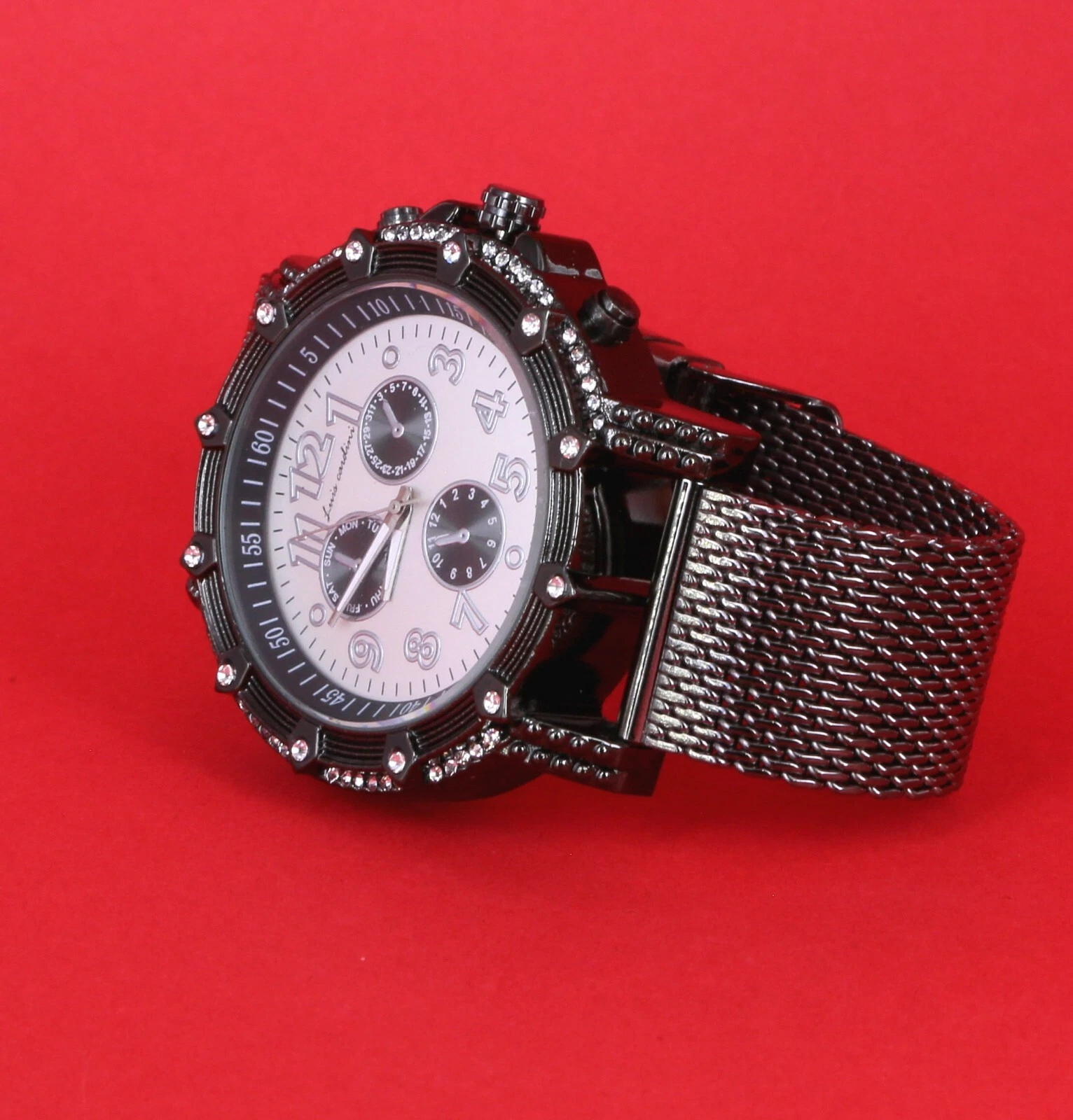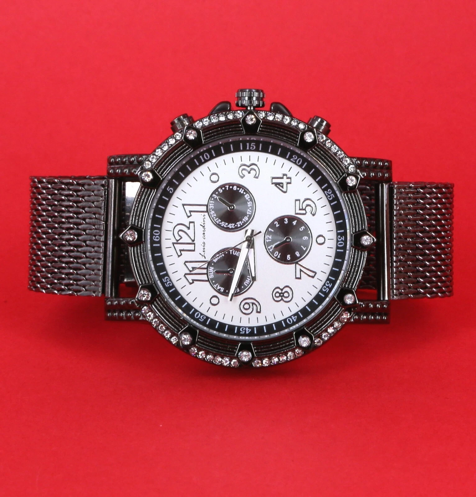 Men's Iced Luxury Bezel Hip Hop Metal Mesh Band Watch by Luis Cardini 52 mm