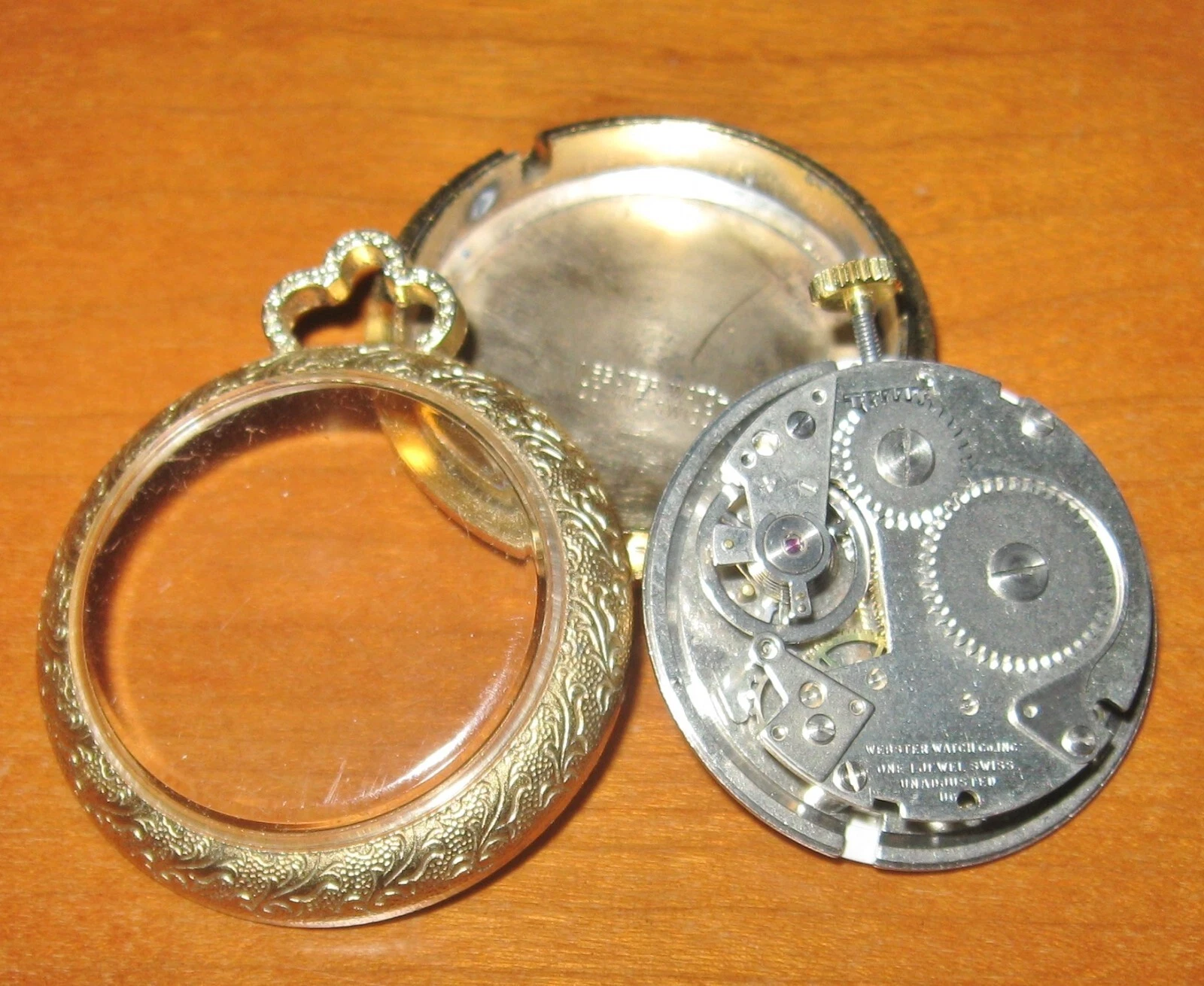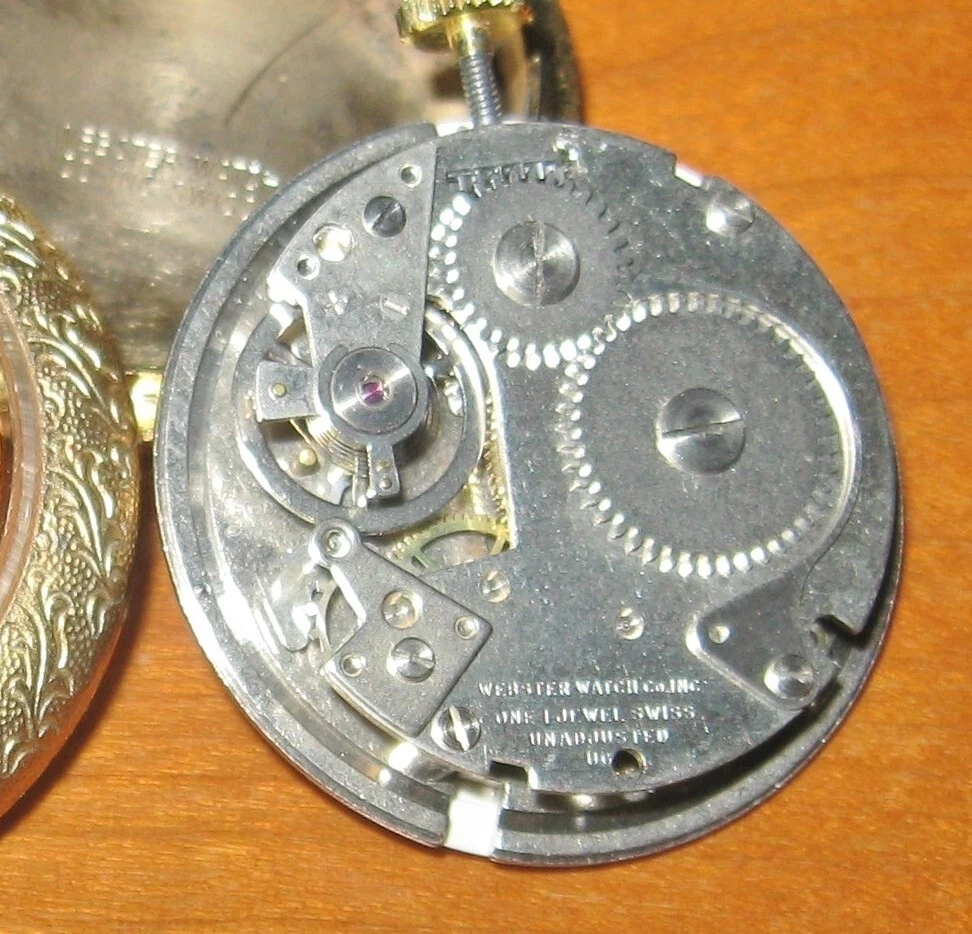 Vintage Hudson Webster Pocket Watch One Jewel Unadjusted Small Goldtone - Parts