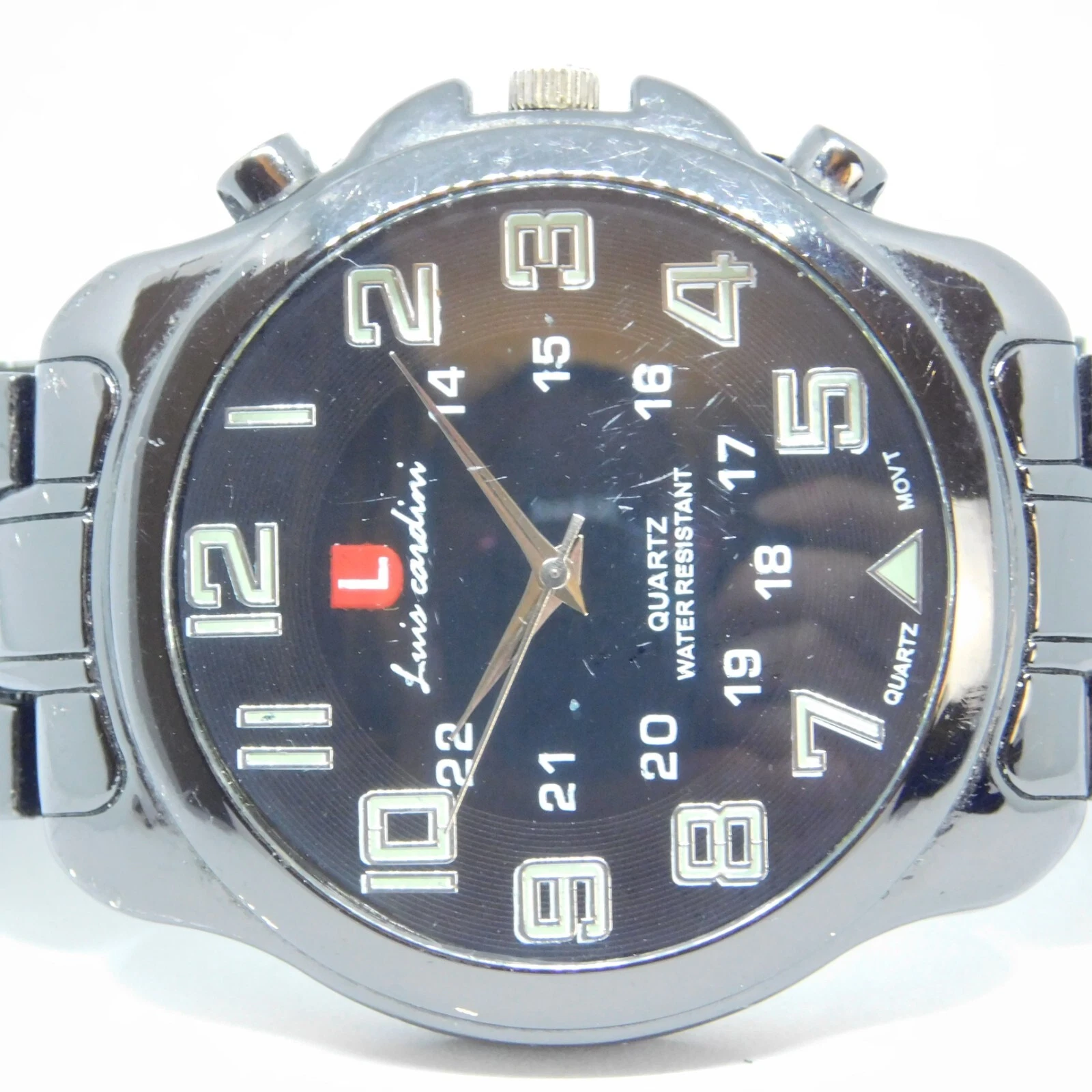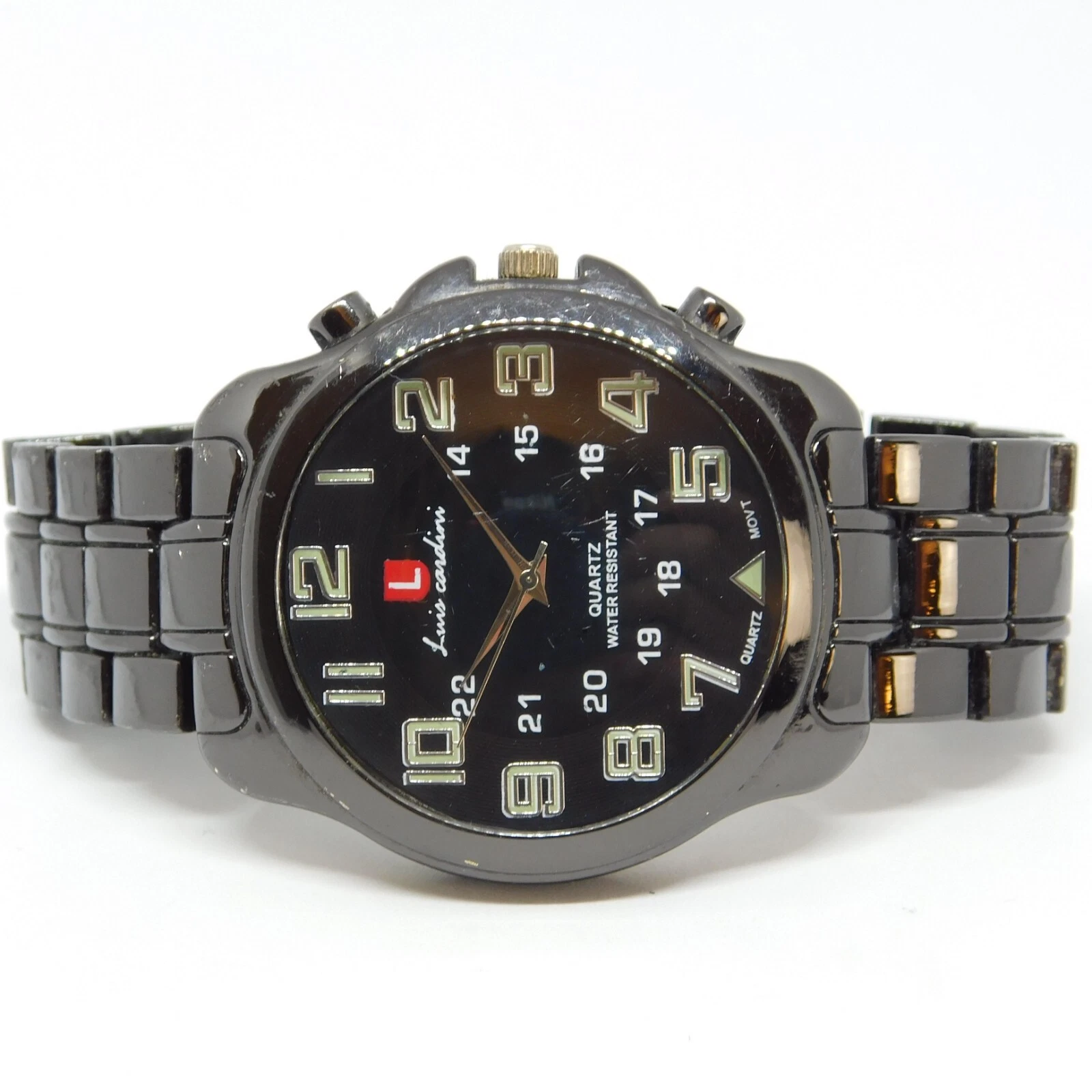 Luis Cardini Black Tone Quartz Analog Men's Watch Sz. 7 1/4" New Battery