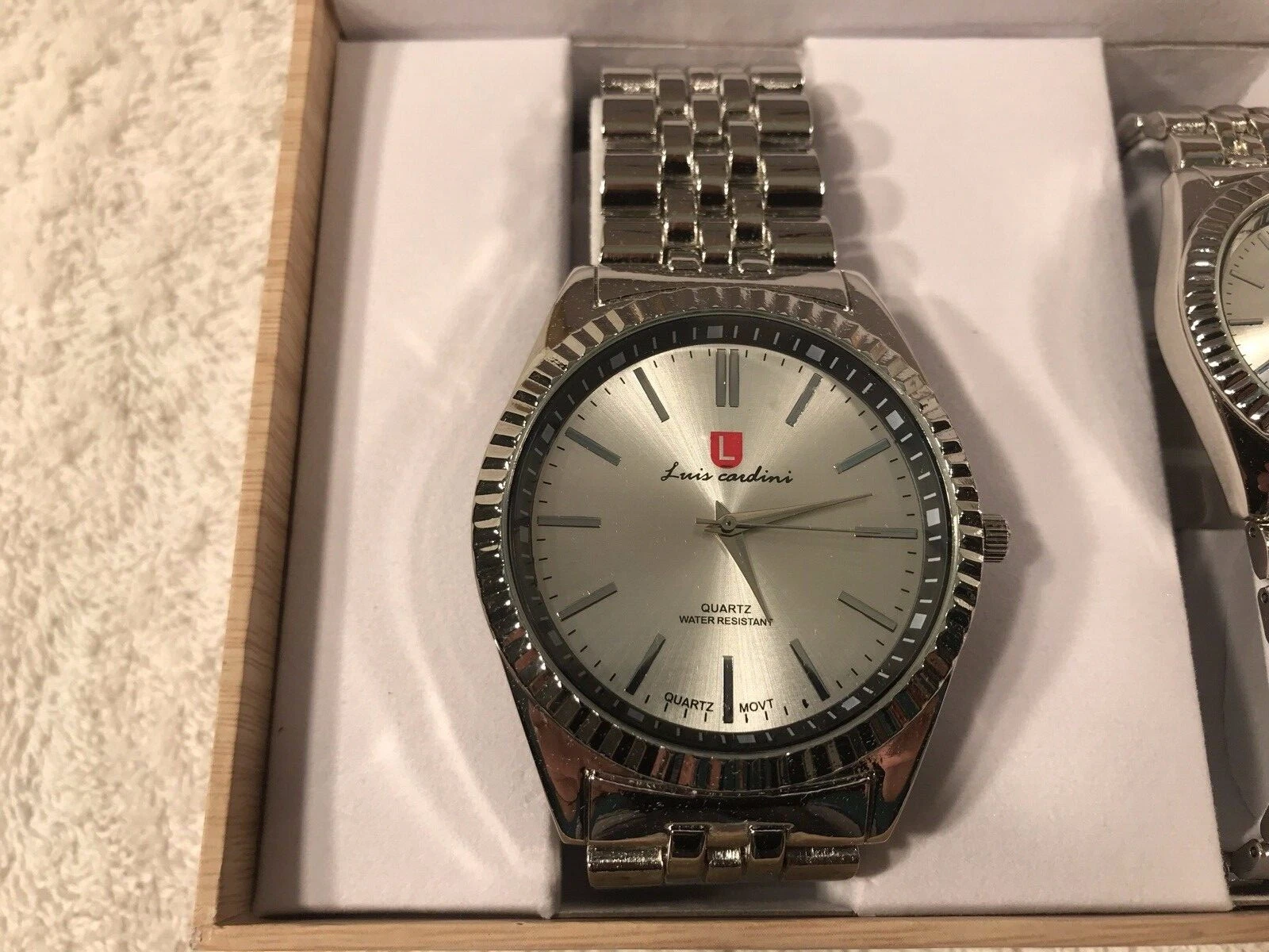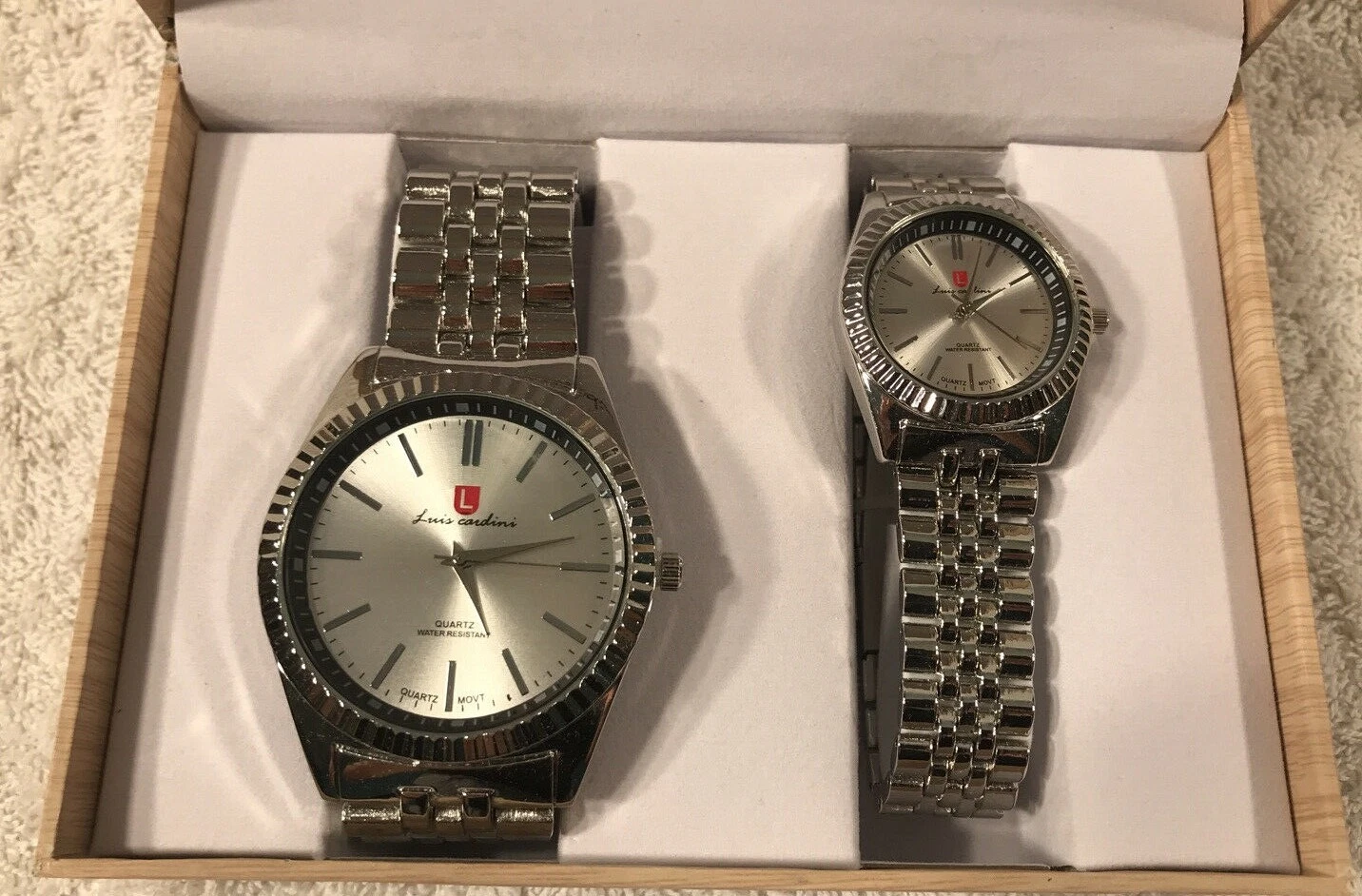 $249.99 Luis Cardini His & Her Metal Link Stylish Set of Watches NIB 80% OFF #15