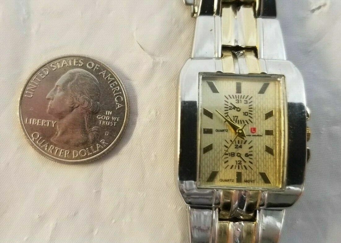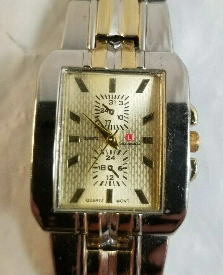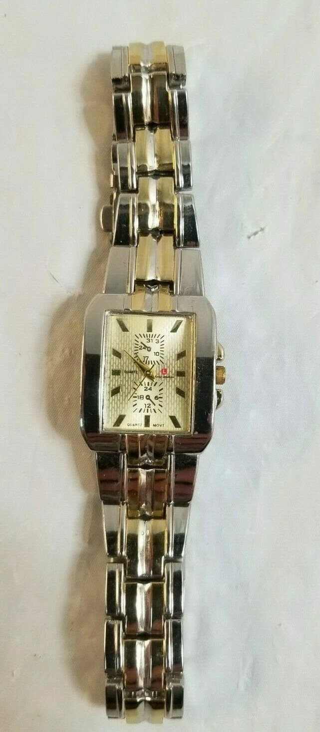 LUIS CARDINI Lady's Watch w Metal Link Gold Silver Band RUNS but NEEDS BATTERY