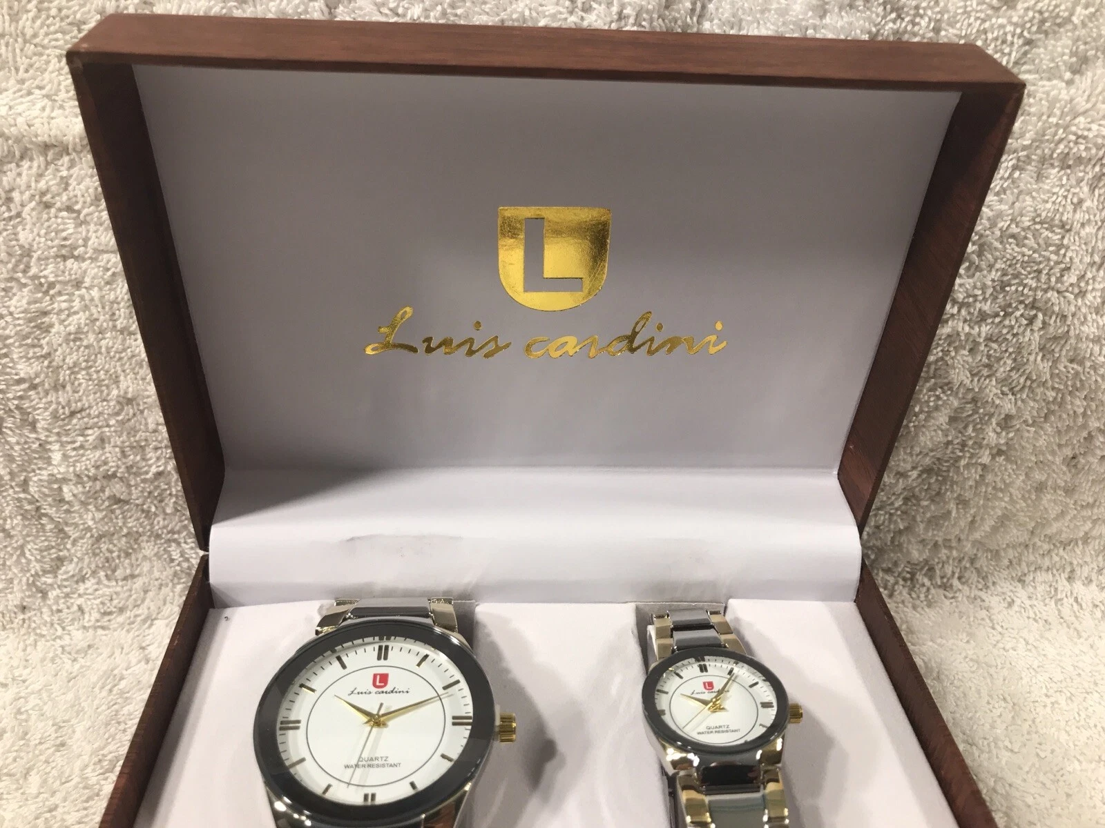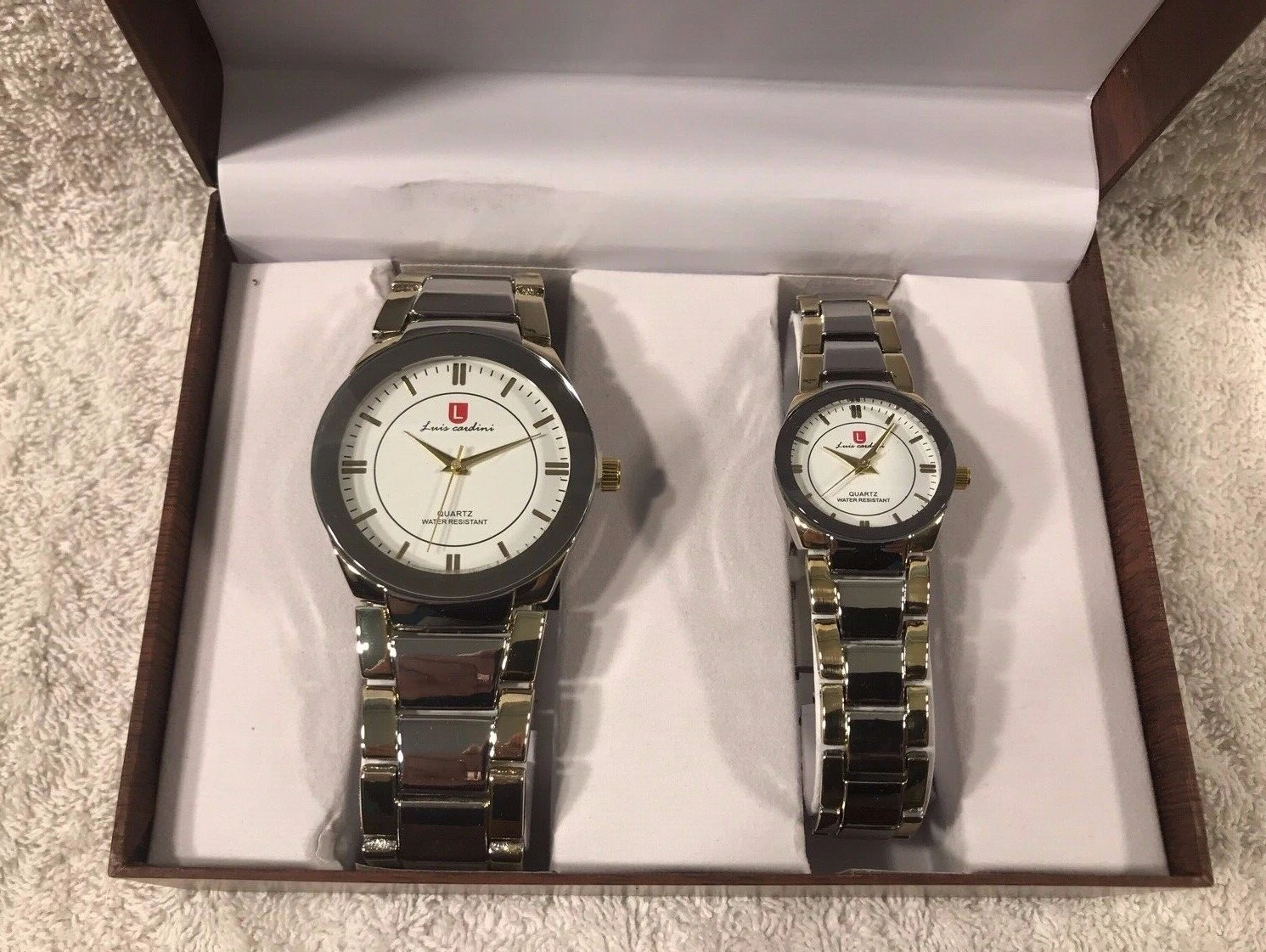 $249.99 Luis Cardini His & Her Metal Link Stylish Set of Watches NIB 80% OFF #17