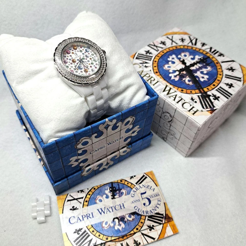 Capri Watch MultiJoy 5446 White Ceramic Swarovski Crystal Bezel Bracelet