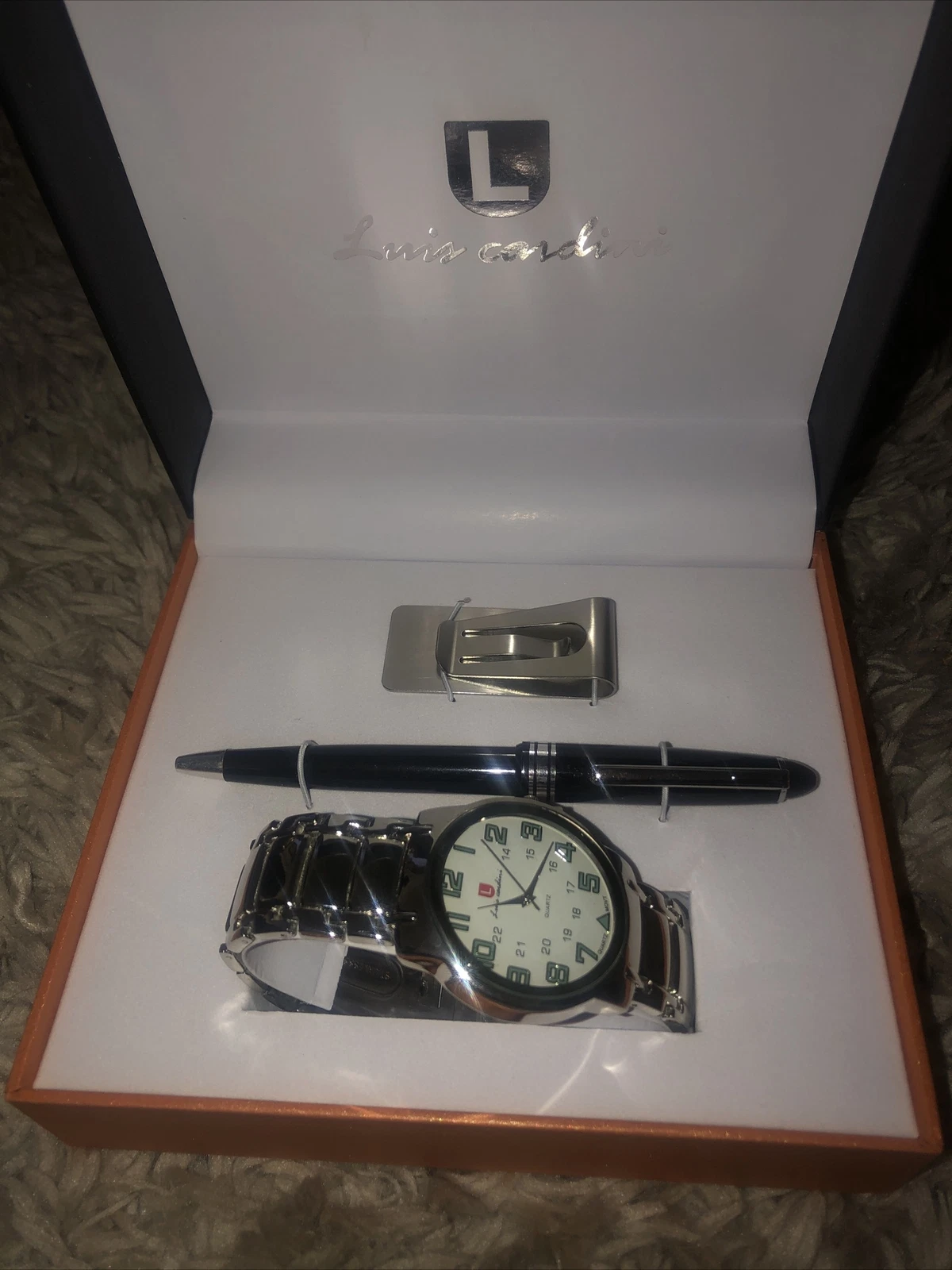 Luis Cardini Watch, Pen, and Money Clip Gift Set - New