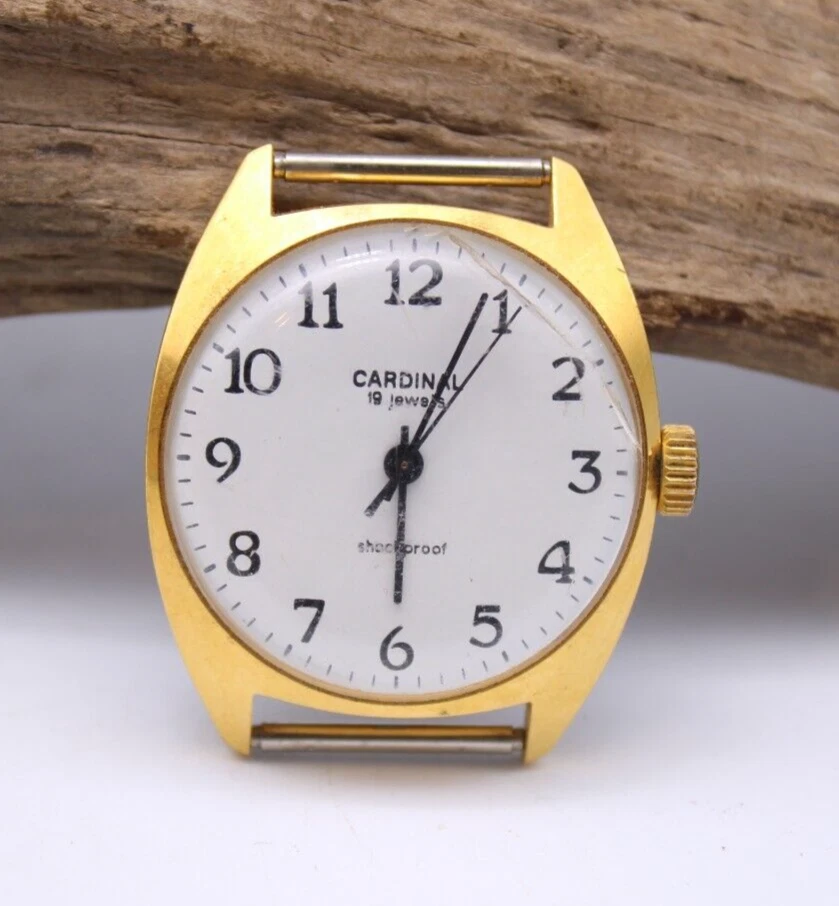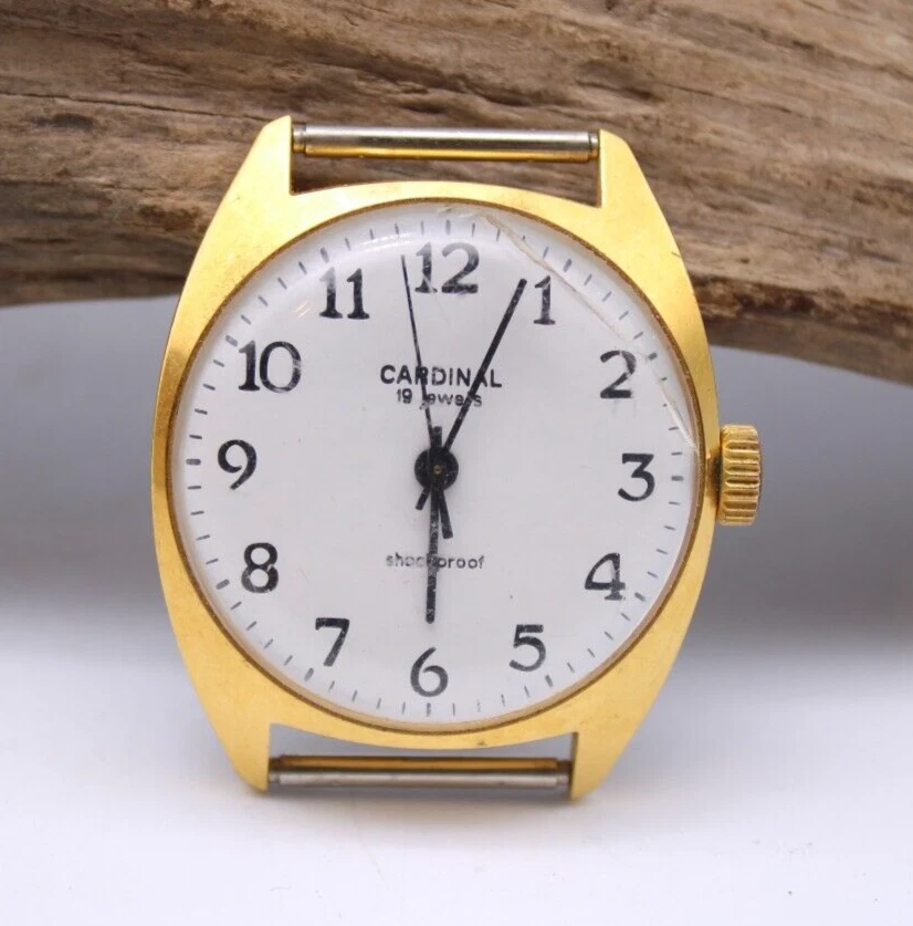 VINTAGE CARDINAL 19j SHOCKPROOF WRISTWATCH FACE 33.4mm 18.3 LUG 2608HA RUNS(GE2)