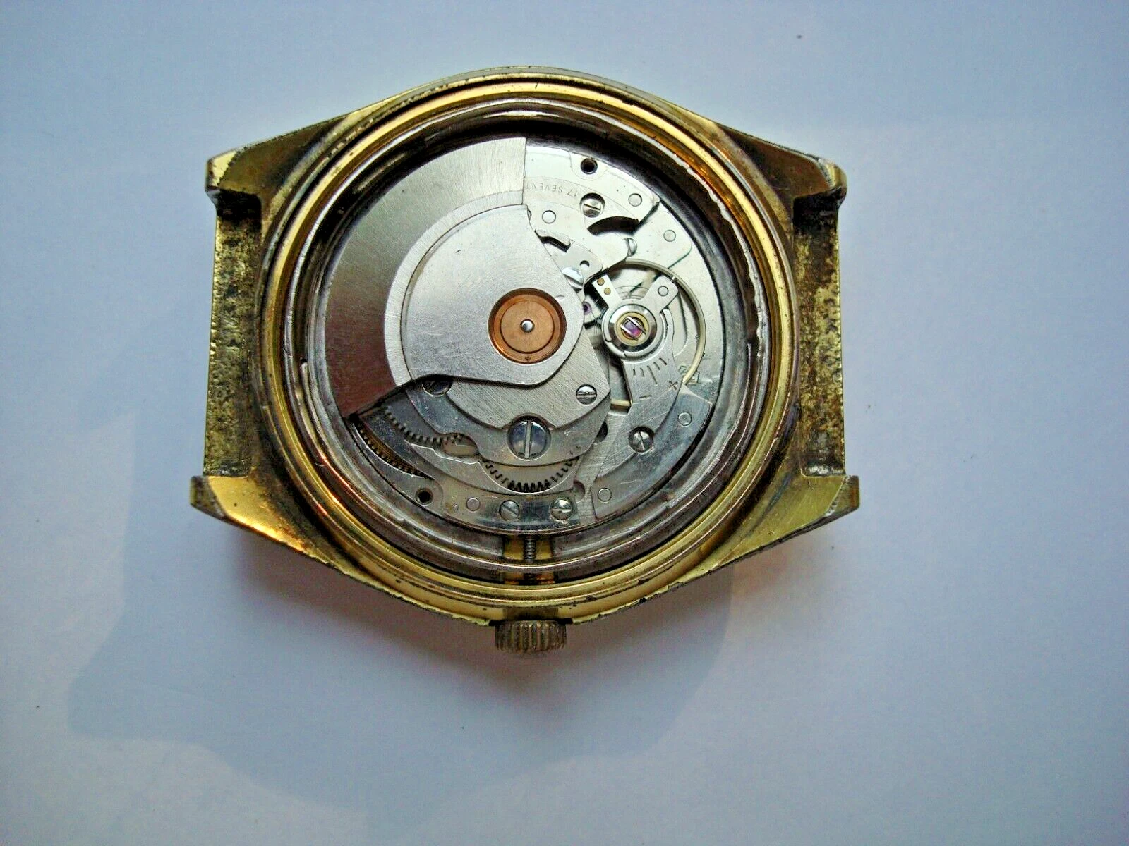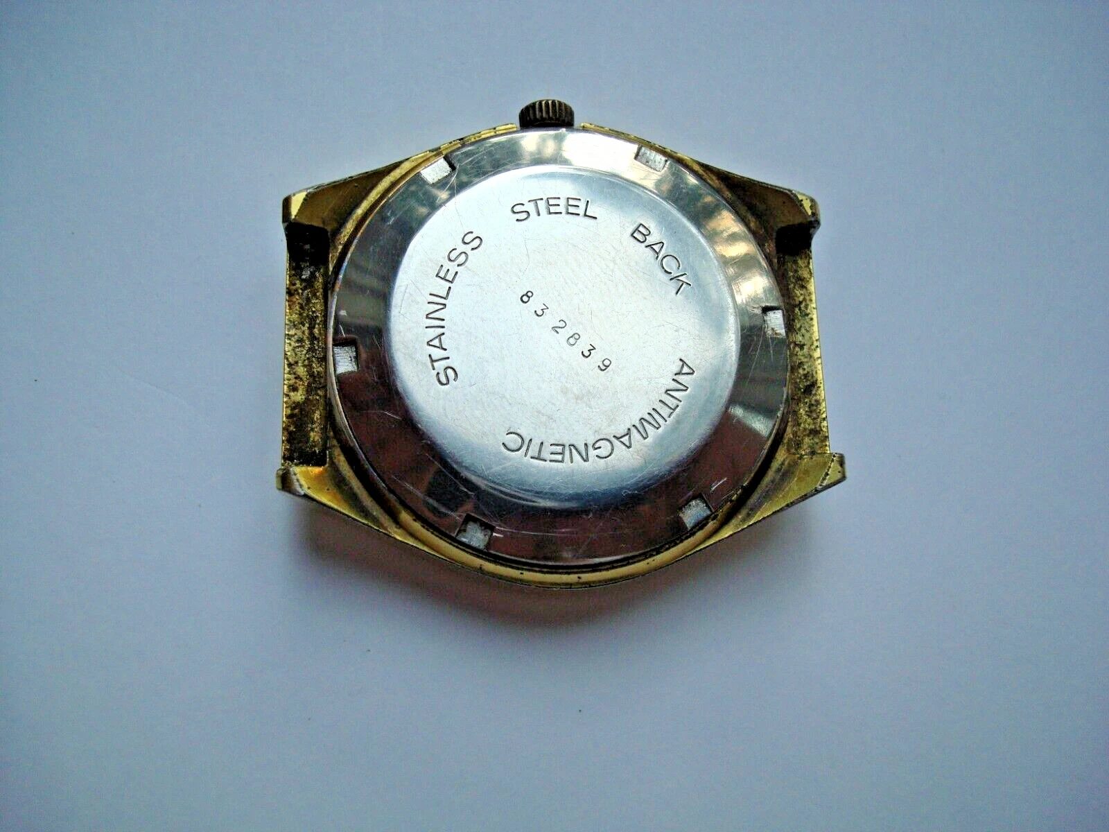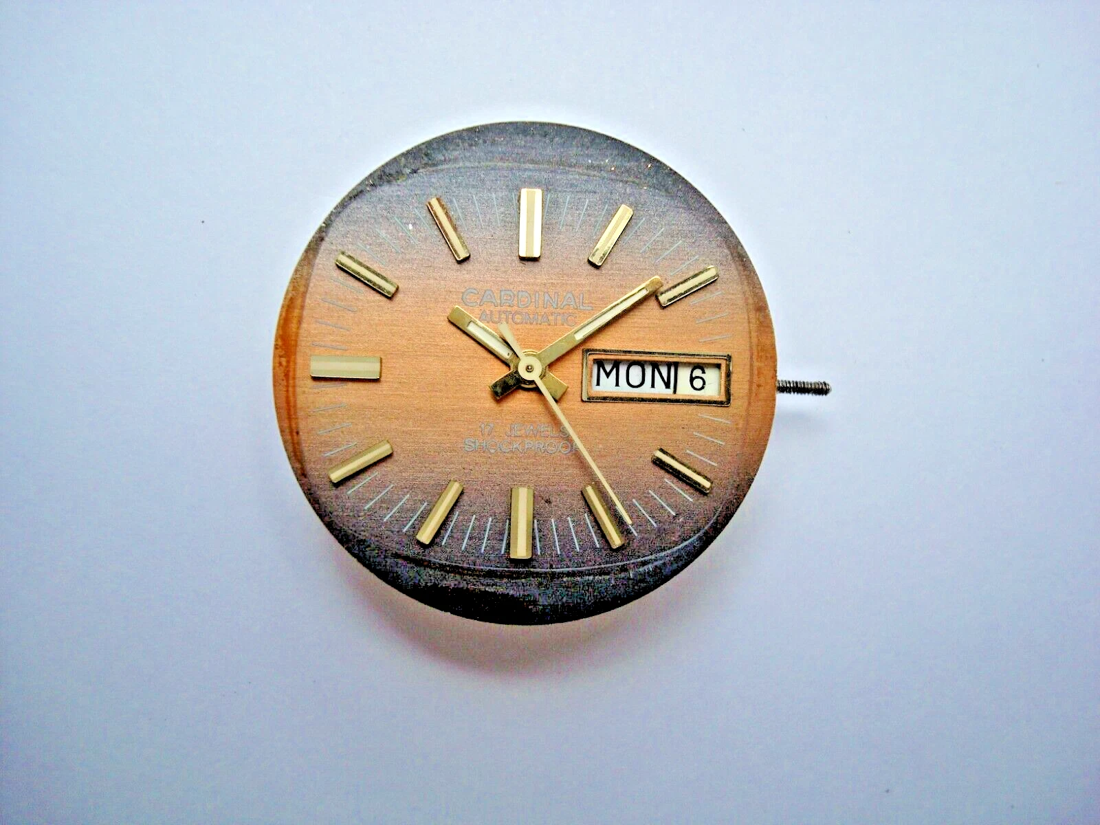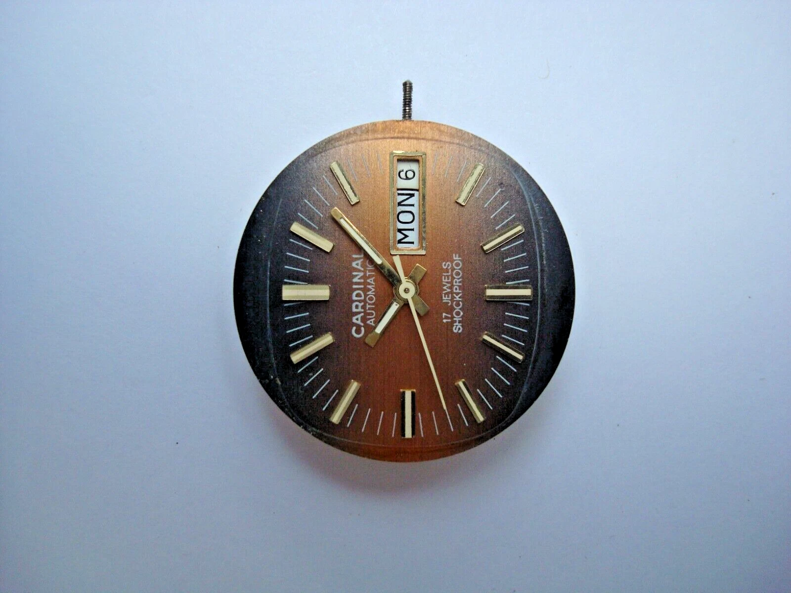 CARDINAL MENS AUTOMATIC WATCH TV Shape 17Jewels DAY DATE 2 tone Brown Dial RUNS