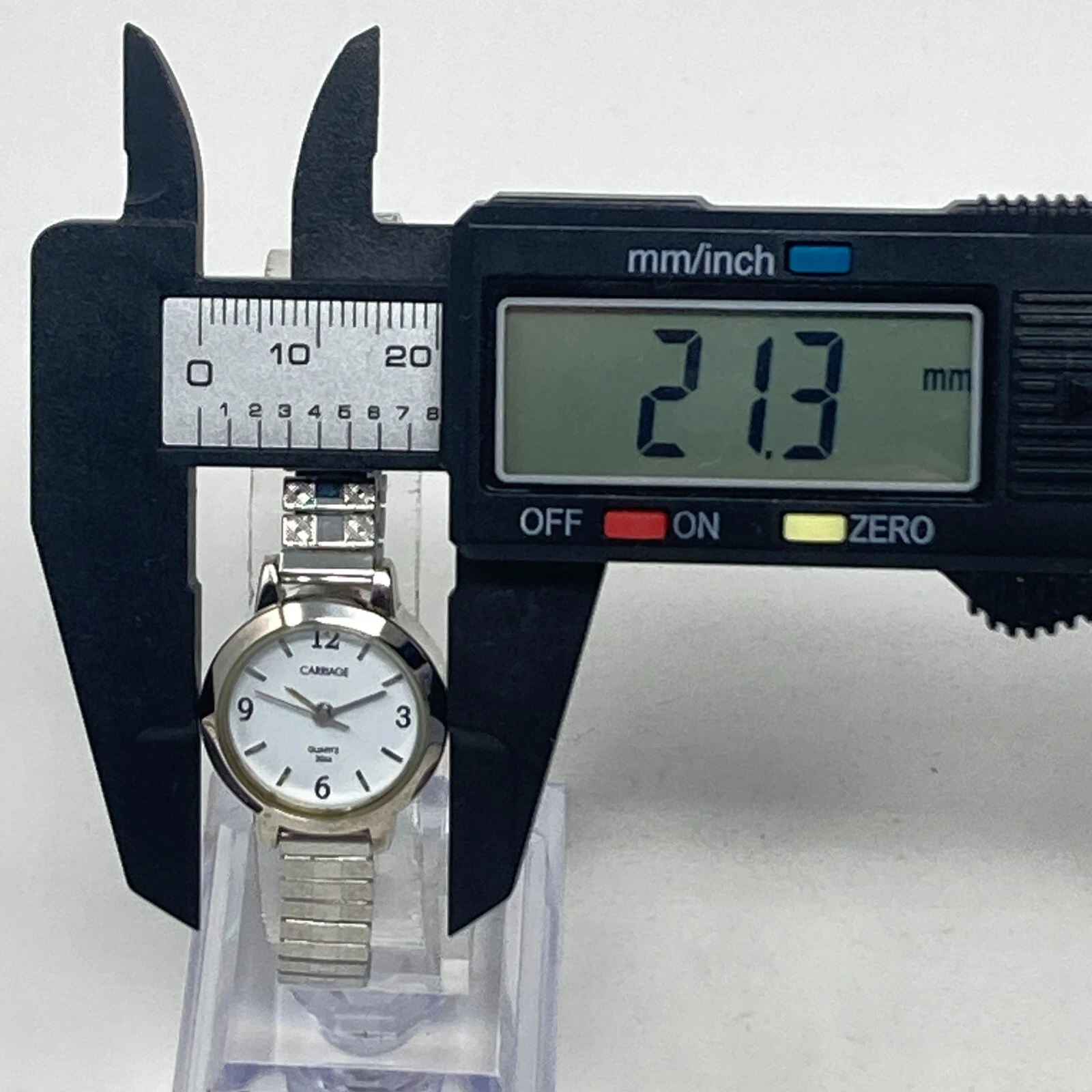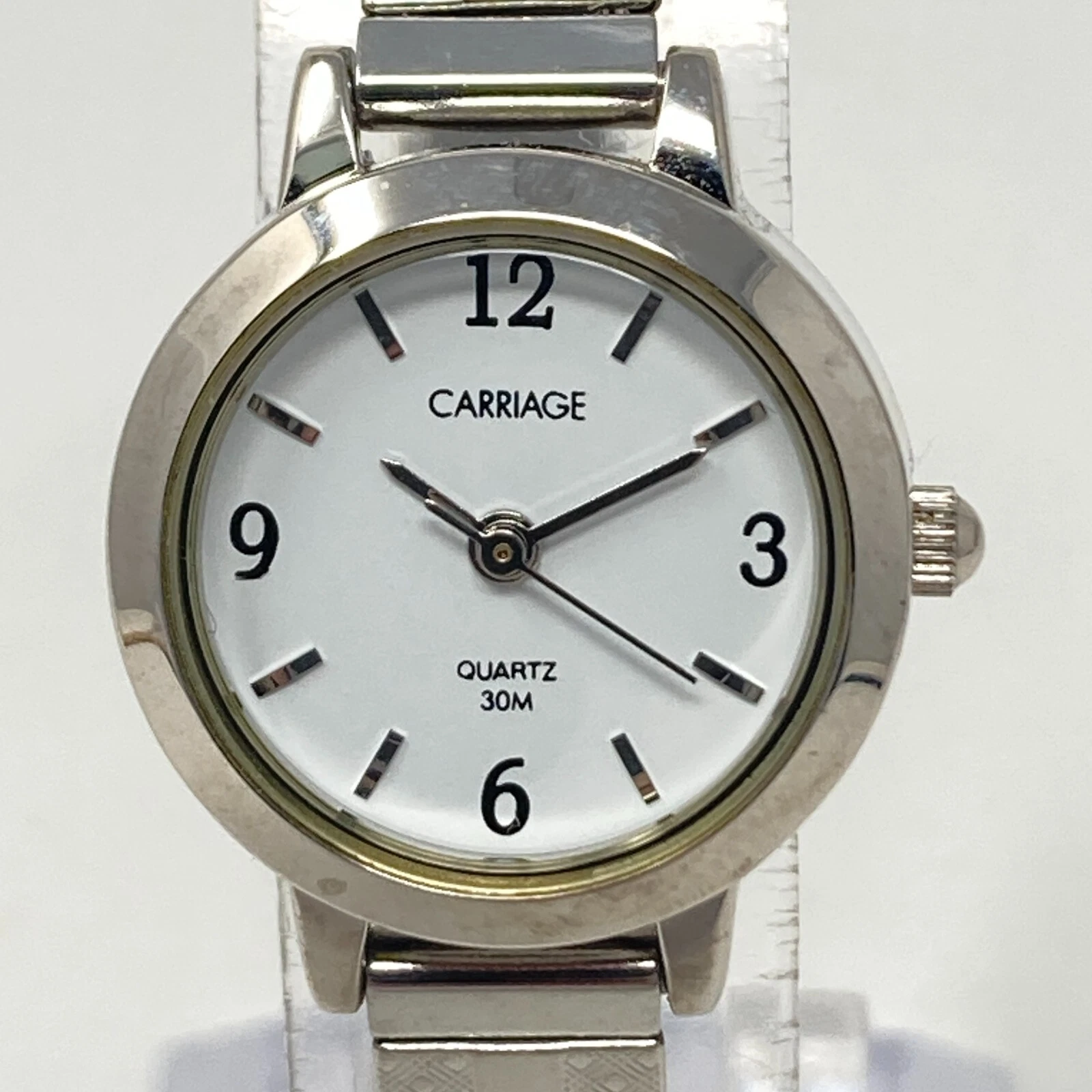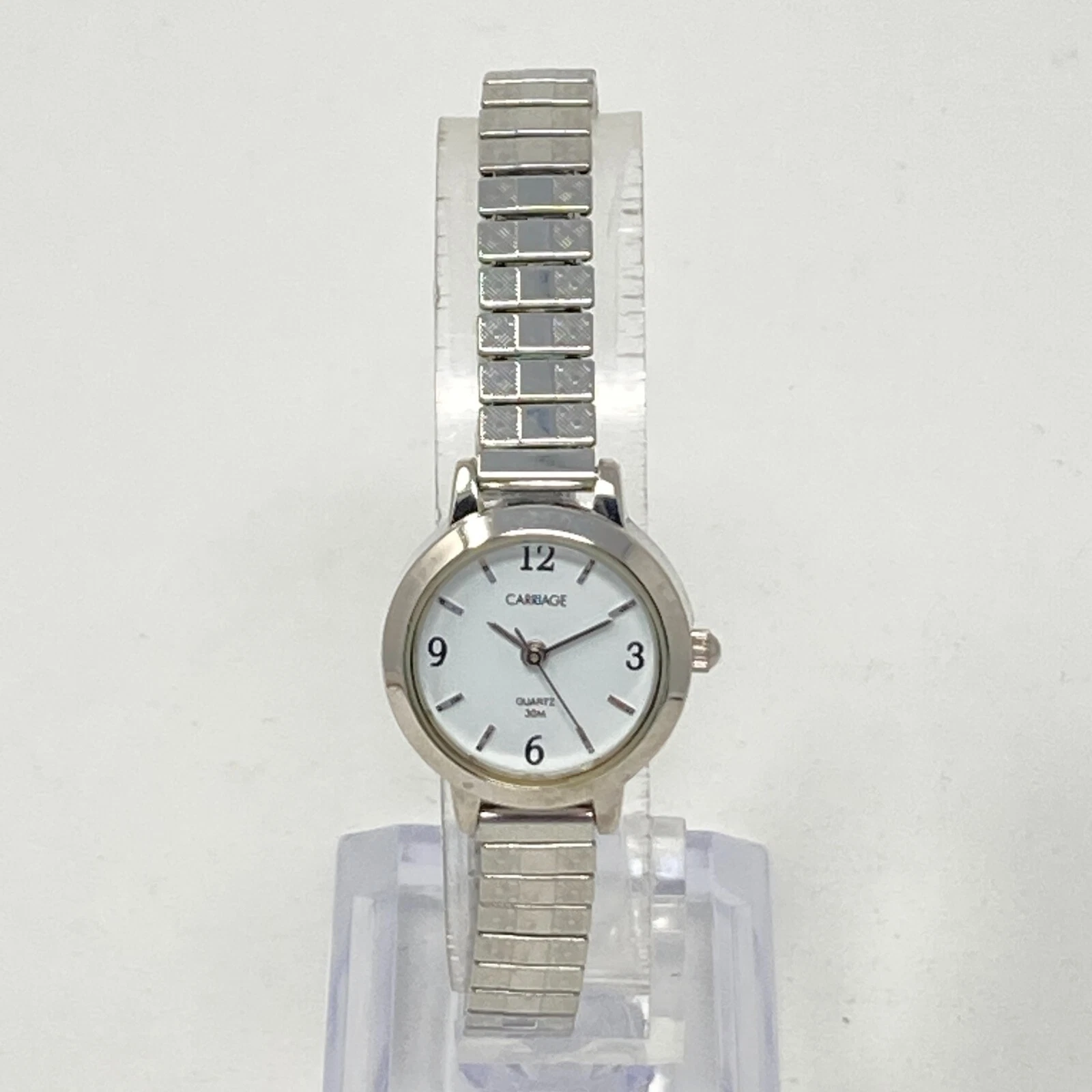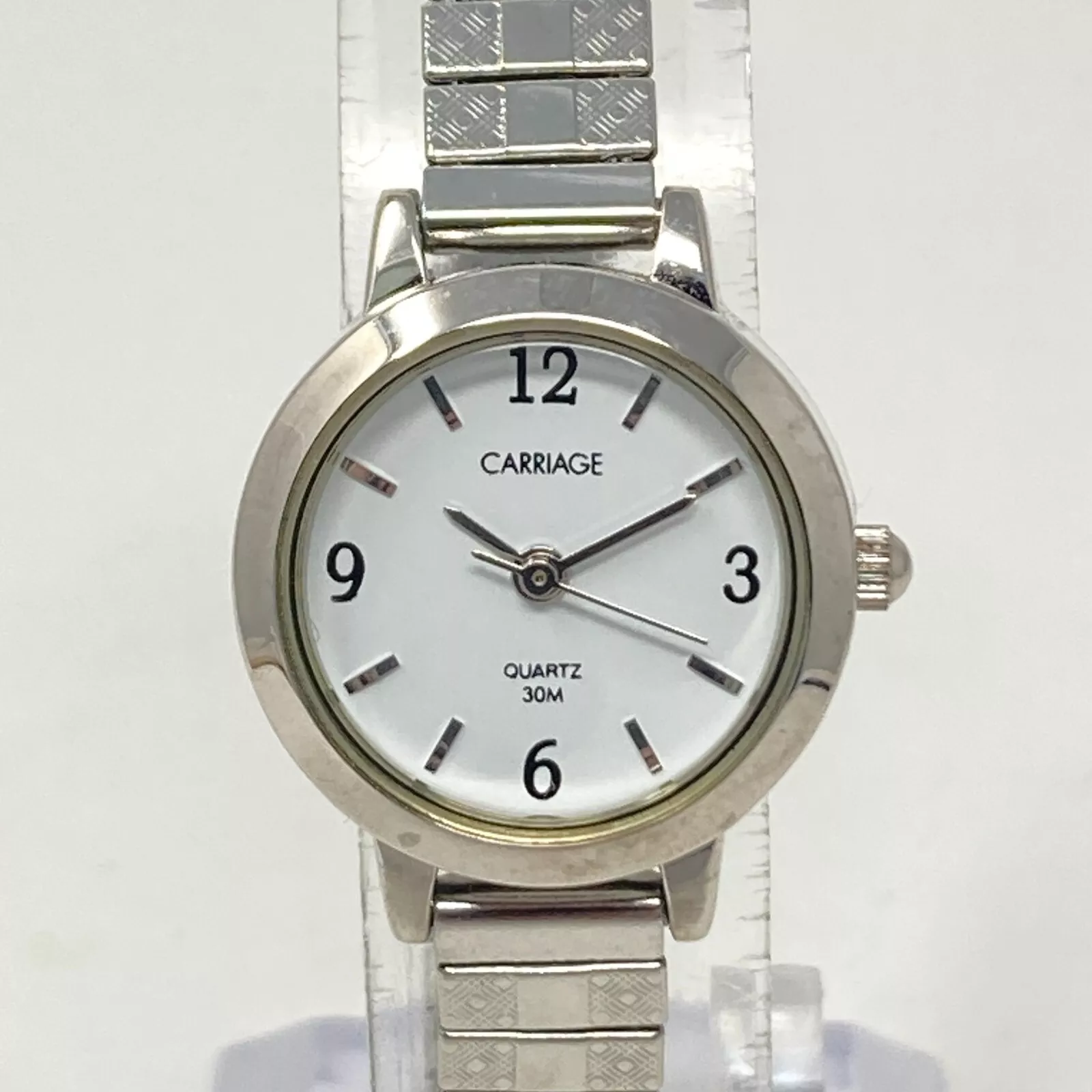 Carriage by Timex Watch Women 21mm Silver Tone Stretch Band 30M New Battery 6"