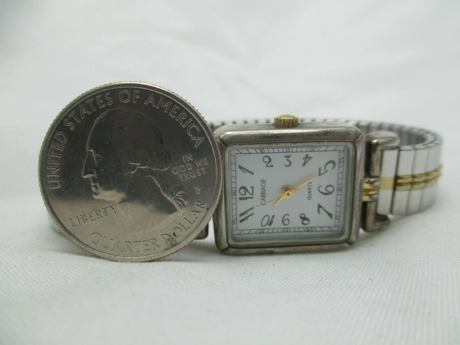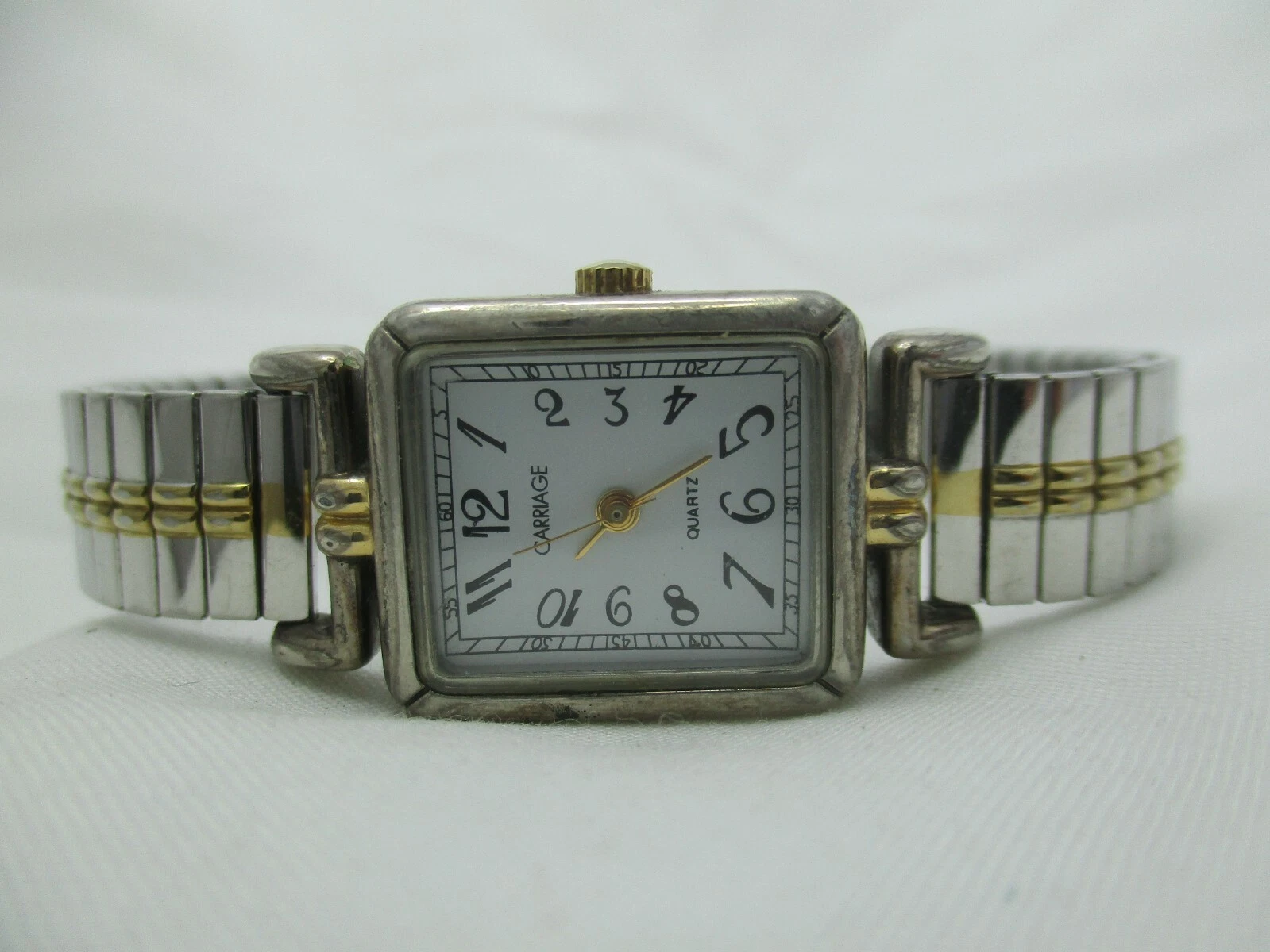 Carriage by Timex Wristwatch Silver & Gold Tone Expansion Band Rectangular Face