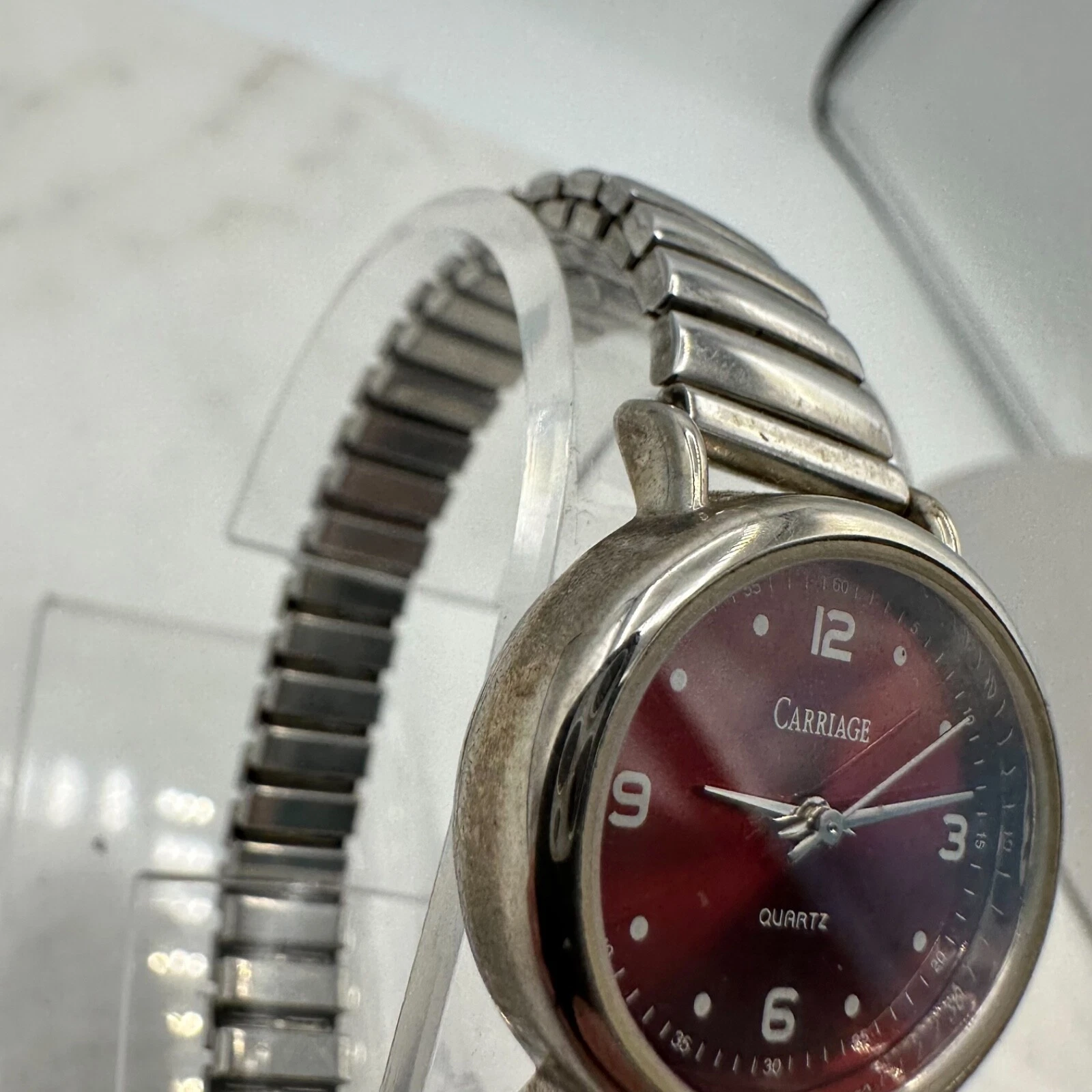 Carriage by Timex Womens Red Oval Dial Watch, Silver Tone, New Battery, Sz 6.5"