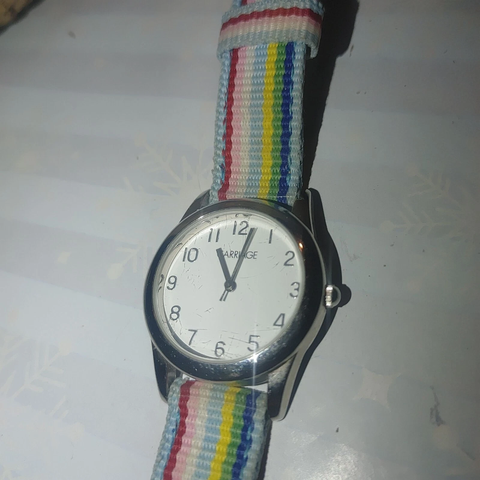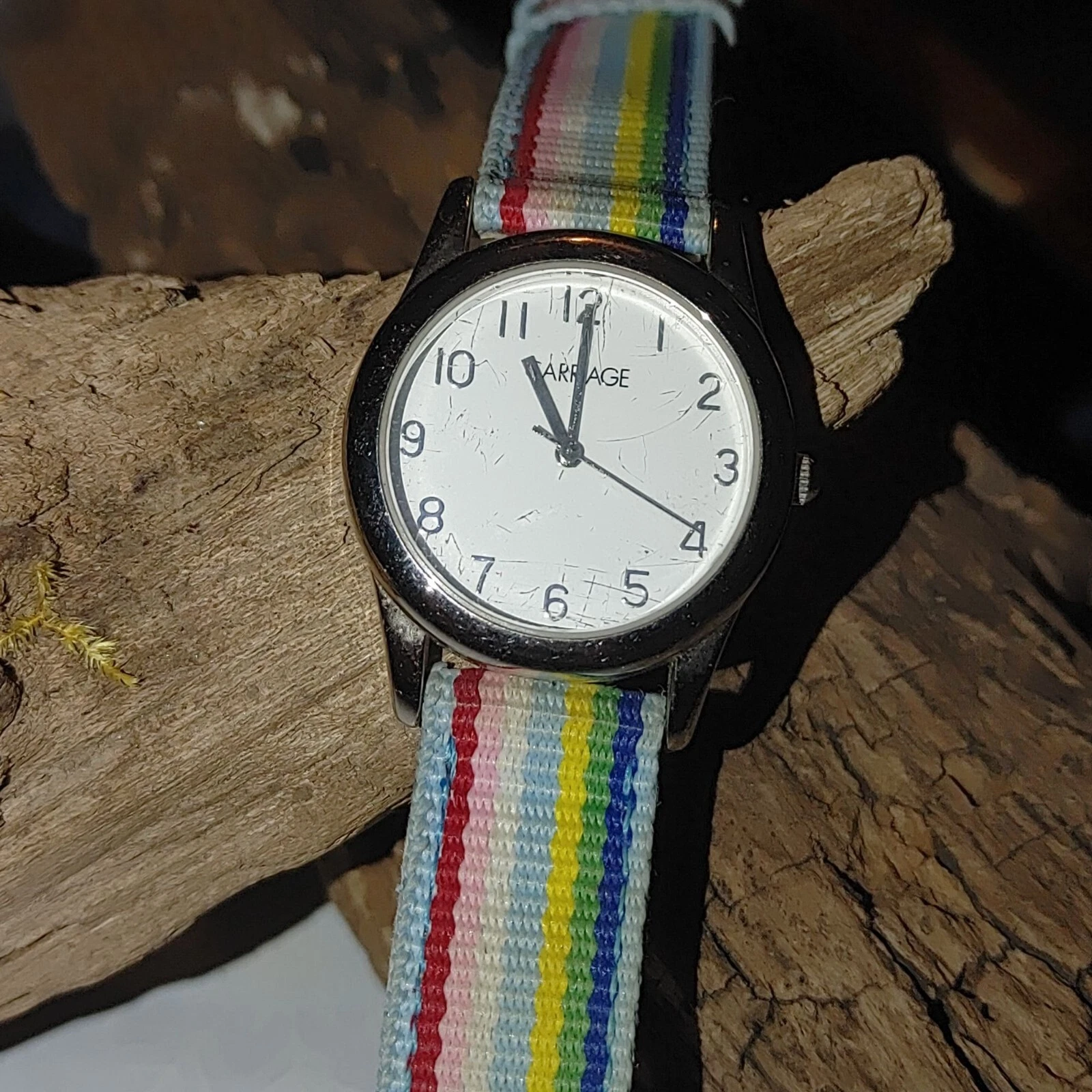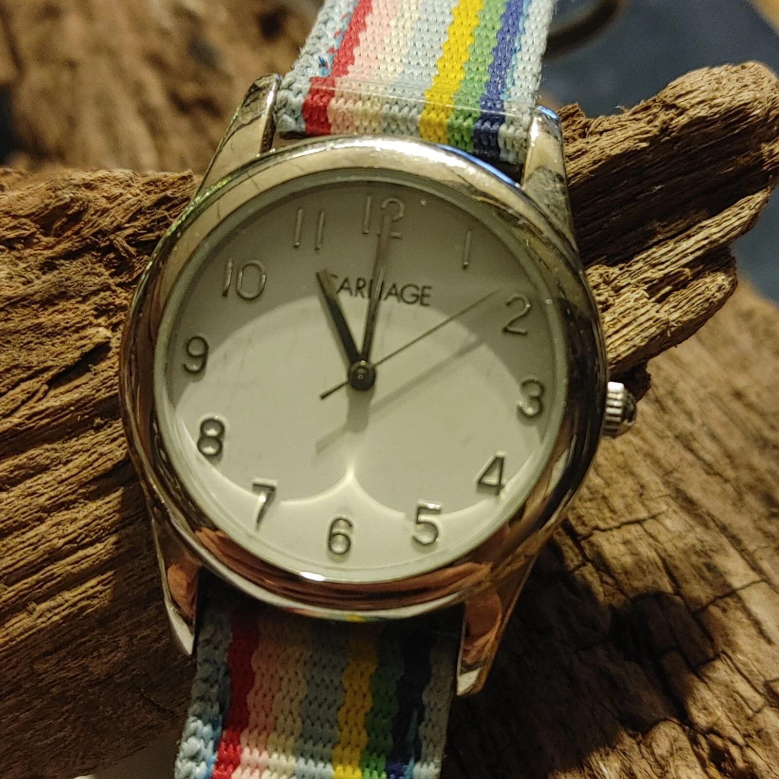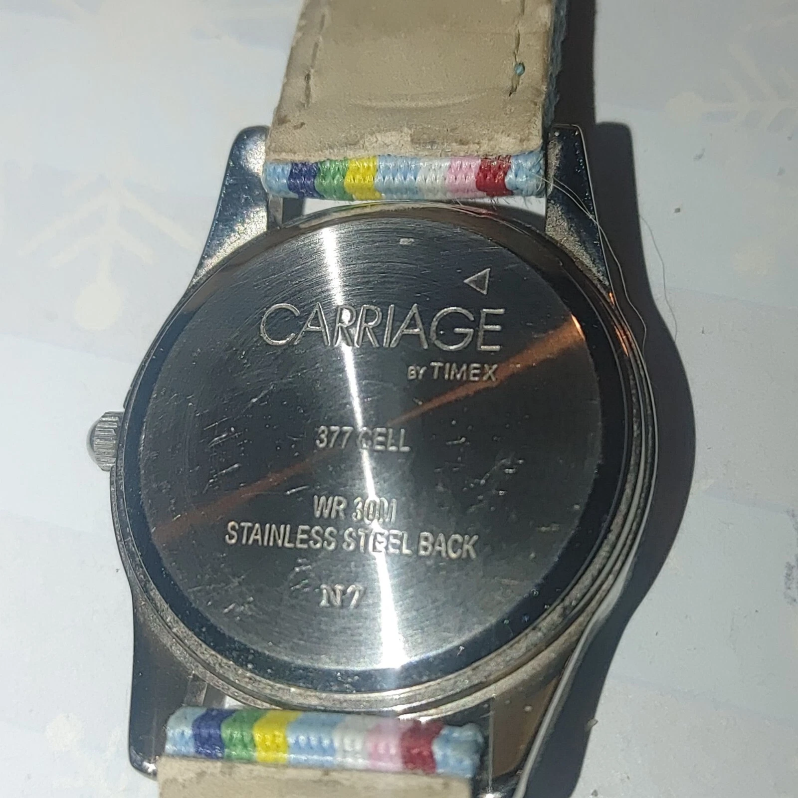 Wristwatch Carriage Timex Rainbow Vintage Nylon Strap Stainless Steel Back