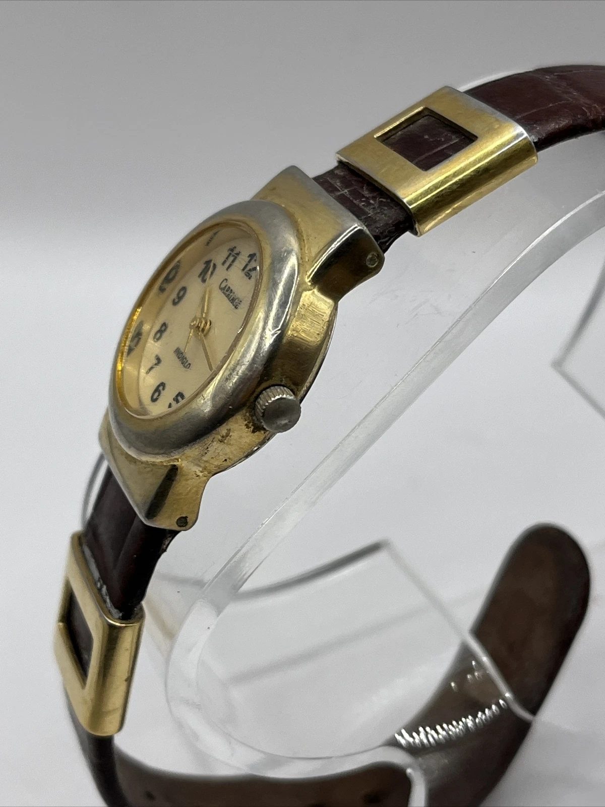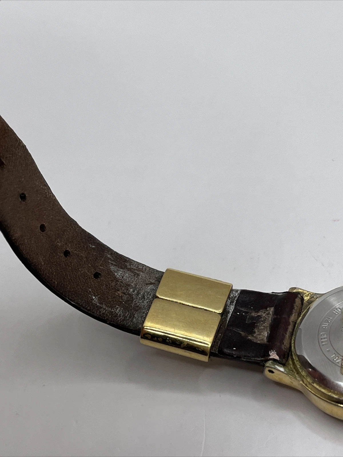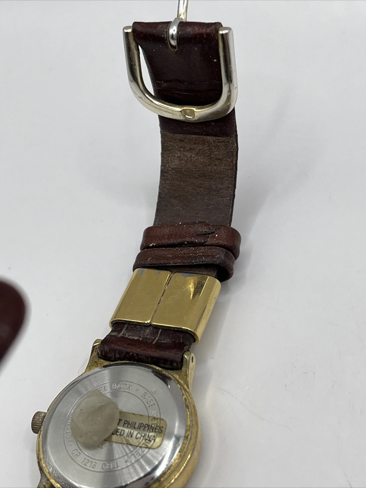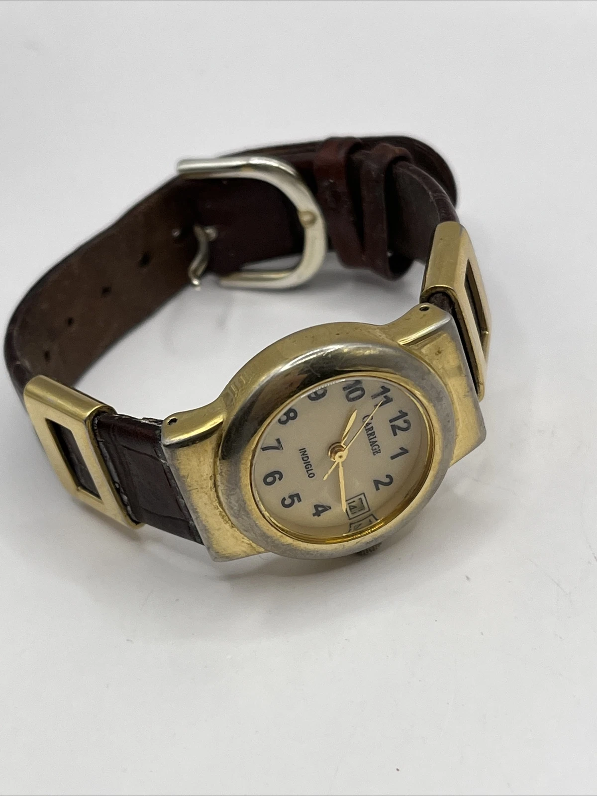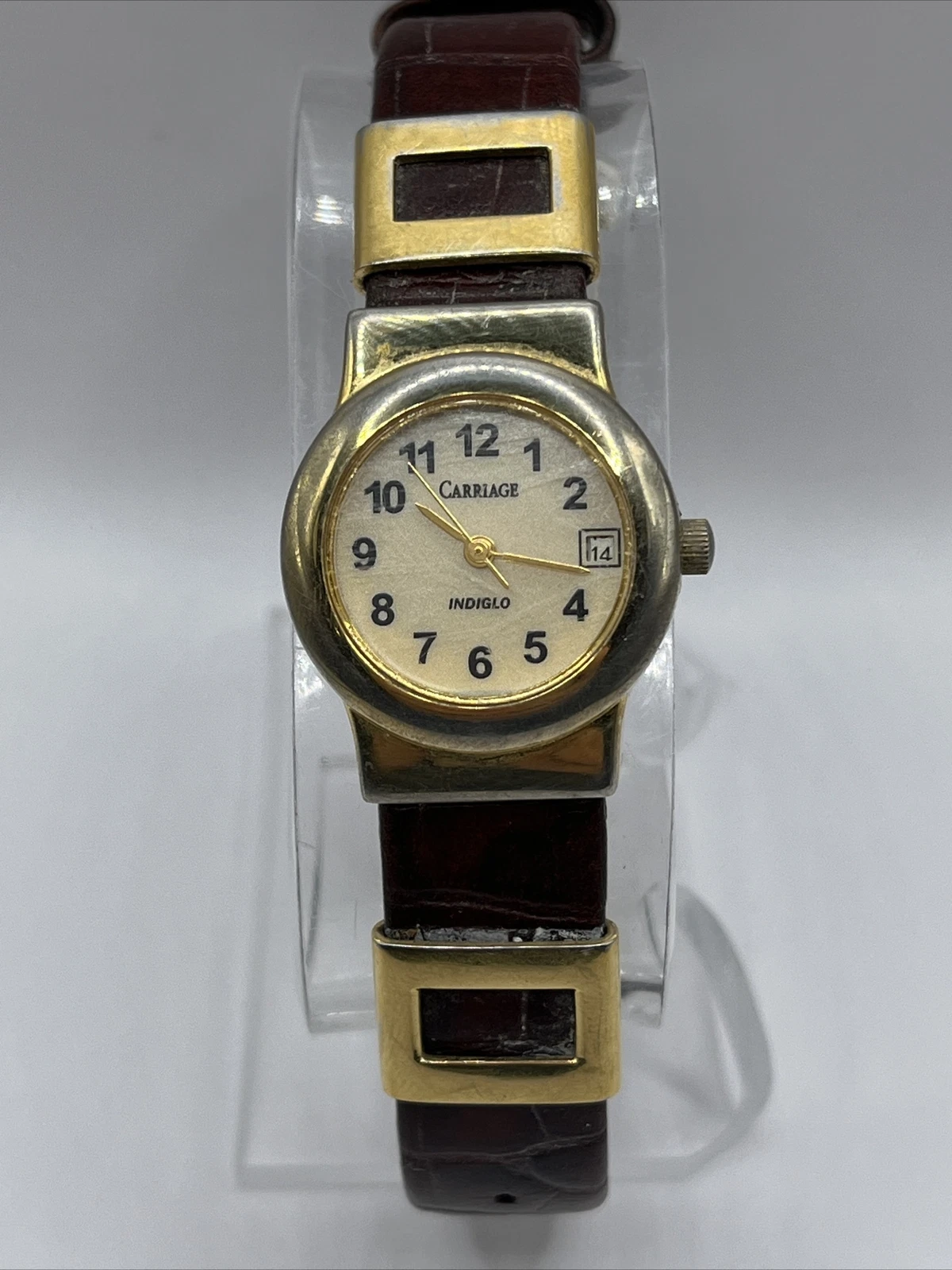 Vintage Carriage Indiglo Gold Tone Case Brown Leather Band- New Battery