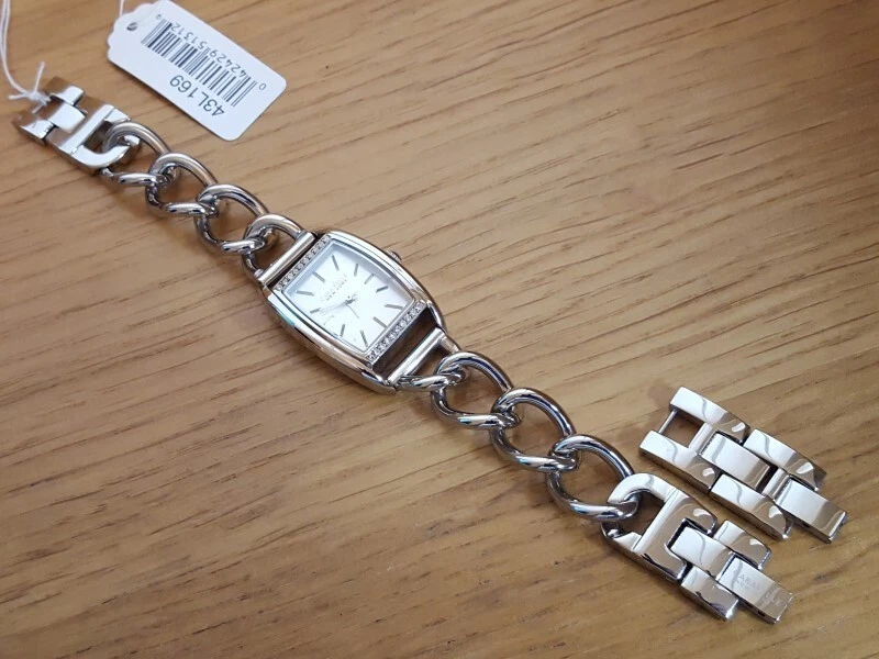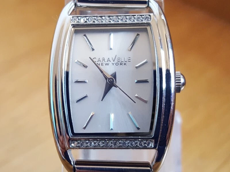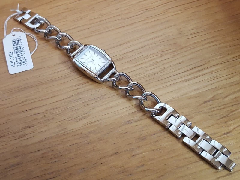 Ladies Silver Chain Bracelet Bulova Caravelle 43L169 Embellished Dress Watch