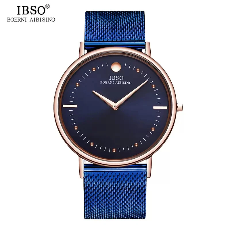 IBSO 7.5MM Ultra-thin Mens Watches Blue Steel Mesh Strap Quartz Watch