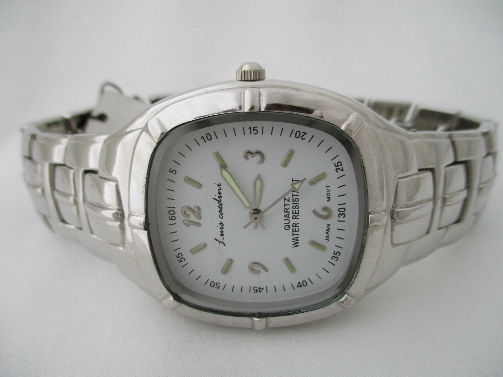 Luis Cardini Men's Silver Toned Link Band Analog Watch