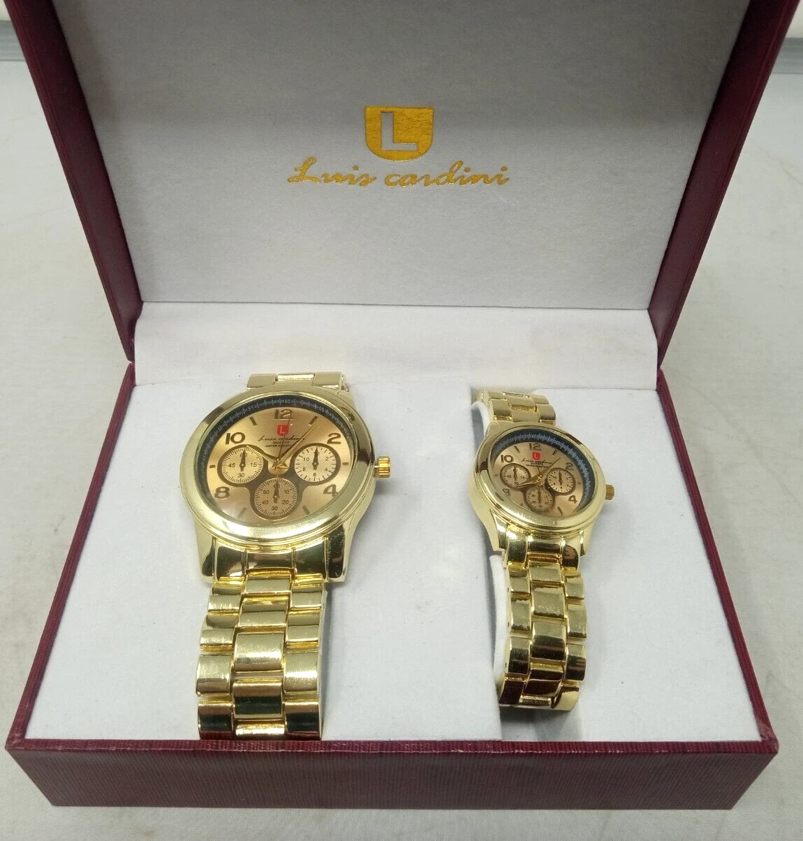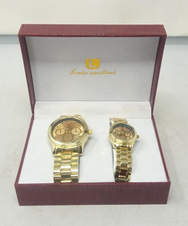 LUIS CARDINI HIS & HER SET OF WATCHES – WATER RESISTANT, GOLD TONE FINISH